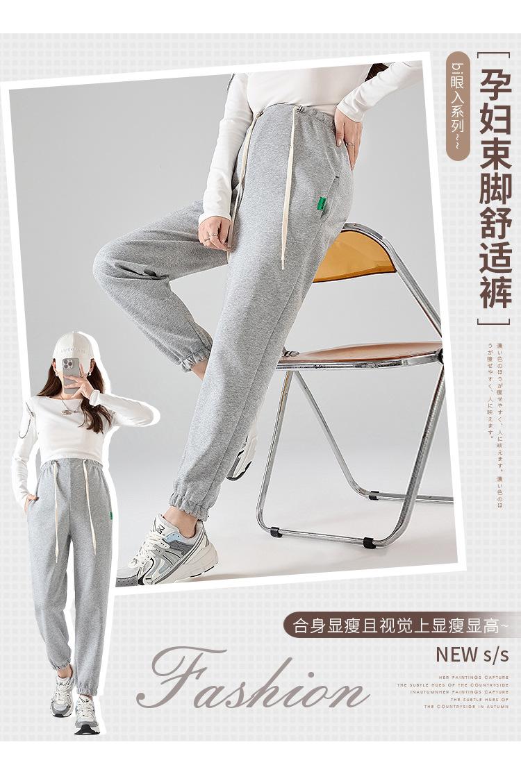 Pantalones de primavera nuevos para mujeres embarazadas sin soporte para el vientre, con cordón ajustable, holgados y con tobillo atado, ropa exterior casual para mujeres embarazadas, pantalones deportivos ponibles posparto