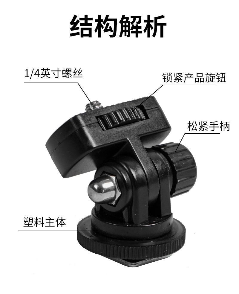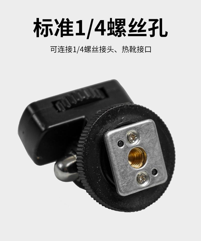 PTZPuerto de tornillo estándar de 1/4Se puede conectar a luces de relleno, disparadores de flash y otros equipos fotográficos. La zapata caliente se puede conectar a la cámara, lo cual es adecuado para cámaras réflex digitales. La cámara utiliza un asiento de conversión de zapata a tornillo de 1/4 para resolver el problema de instalación de luces de video, pequeñas cámaras digitales DC, pantallas LCD, etc. en cámaras pequeñas.