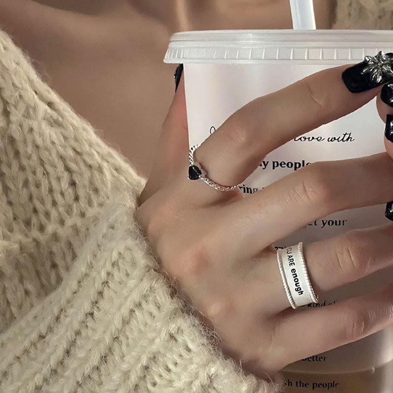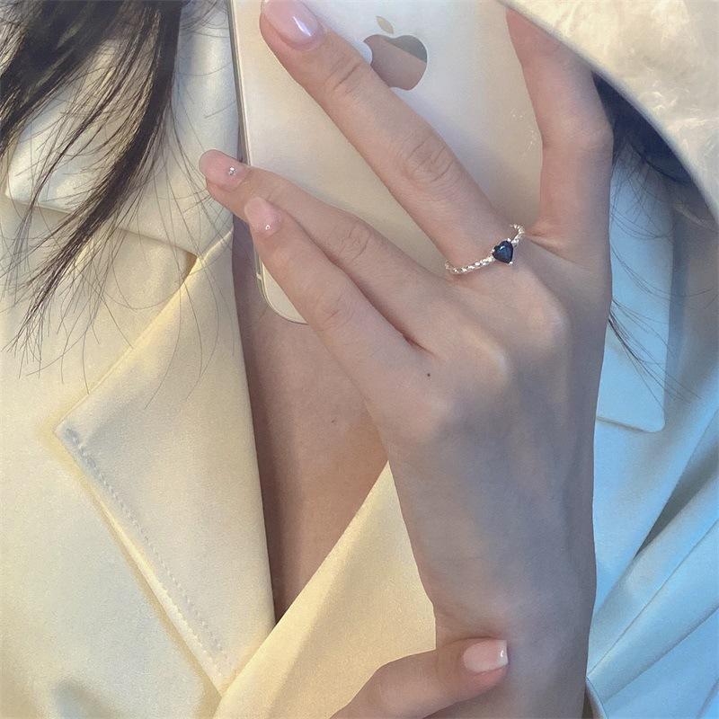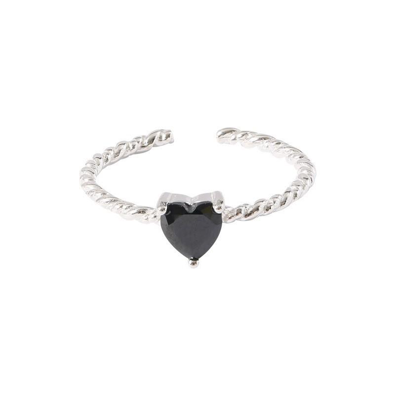 Anillo Corazón Torcido de Zircón Negro para Mujer 2025 Nuevo Diseño Nicho Trendy Lujo Accesible Moda Estilo Frío Elegante
