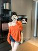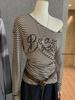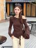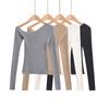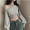 Sudadera de nicho personalizada de estilo coreano con cuello inclinado irregular, hombros descubiertos, corte ajustado, versátil, de manga corta larga para mujer