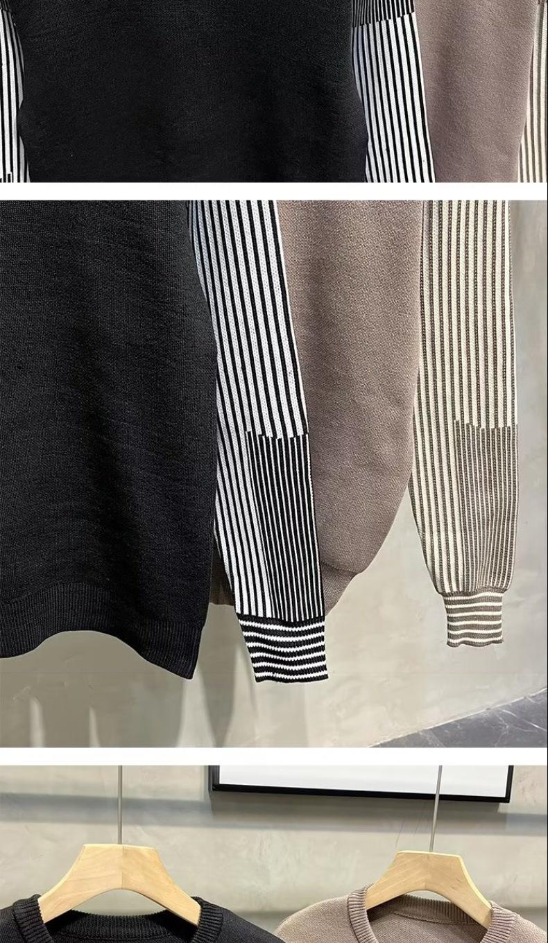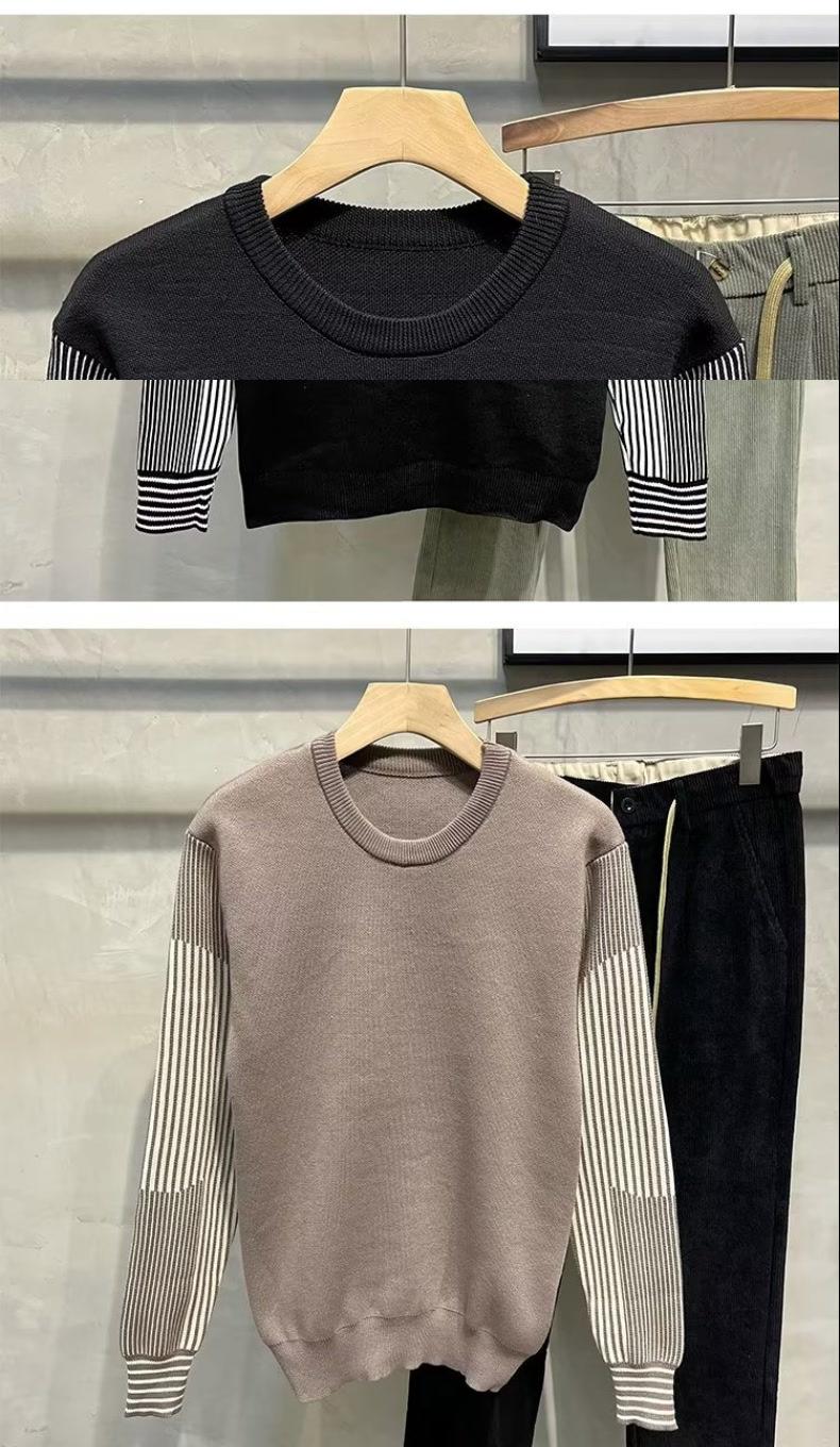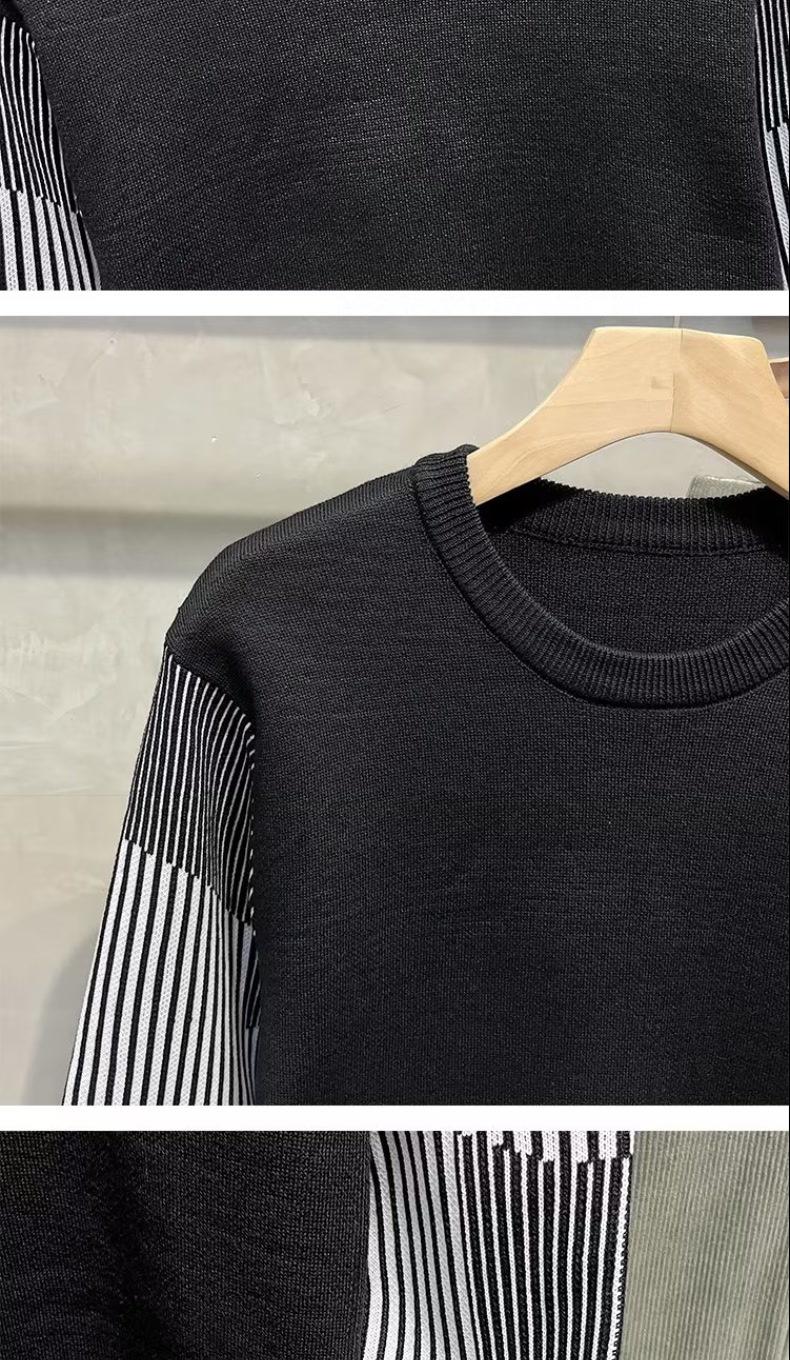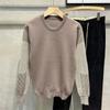 Cuello Redondo Color Contrastante Tejido Simple Otoño e Invierno Estilo Coreano Manga Larga Tejido Juvenil Casual Versátil Jersey Top Moderno
