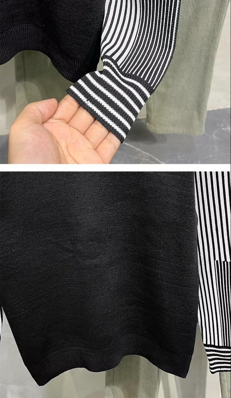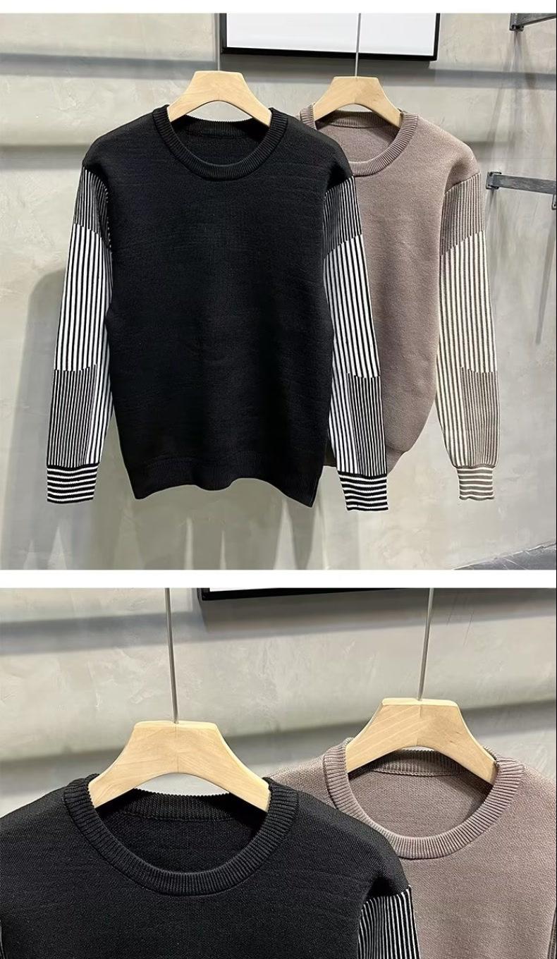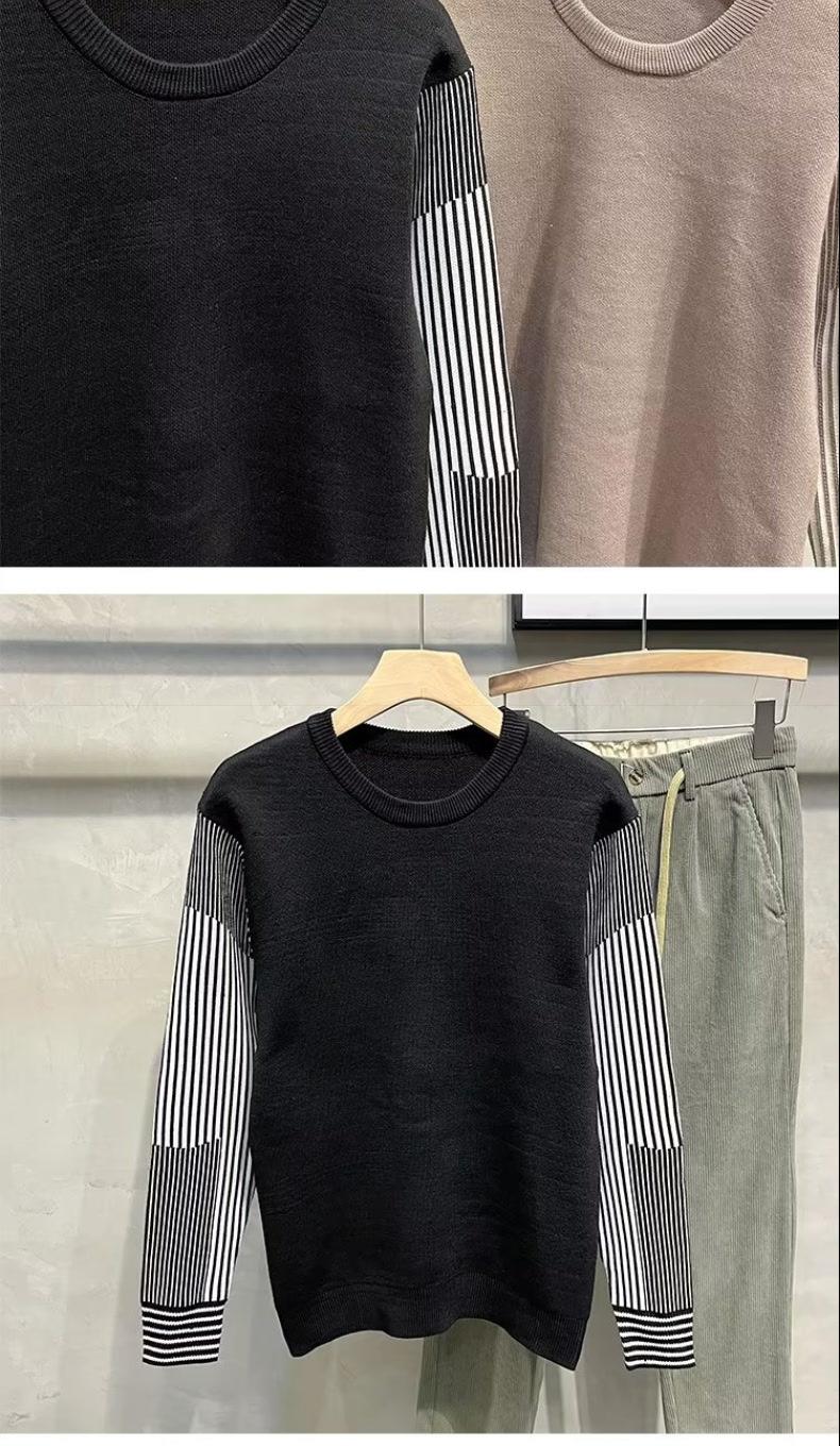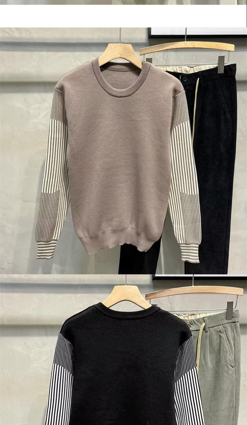 Cuello Redondo Color Contrastante Tejido Simple Otoño e Invierno Estilo Coreano Manga Larga Tejido Juvenil Casual Versátil Jersey Top Moderno