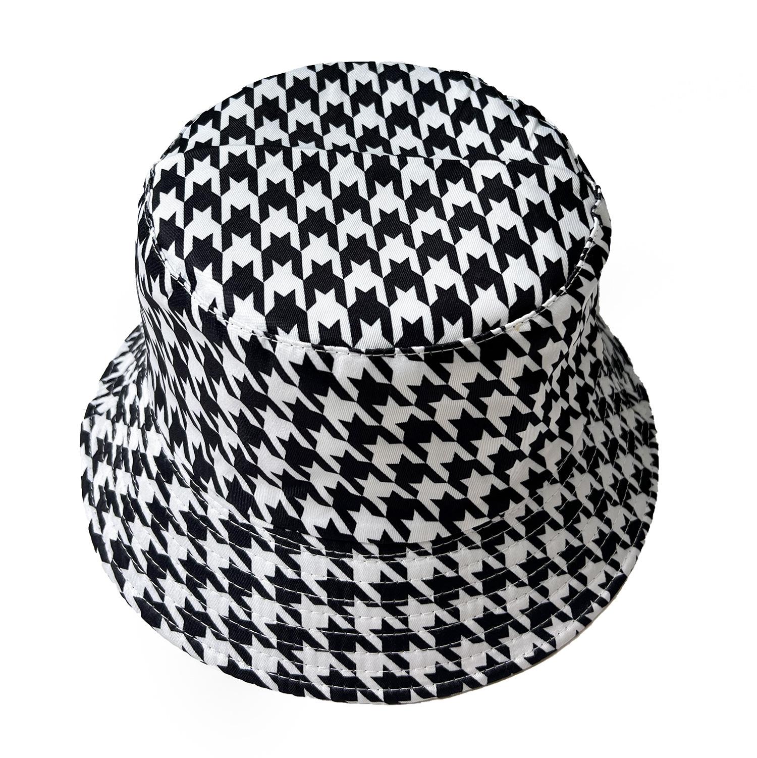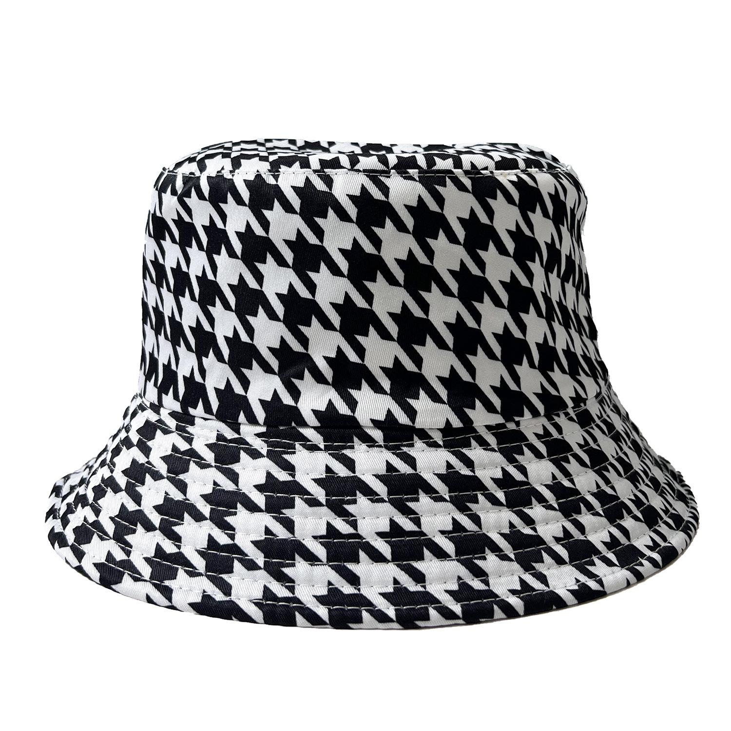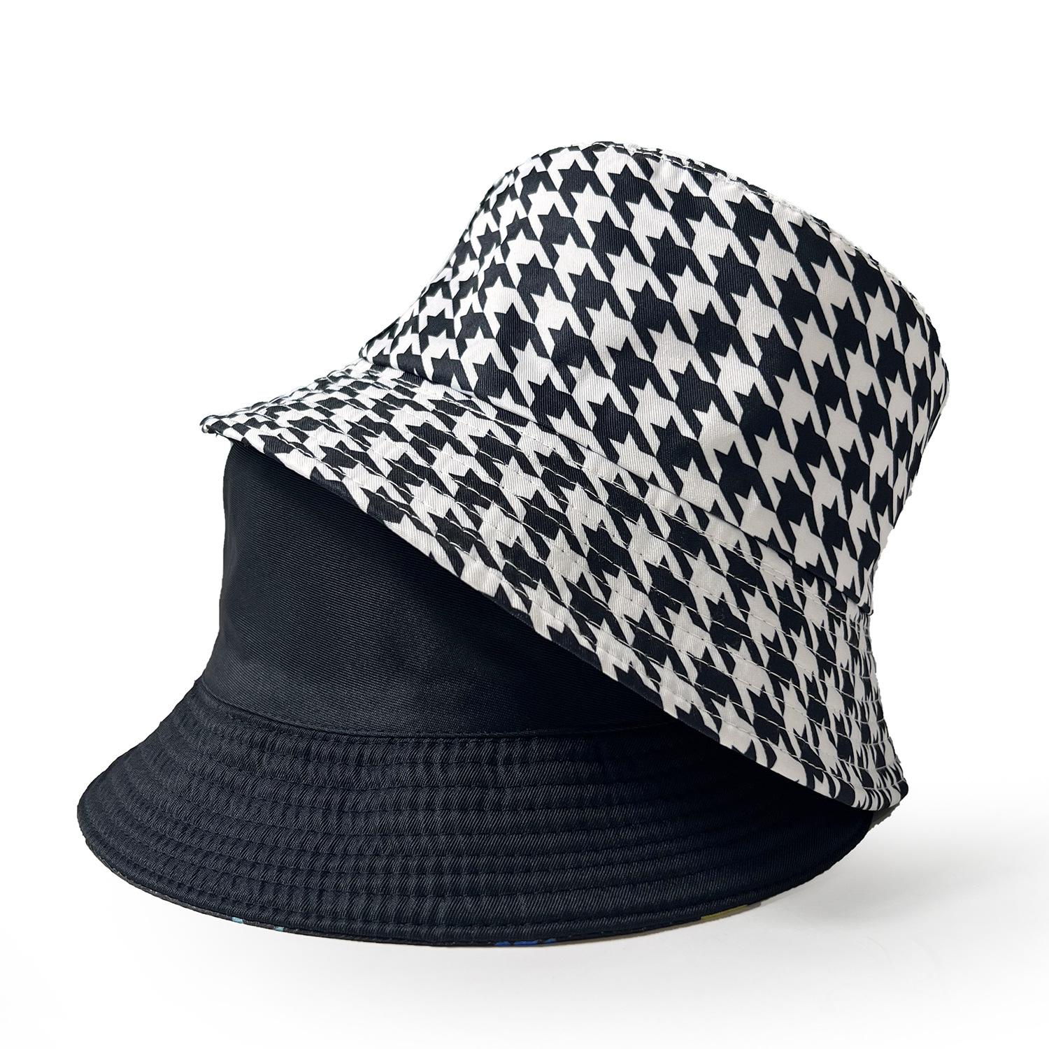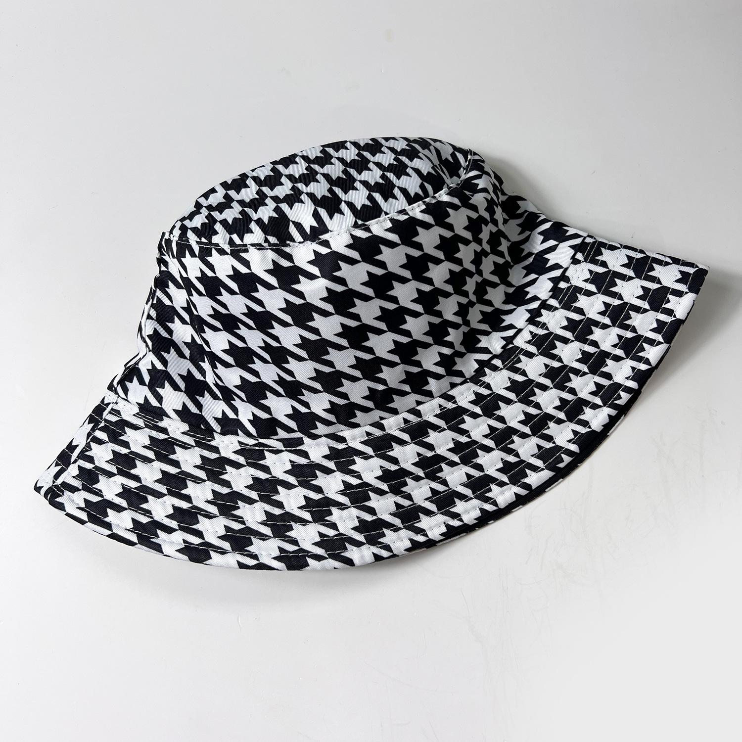 Sombrero de Pescador a Cuadros Blanco y Negro Estilo Coreano Transfronterizo Casual Versátil para Playa al Aire Libre Uso de Doble Cara Protección Solar Sombrero de Cubo
