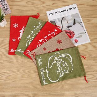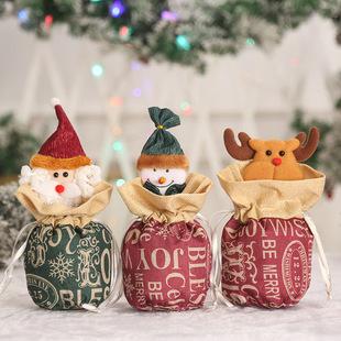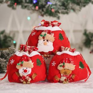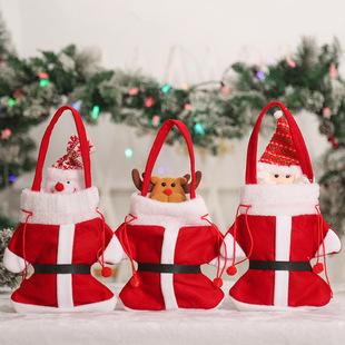Bolsa de manzana de regalo de Navidad color caricatura embalaje bolsa de dulces tela cepillada decoración navideña bolsa tote al por mayor