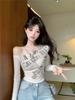 Camiseta de Manga Larga con Estampado de Letras American Spice Girls para Mujer Otoño 2024 Nueva Base Interior Cuello Inclinado Hombro Top Pequeño