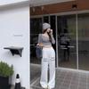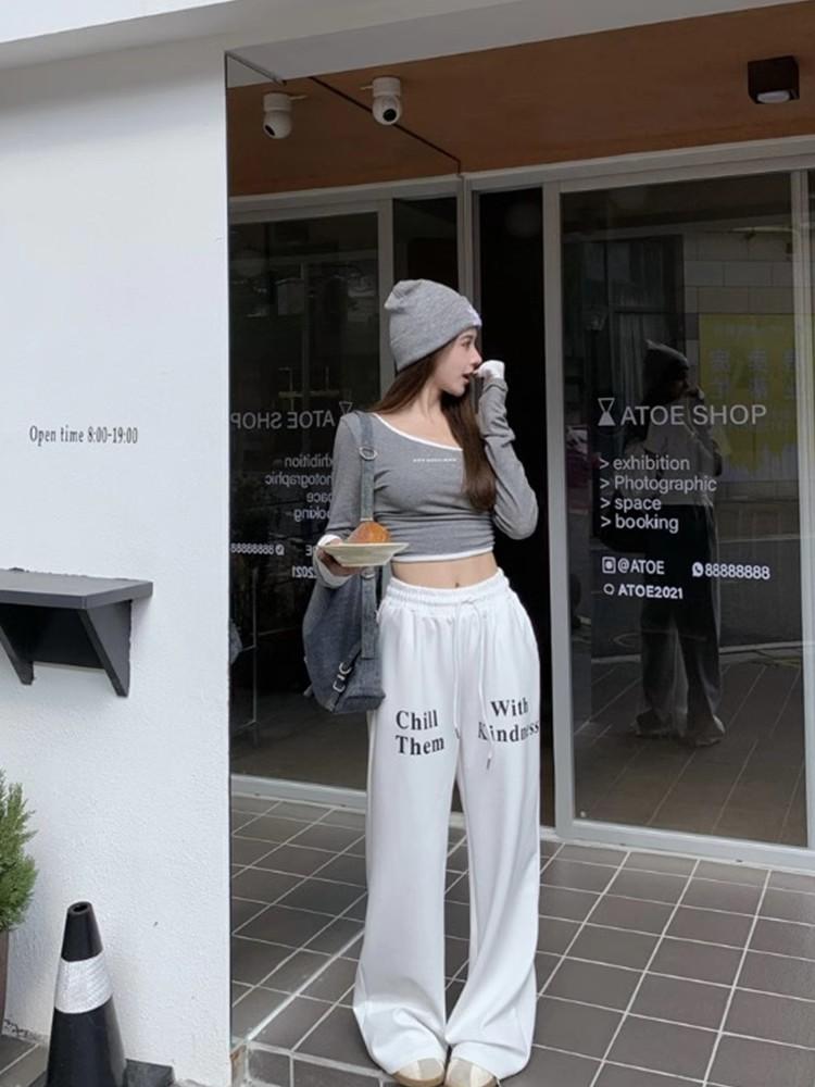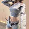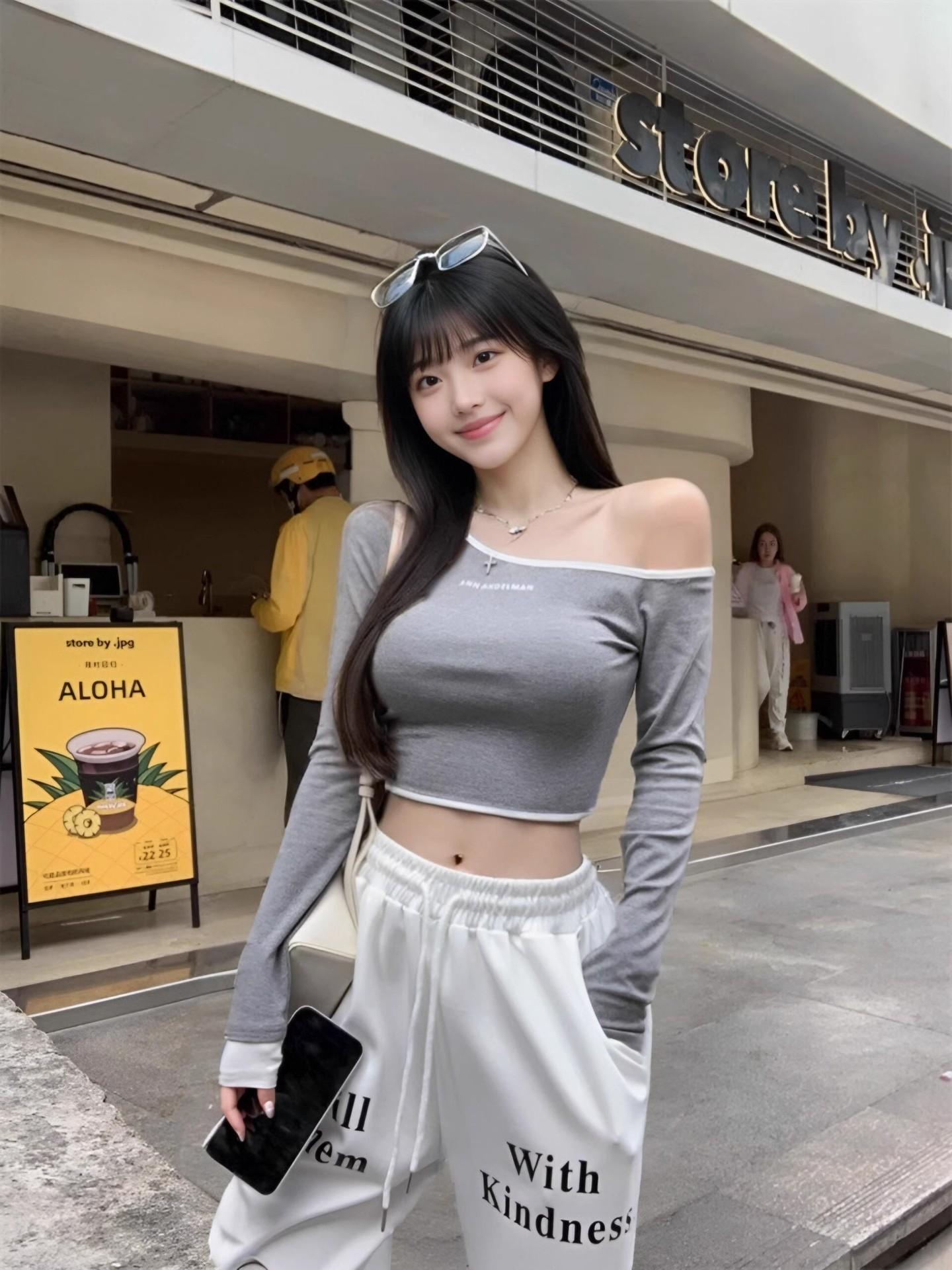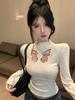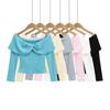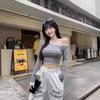 Estilo Deseo Puro Sexy Hombro con Cuello Inclinado Camiseta de Manga Larga para Mujer Nuevo Otoño Temprano 2024 Top Corto Ajustado Estilo Spice Girl de Cintura