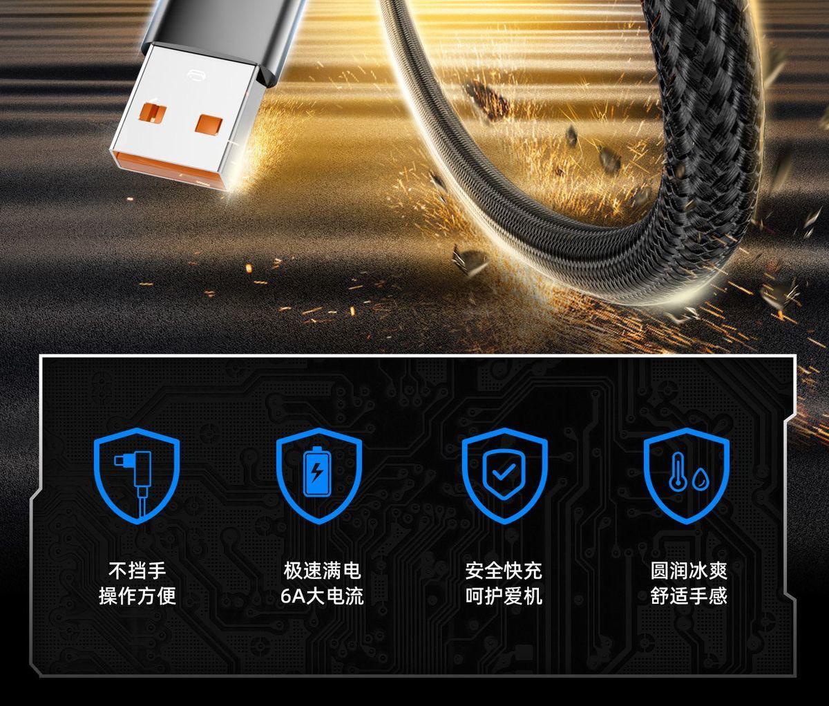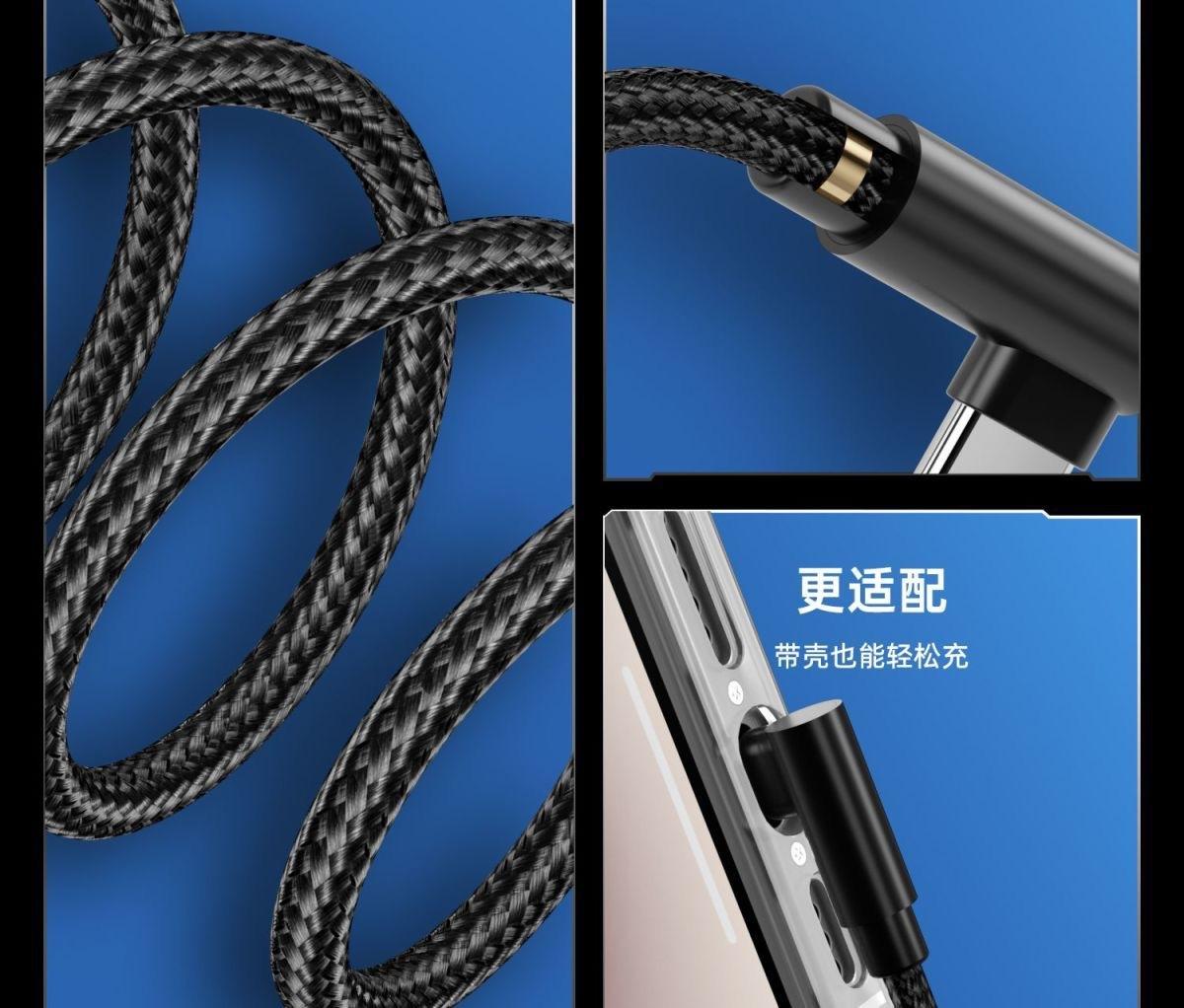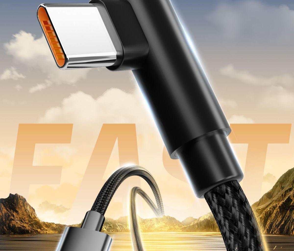Cable de datos Tipo-c de Codo de Carga Súper Rápida de 120 W Transfronterizo Trenzado Adecuado para Cable de Carga de Teléfono Móvil Huawei Honor 6A