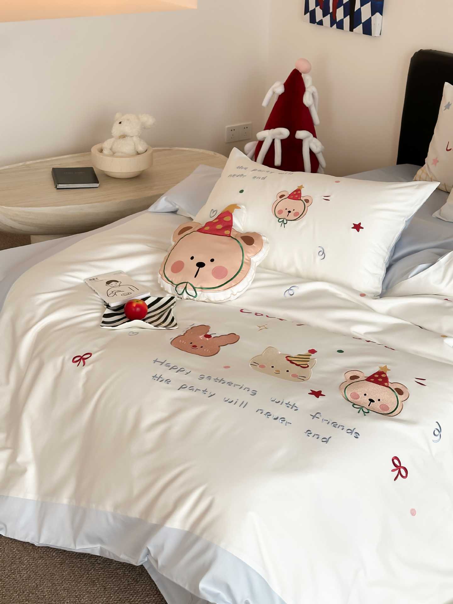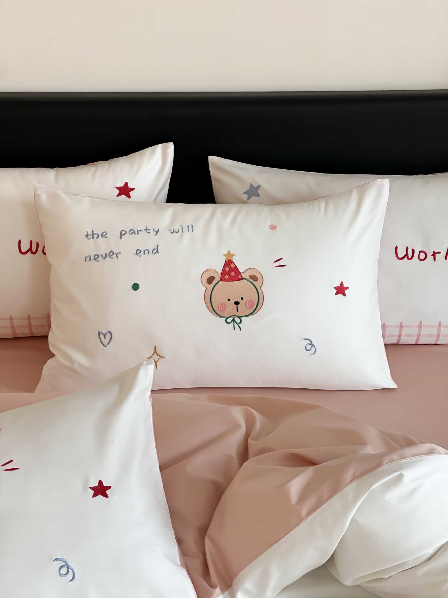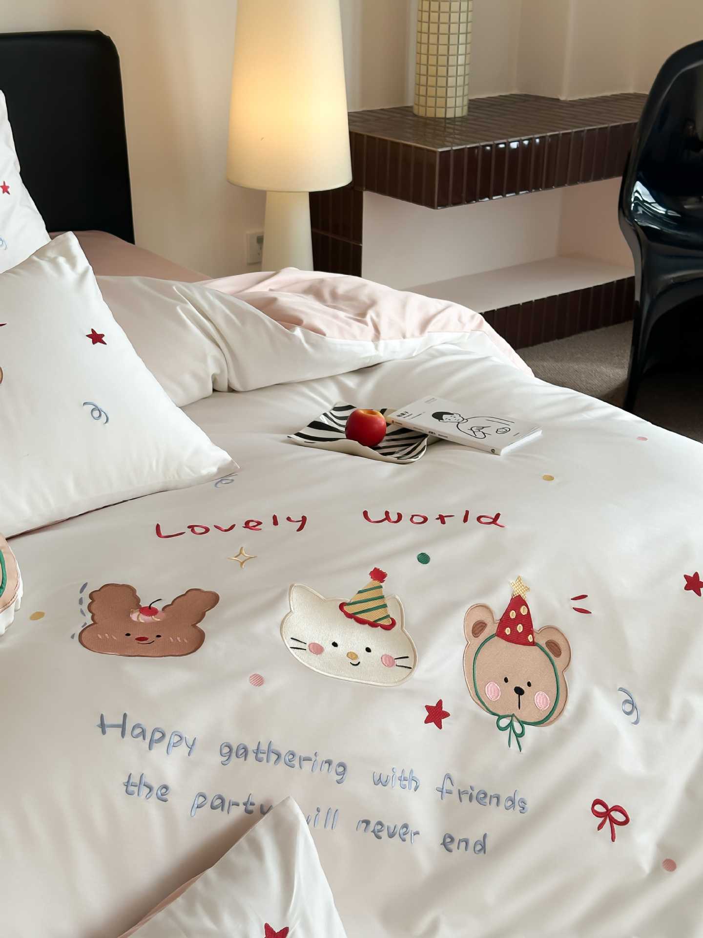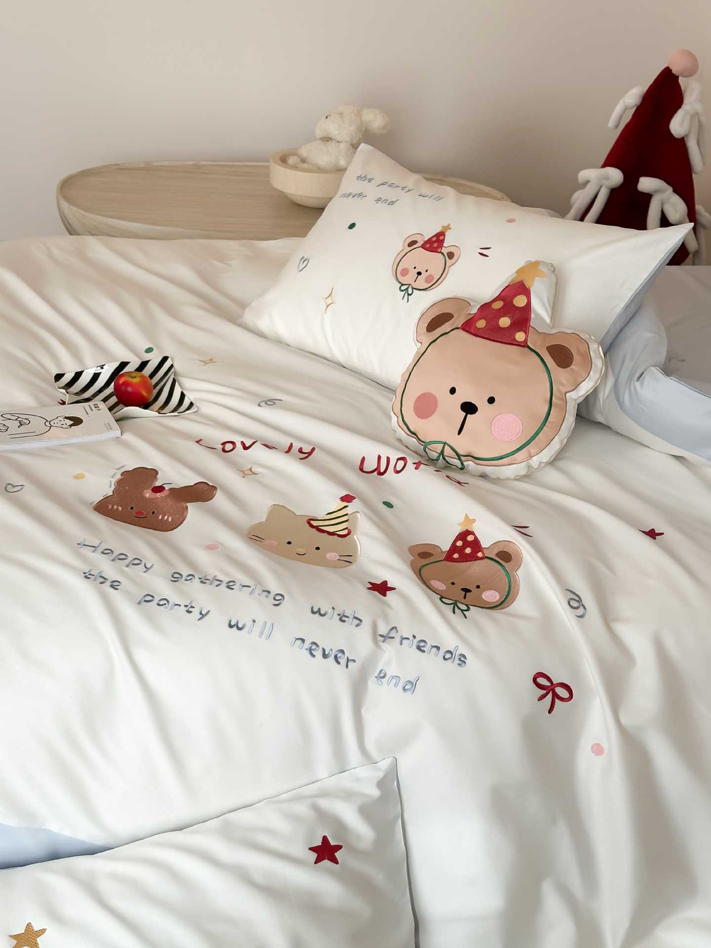 En este pequeño mundo, un lindo osito con un sombrero de fiesta juguetón 🎉 baila con estrellas y corazones.
