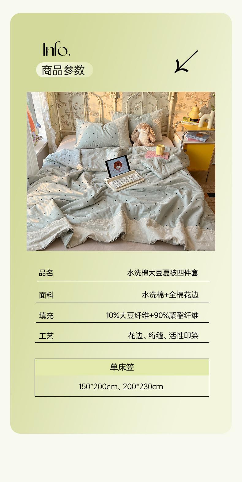 Categoría a Grado Materno e Infantil Edredón de Verano de Algodón Lavado Pequeño y Fresco Juego de Cuatro Piezas Edredón de Verano de Fibra de Soya Edredón para Aire Acondicionado Venta al por Mayor