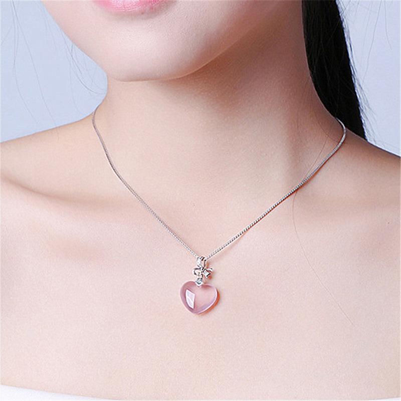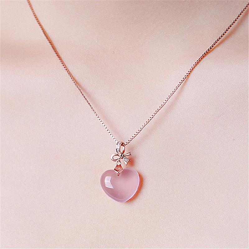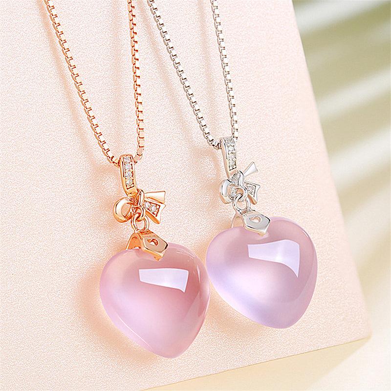 Colgante de Corazón Rosa Dulce Jin Jiahua El Verdadero Significado del Amor Silencioso Colgante de Gema de Jalea de Piedra Hibisco de Un Corazón