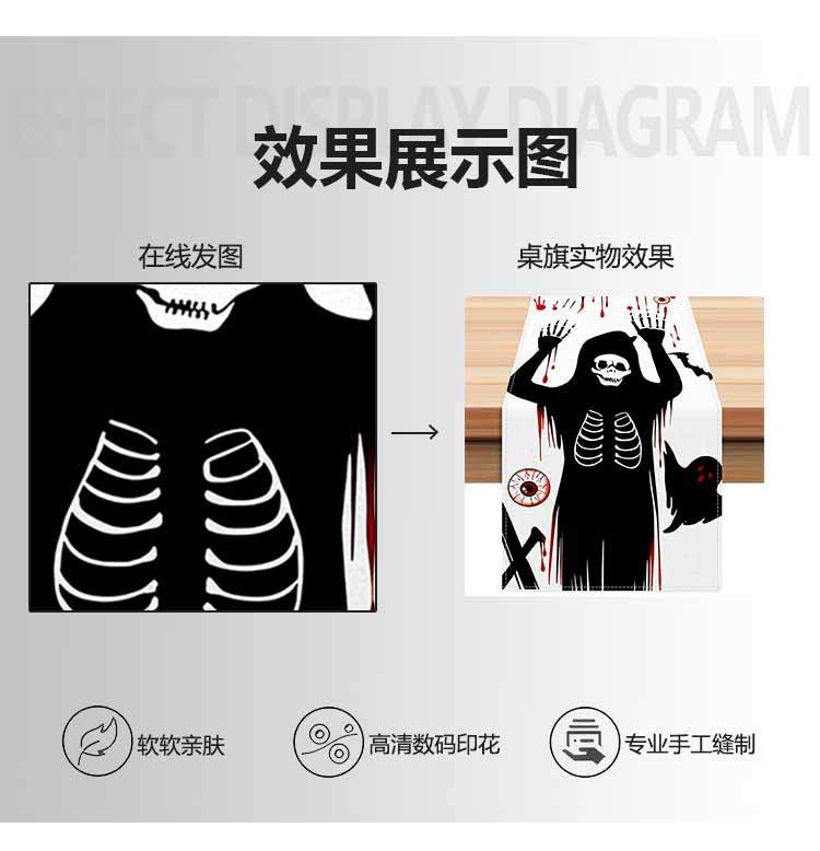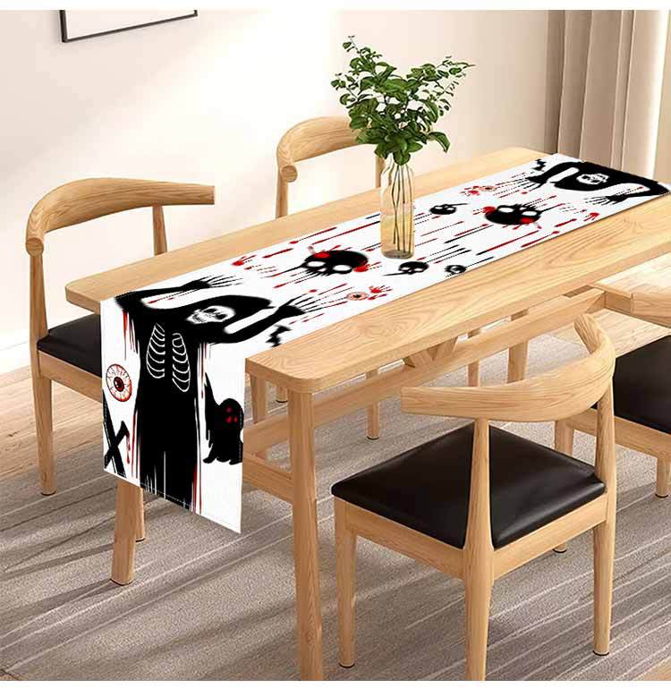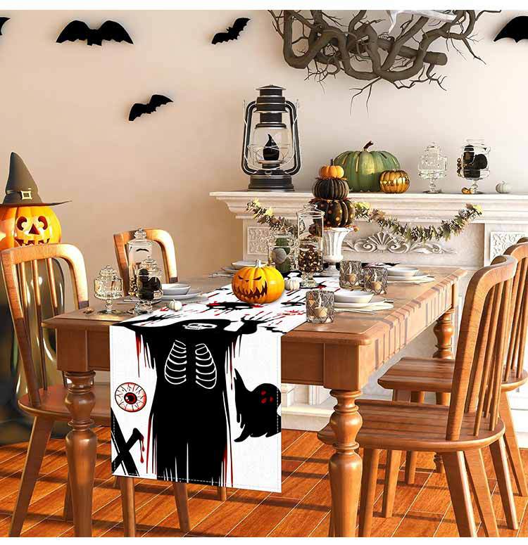 Halloween Fantasma Negro Lino Bandera de Mesa Transfronteriza Nuevo Mantel Estampado Hogar Sala de Estar Cocina Comedor Mesa de Café Paño