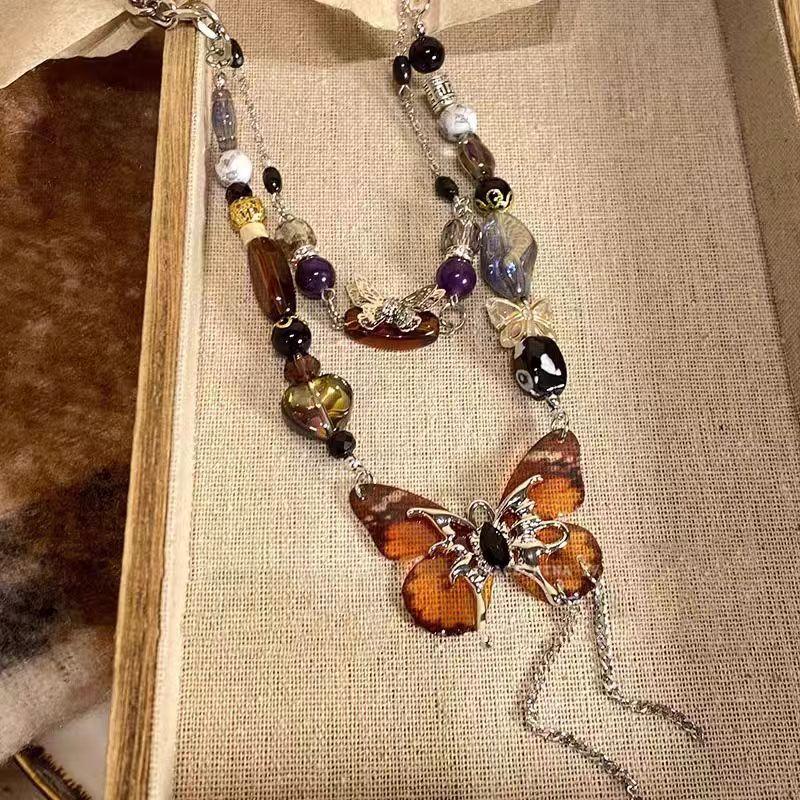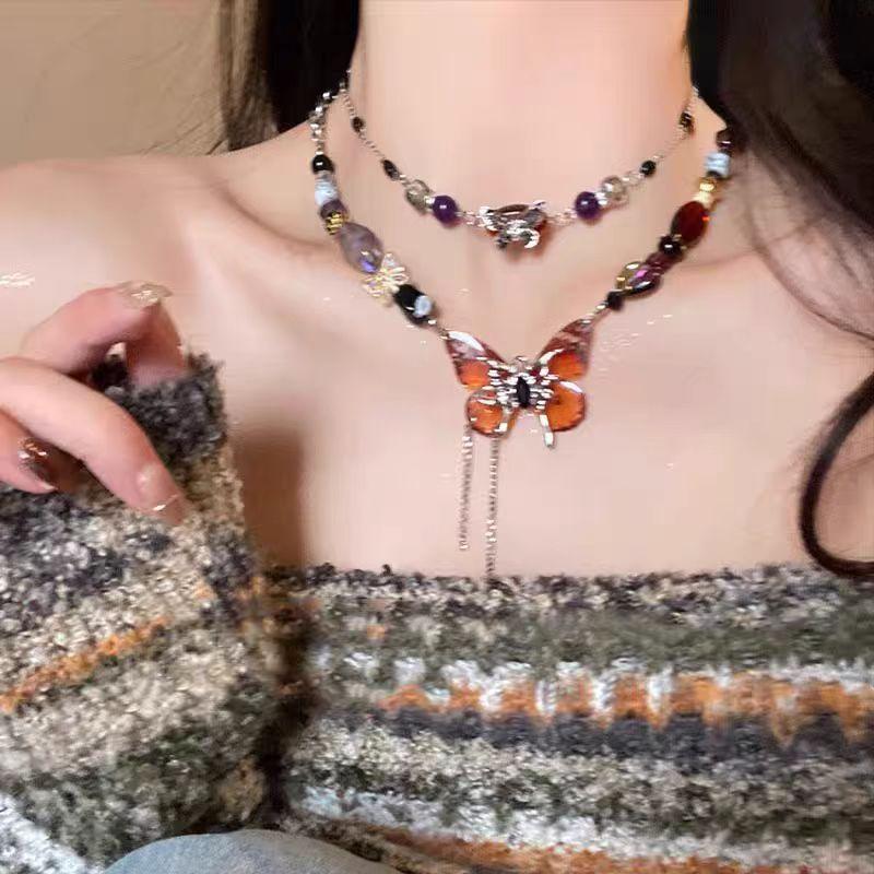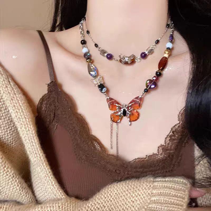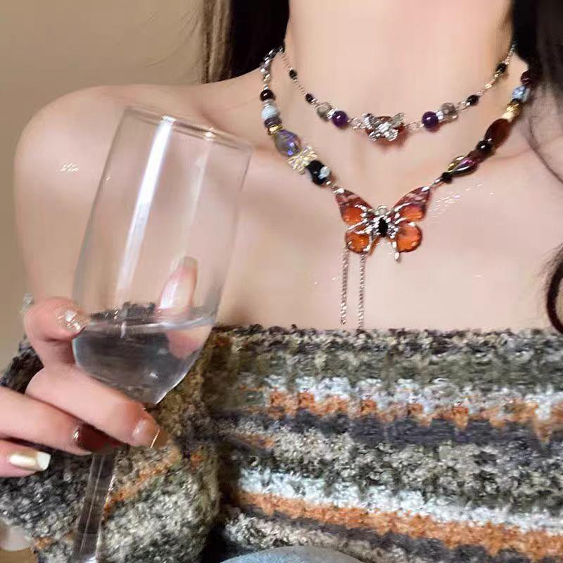 Collar de Doble Capa de Mariposa Maillard para Mujer Nicho de Lujo Ligero Cadena para Suéter de Alta Gama Moda Personalizada Más Fácil de Combinar Cadena para Clavícula
