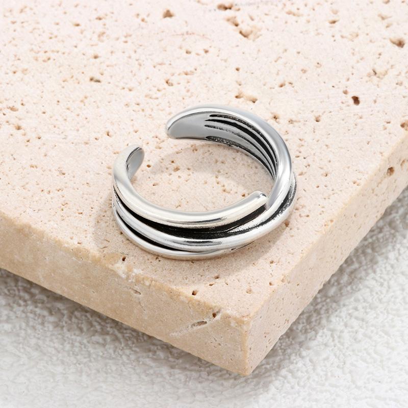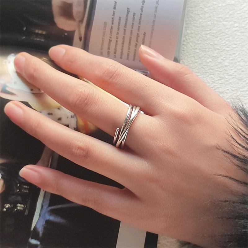 Anillo de línea irregular moderno cool ins personalidad moda viento frío cruz multicapa entretejido anillo abierto al por mayor