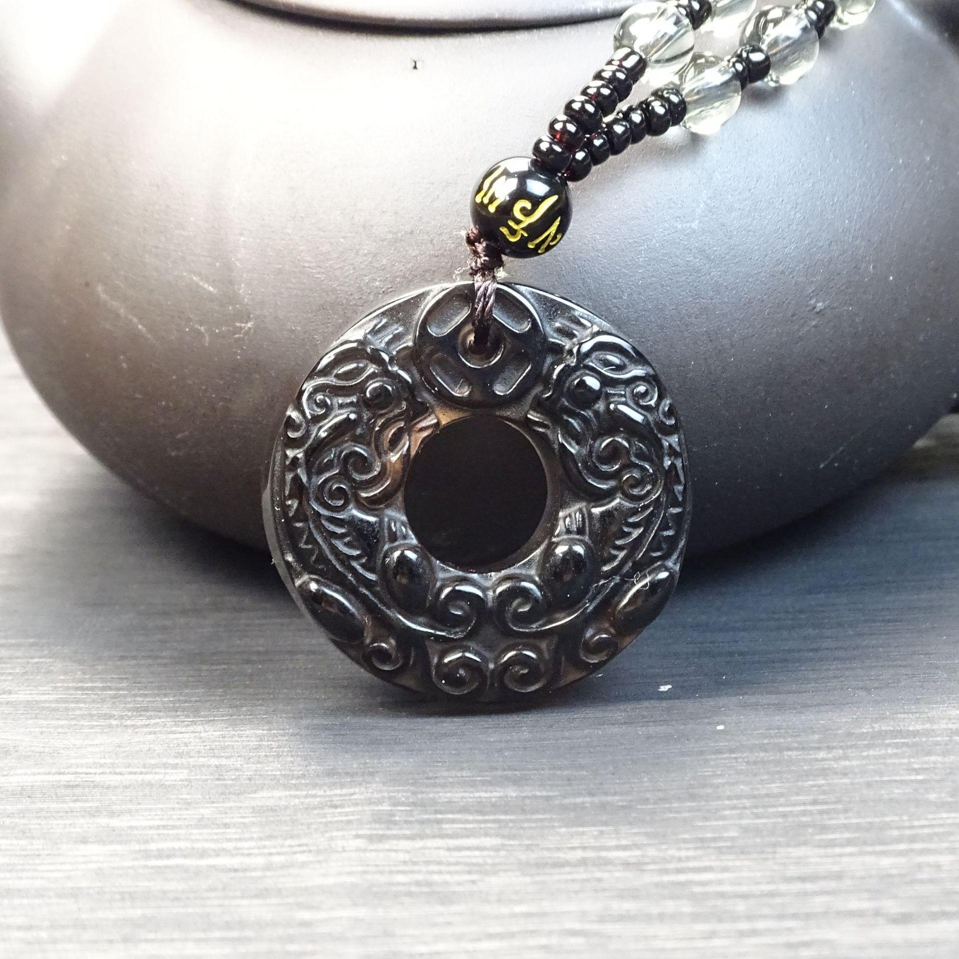 Collar de Pareja con Colgante de Obsidiana Helada Doble Pixiu Hebilla de Seguridad Colgante de Piedra Natural Joyería al por Mayor de Estilo Étnico