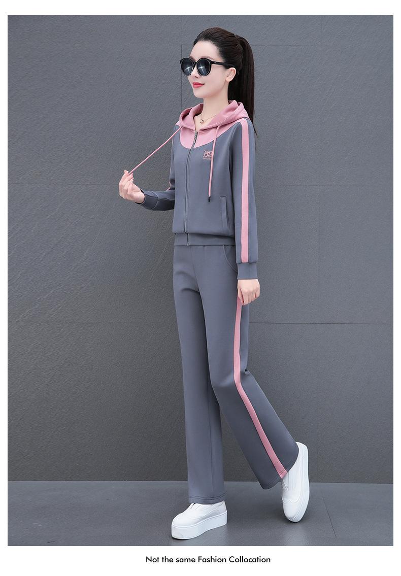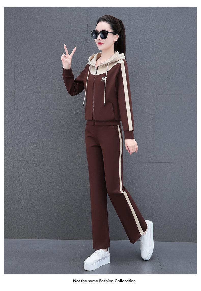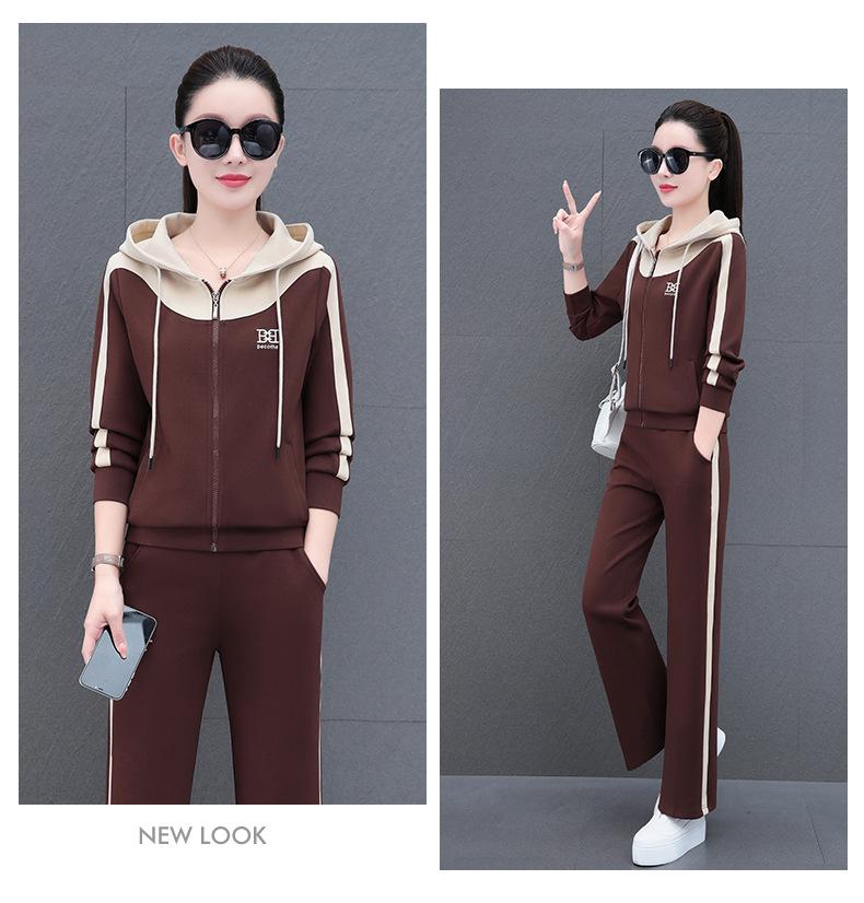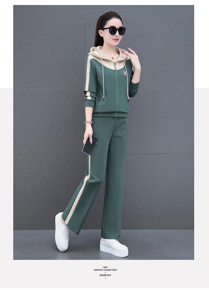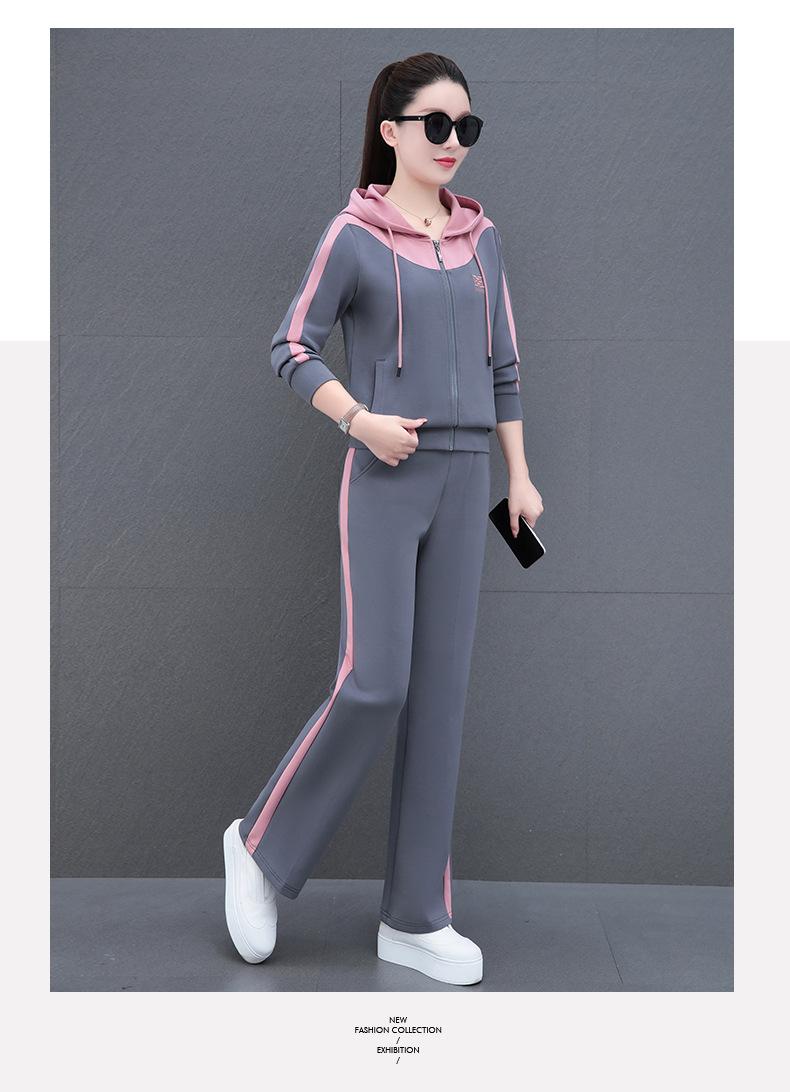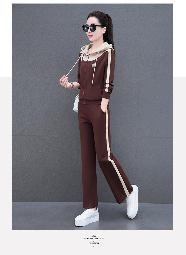 Traje de estilo casual para mujer, otoño, nueva moda, corte ajustado, estilo occidental, con capucha, sudadera holgada, pantalones rectos, conjunto de dos piezas para correr