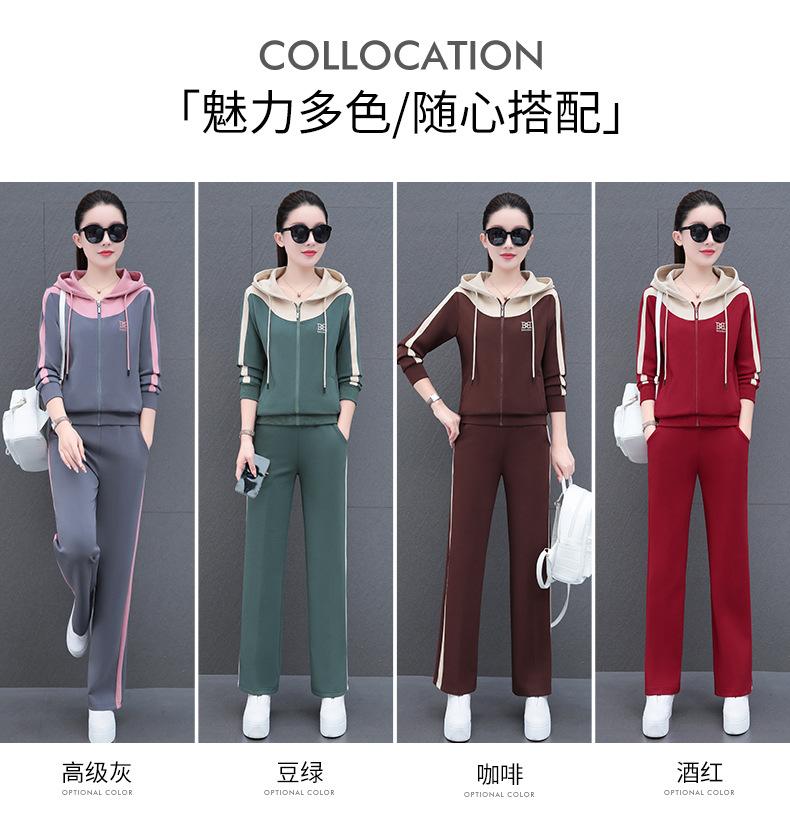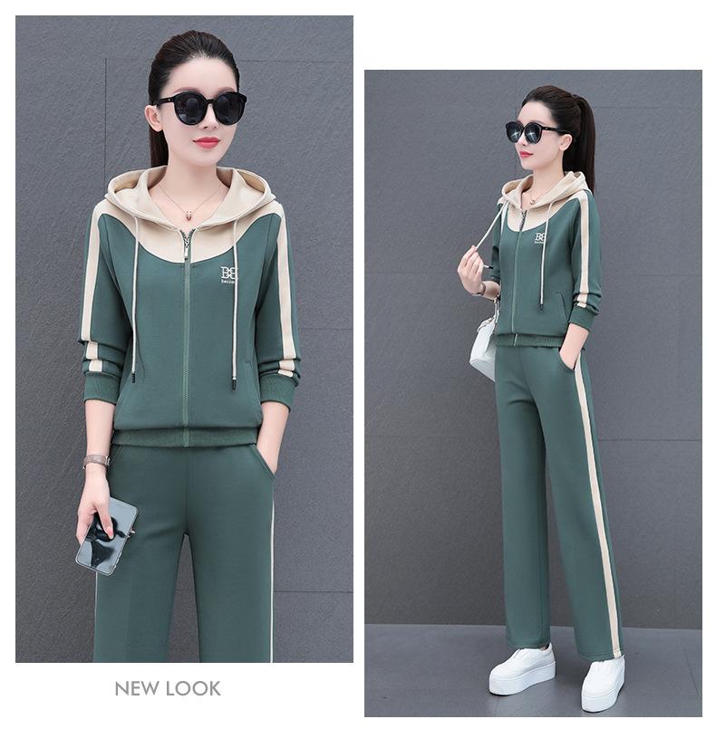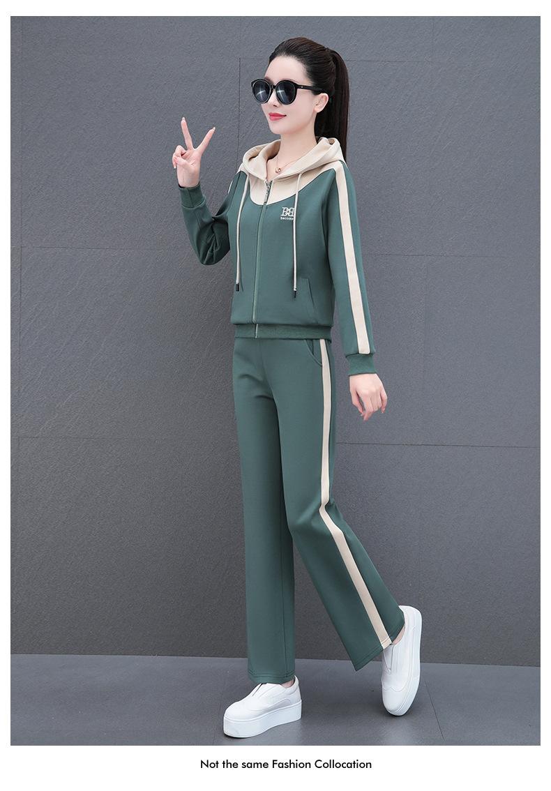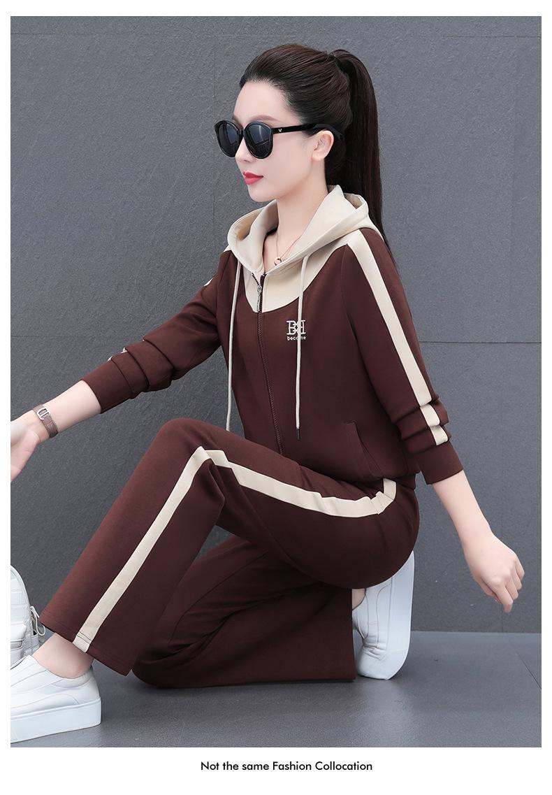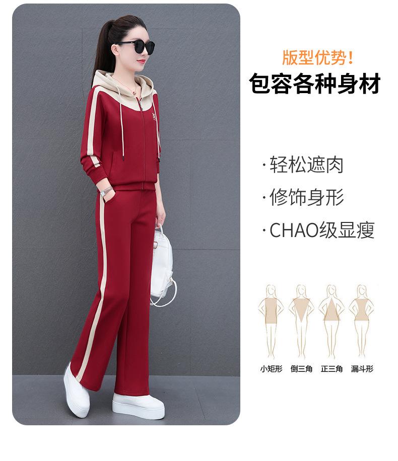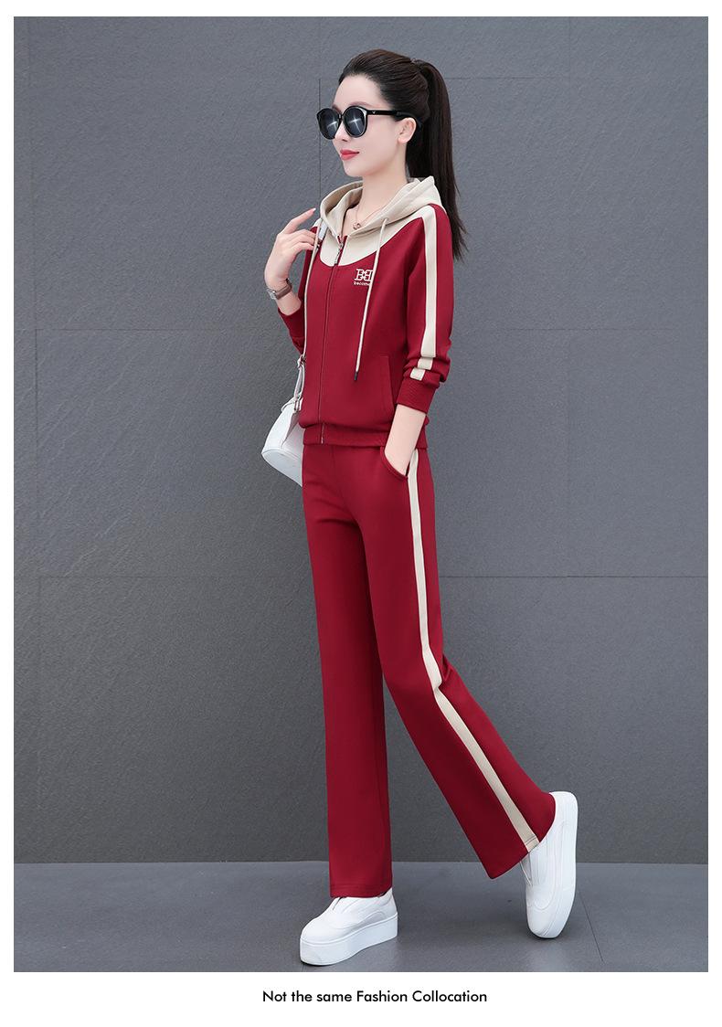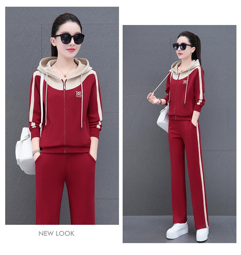 Traje de estilo casual para mujer, otoño, nueva moda, corte ajustado, estilo occidental, con capucha, sudadera holgada, pantalones rectos, conjunto de dos piezas para correr