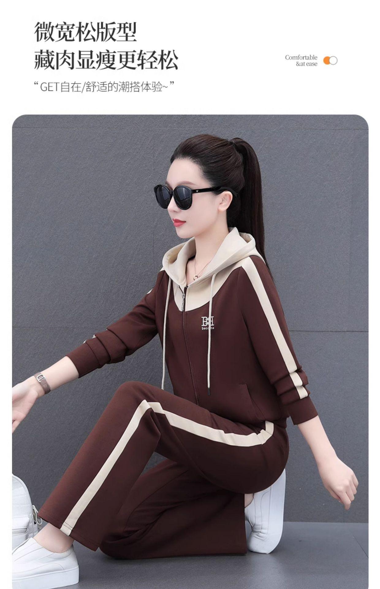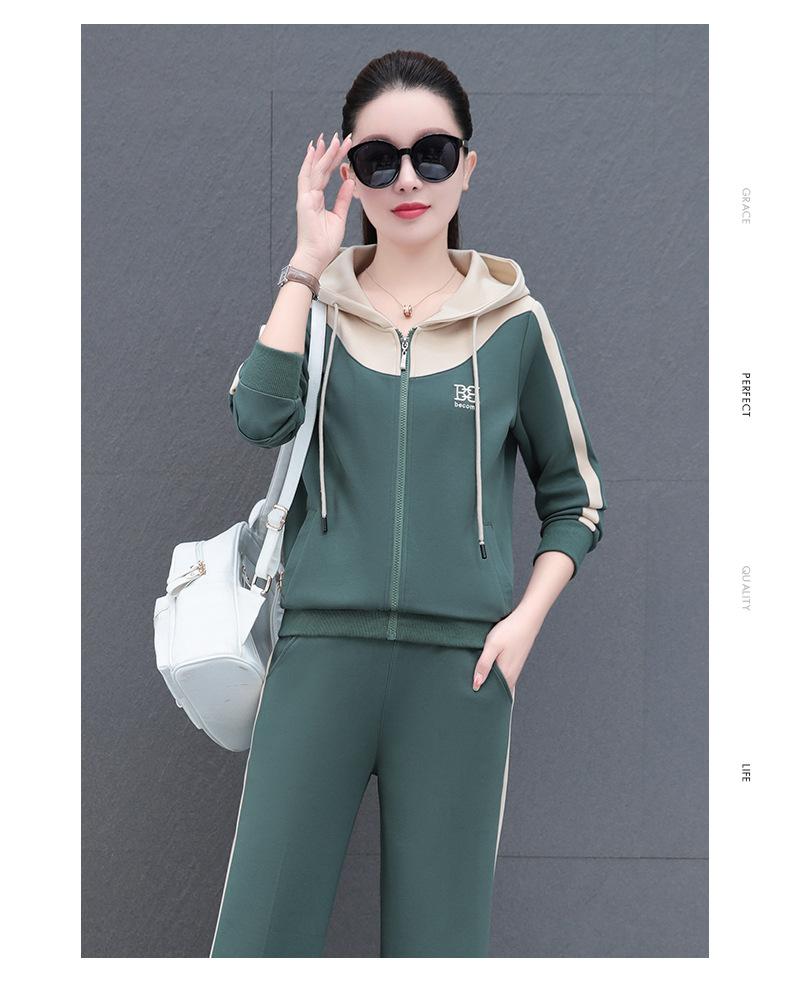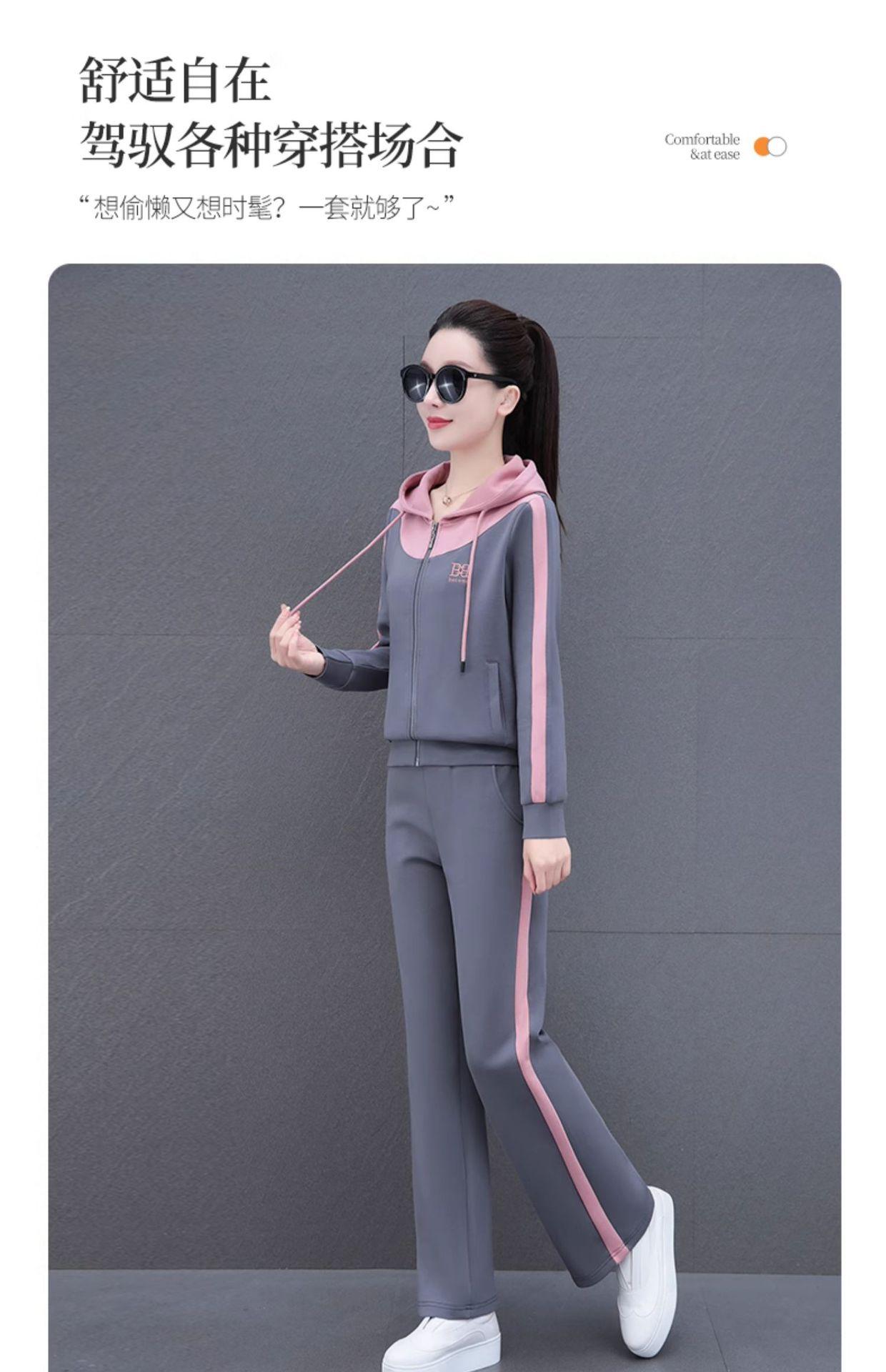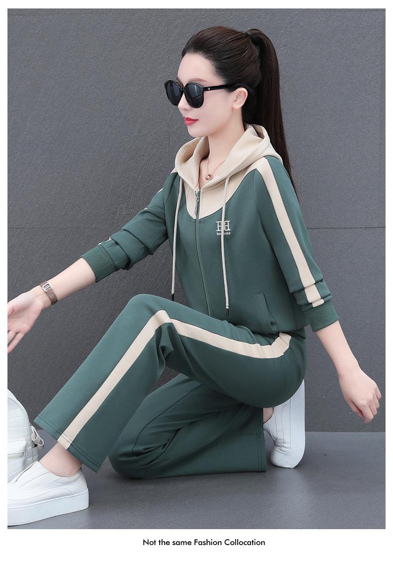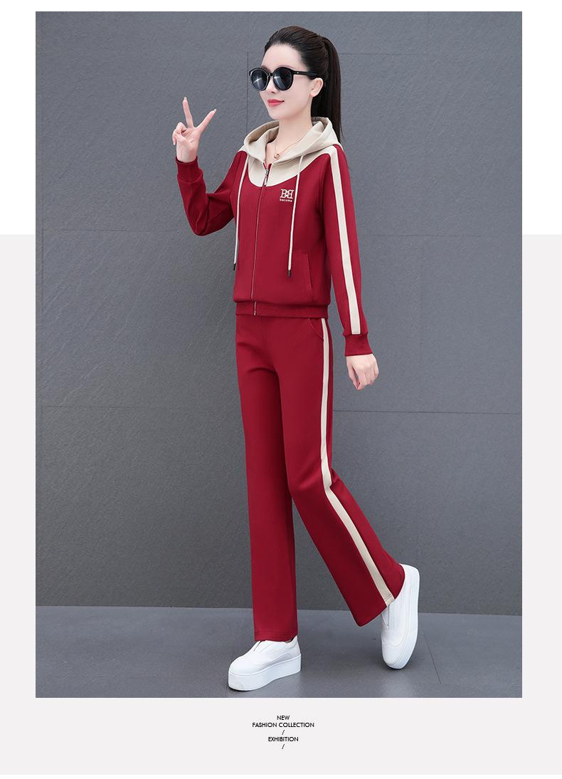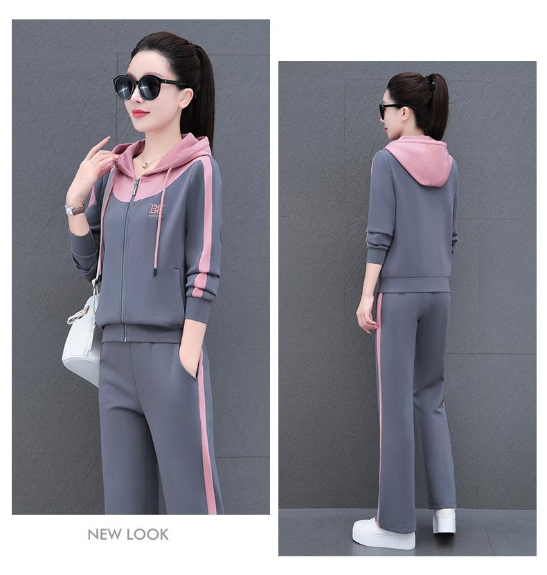Traje de estilo casual para mujer, otoño, nueva moda, corte ajustado, estilo occidental, con capucha, sudadera holgada, pantalones rectos, conjunto de dos piezas para correr