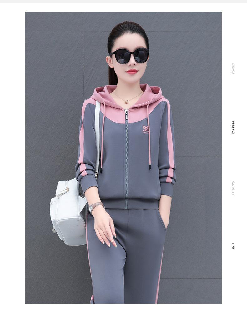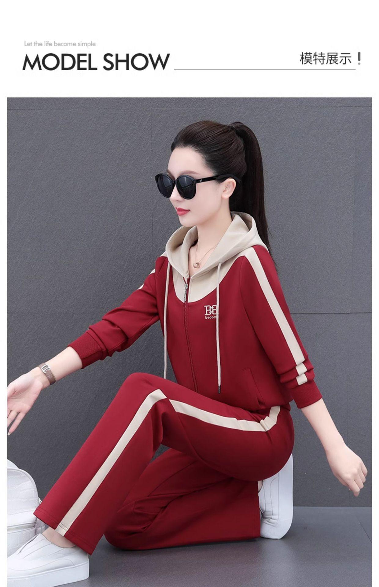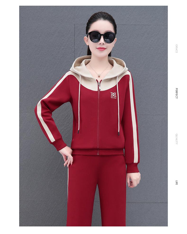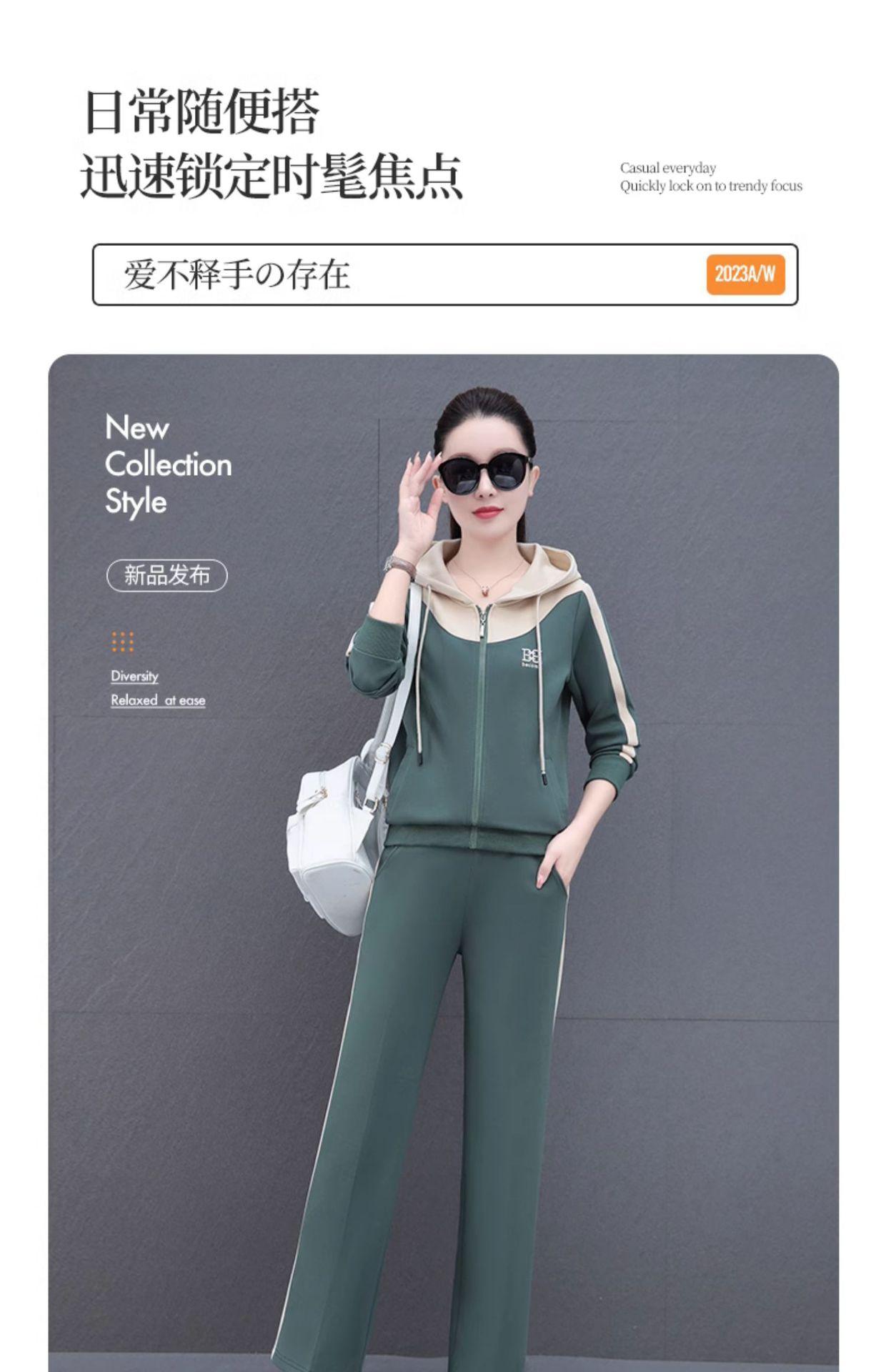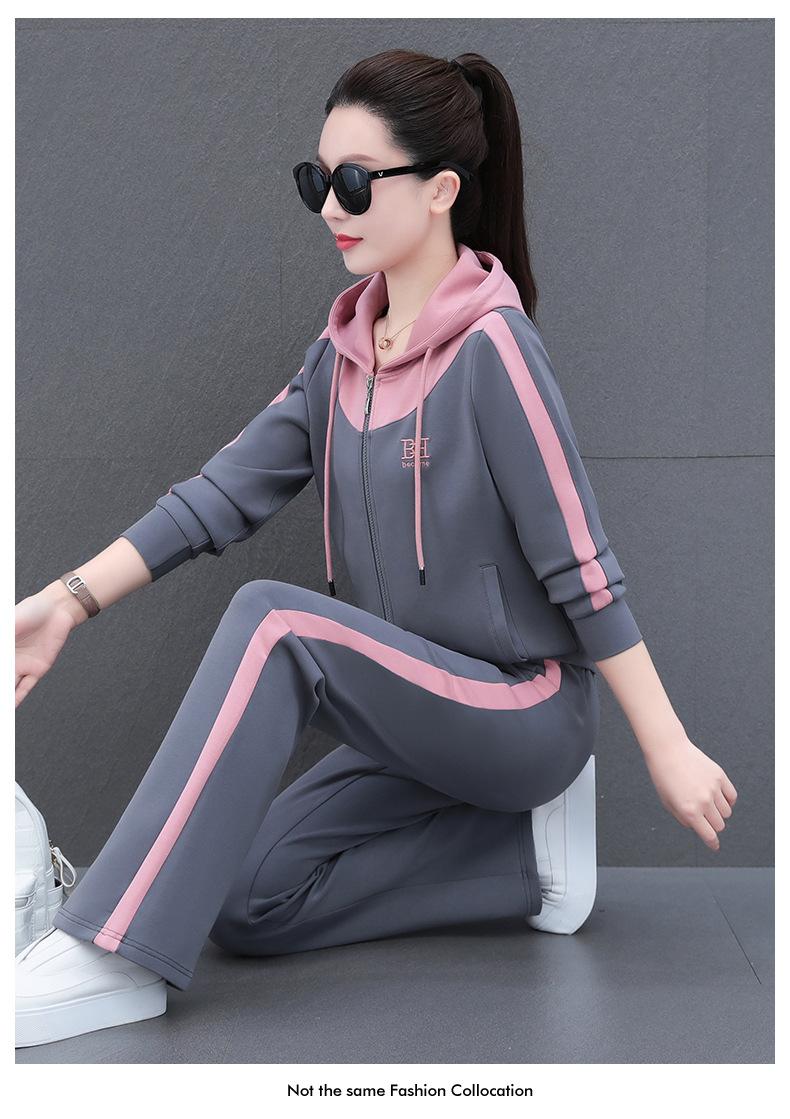 Traje de estilo casual para mujer, otoño, nueva moda, corte ajustado, estilo occidental, con capucha, sudadera holgada, pantalones rectos, conjunto de dos piezas para correr