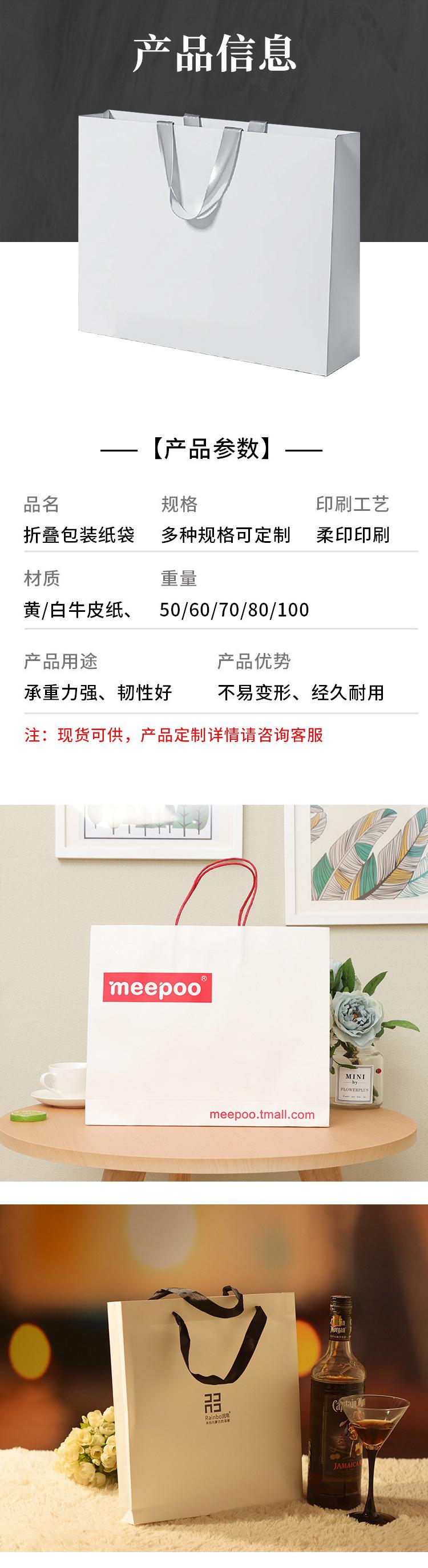 Bolsa de Papel para Compras de Tienda de Ropa para Mujer Bolsa de Regalo Personalizada Logotipo Personalizado Tarjeta Blanca Moda Bolso de Mano con Sentido Avanzado