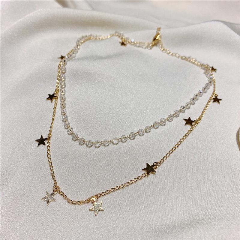 Collar de estrella nicho chic de Corea del Sur, colgante de doble estrella, cadena clavicular temperamental, collar de cristal, collar corto