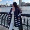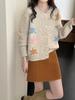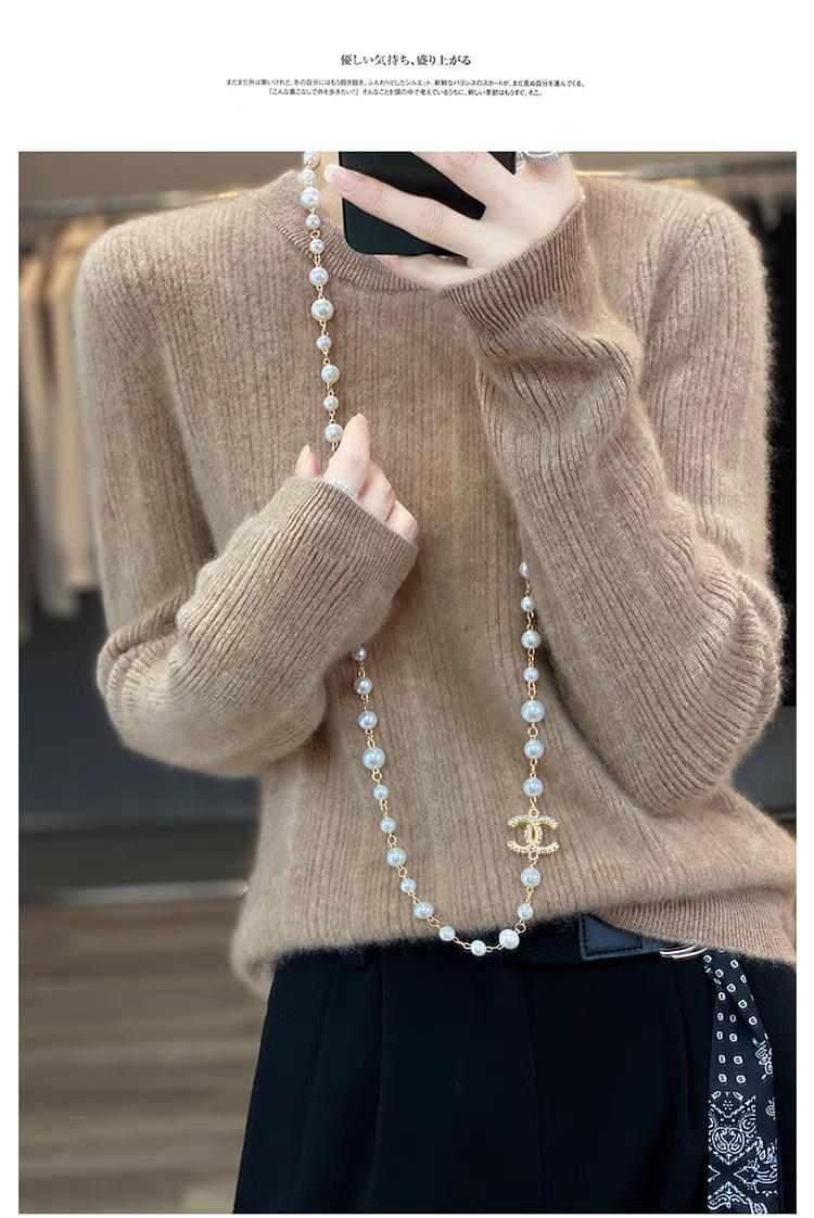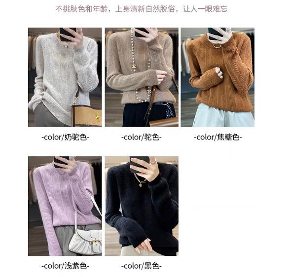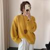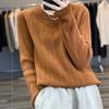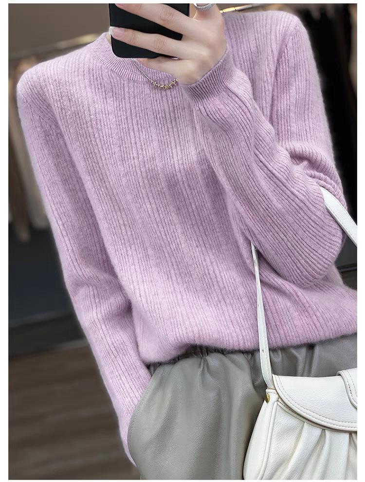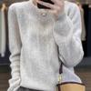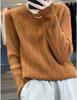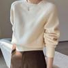 2025 Nuevo Otoño e Invierno Estilo Coreano Cuello Redondo Manga Larga Punto Suelto y Versátil Color Puro Exterior Punto Top para Mujer