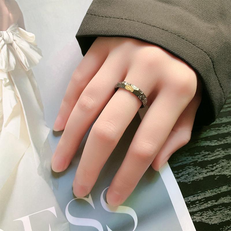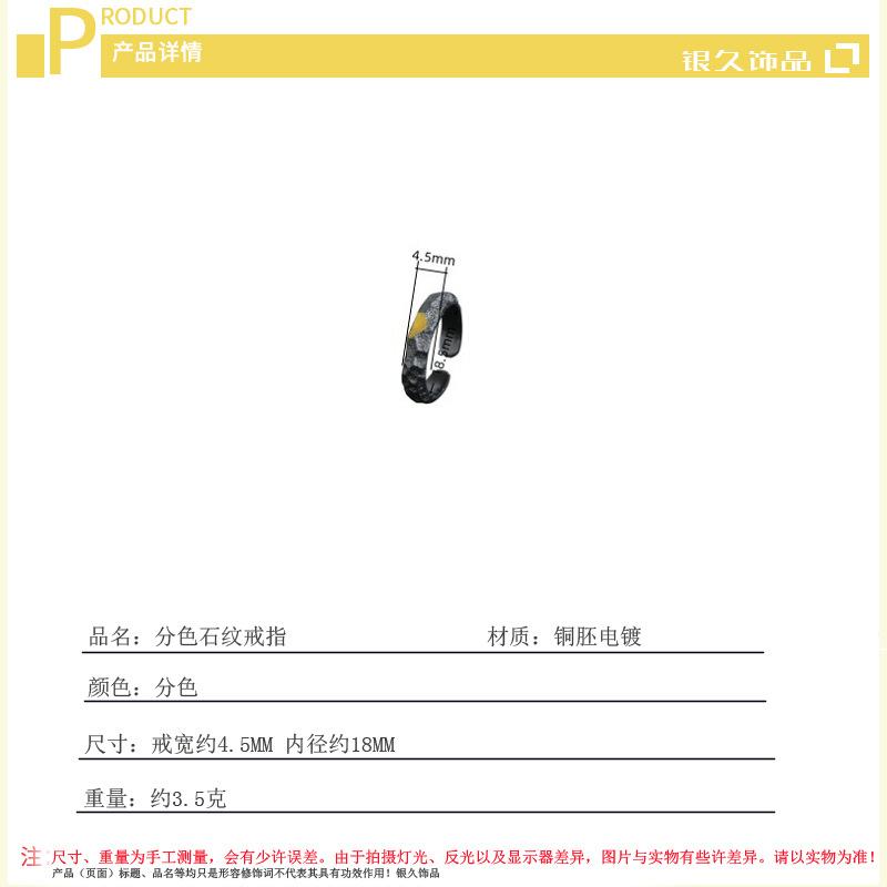 Anillo de piedra con patrón de separación de color oscuro de alta calidad para hombres y mujeres, personalidad, tendencia, lujo ligero, diseño de nicho, creativo, venta al por mayor