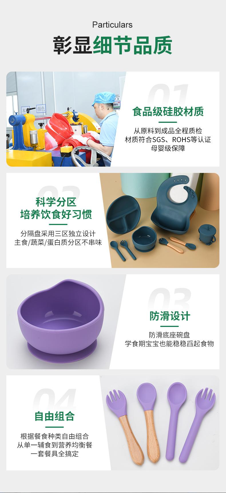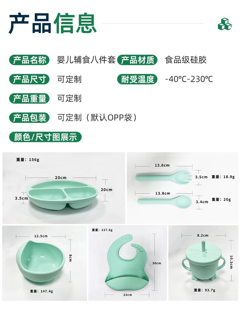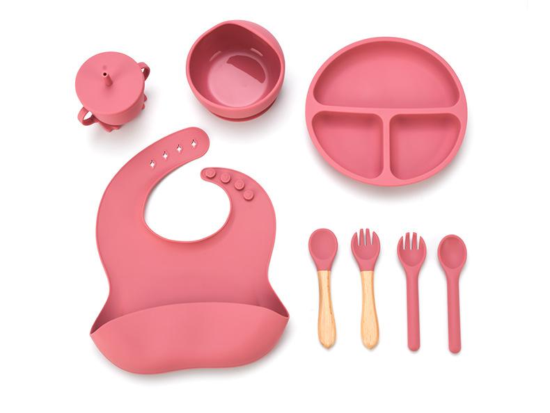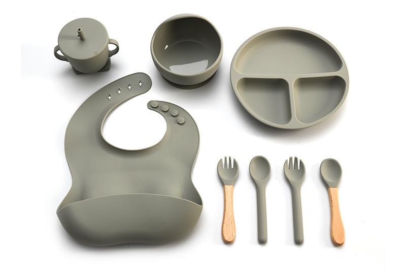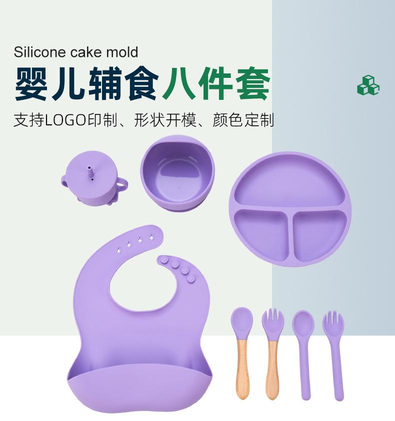 Nuevo Producto Transfronterizo Set de Vajilla de Silicona para Bebé de Ocho Piezas de Grado Alimenticio Vajilla de Silicona para Suplemento Alimenticio Infantil