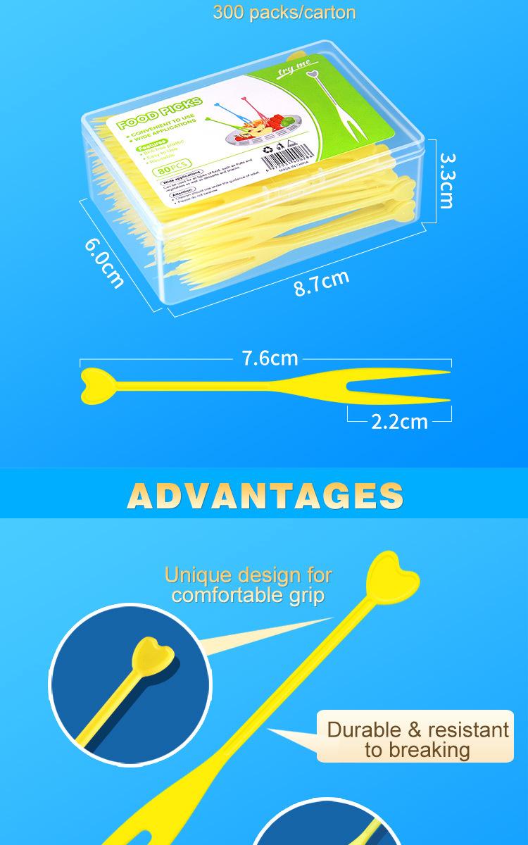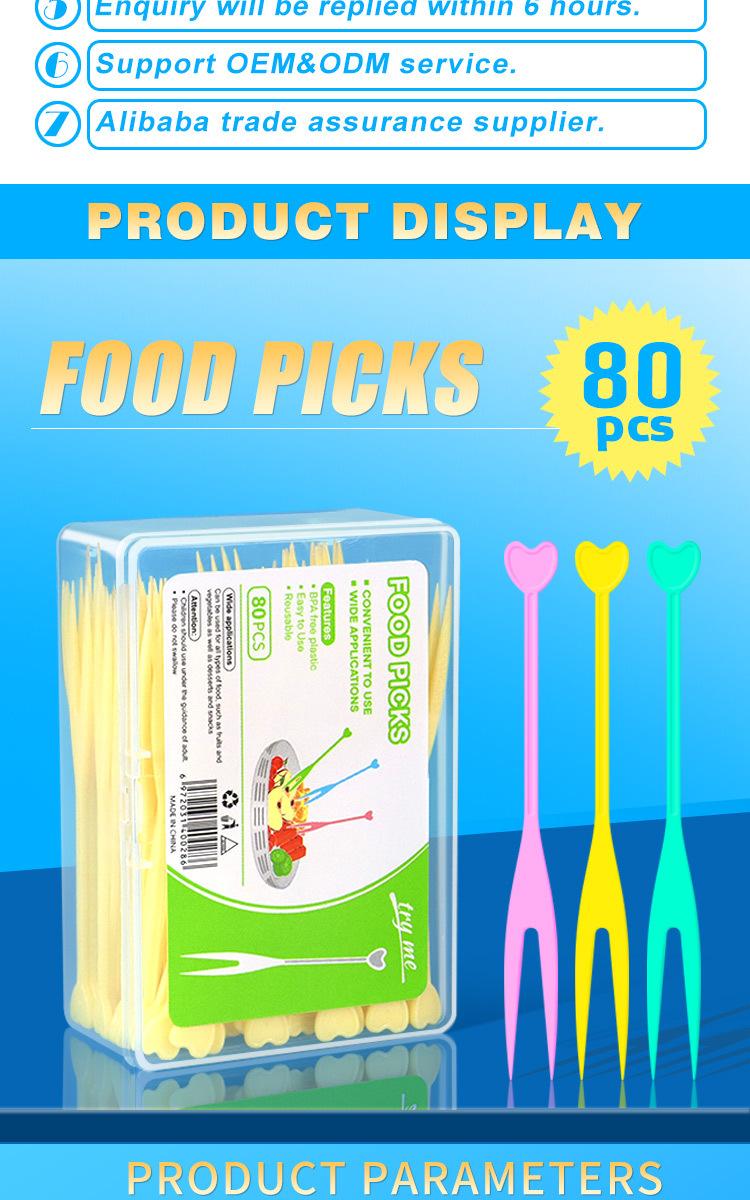 Exportación Transfronteriza Tenedores de Plástico Desechables para Fruta, Palillos para Fruta, Tenedores para Pastel, Caja Doméstica 80 Palillos para Fruta en Stock