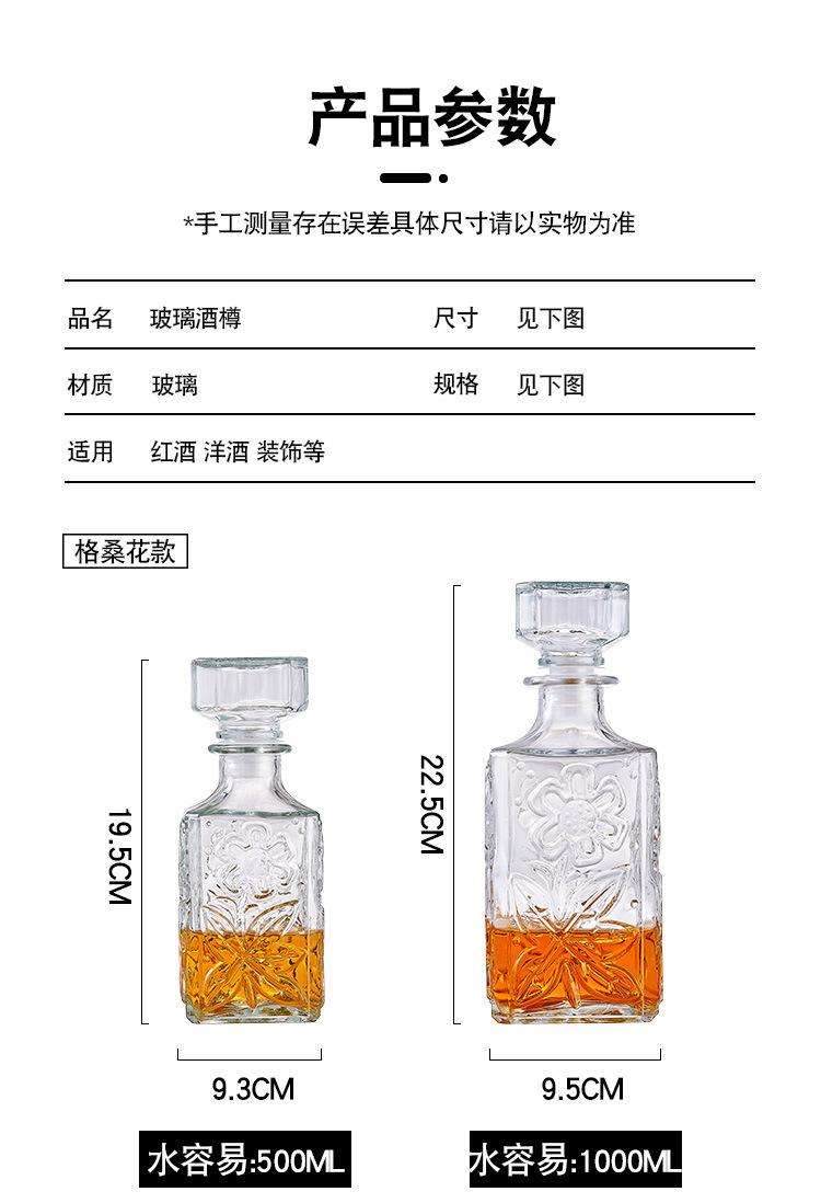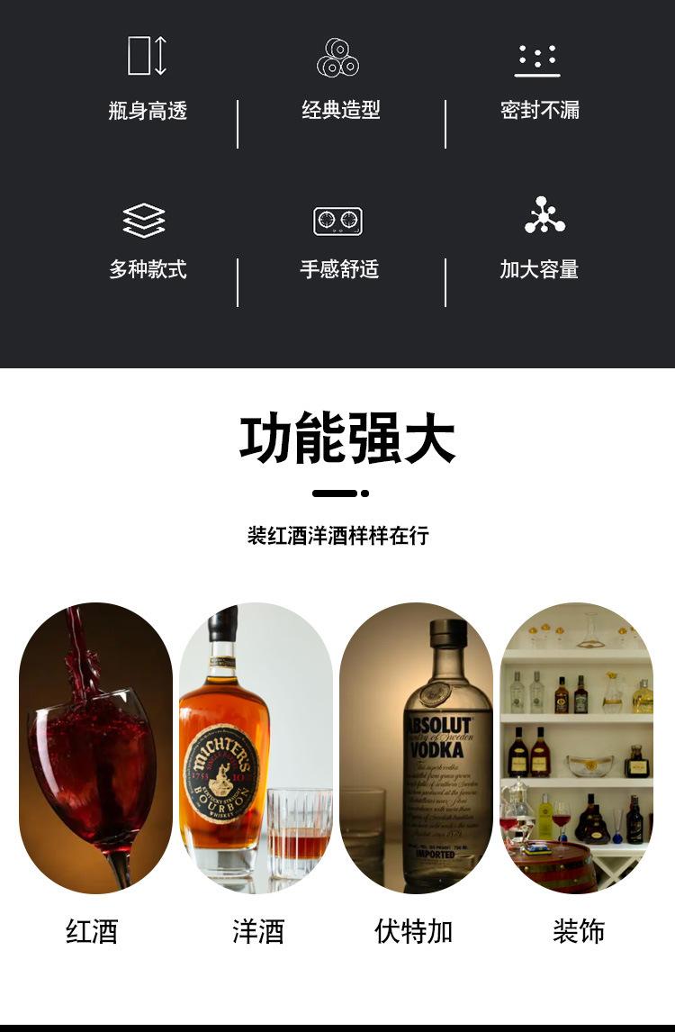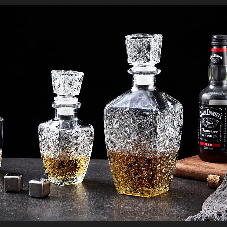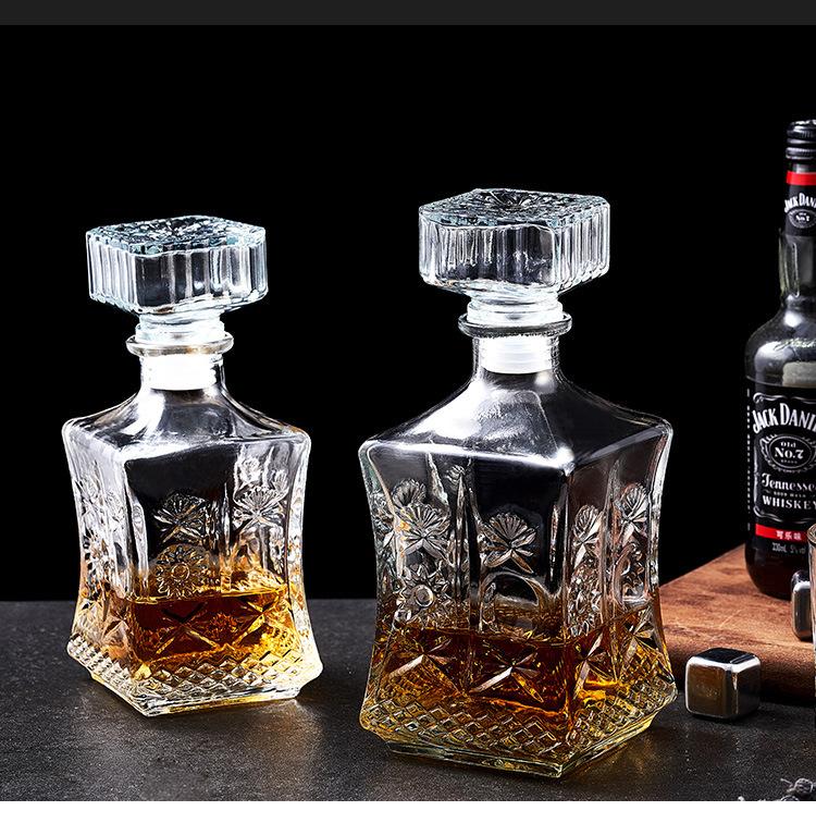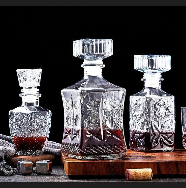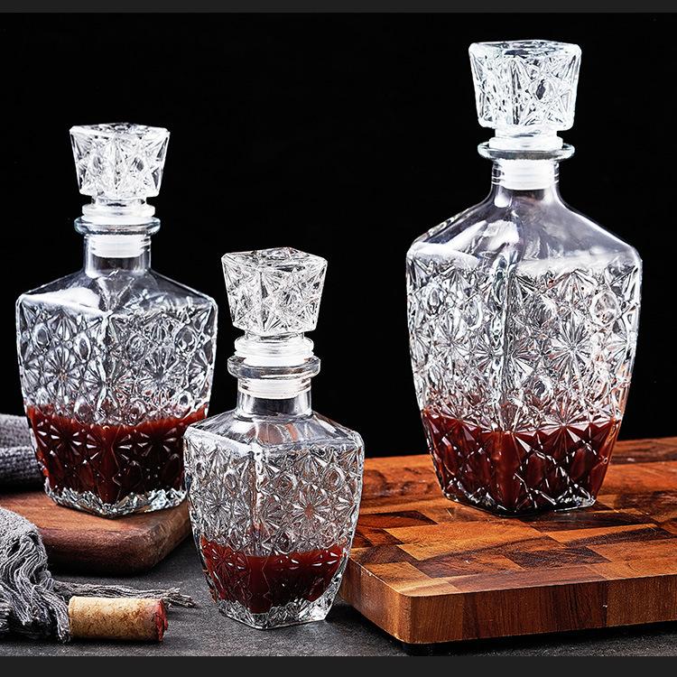 Botella de Vino de Cristal Europeo Botella de Whisky Botella de Vino Tinto Vidrio Transparente Botella de Vino Vacía Divisor de Vino Decantador