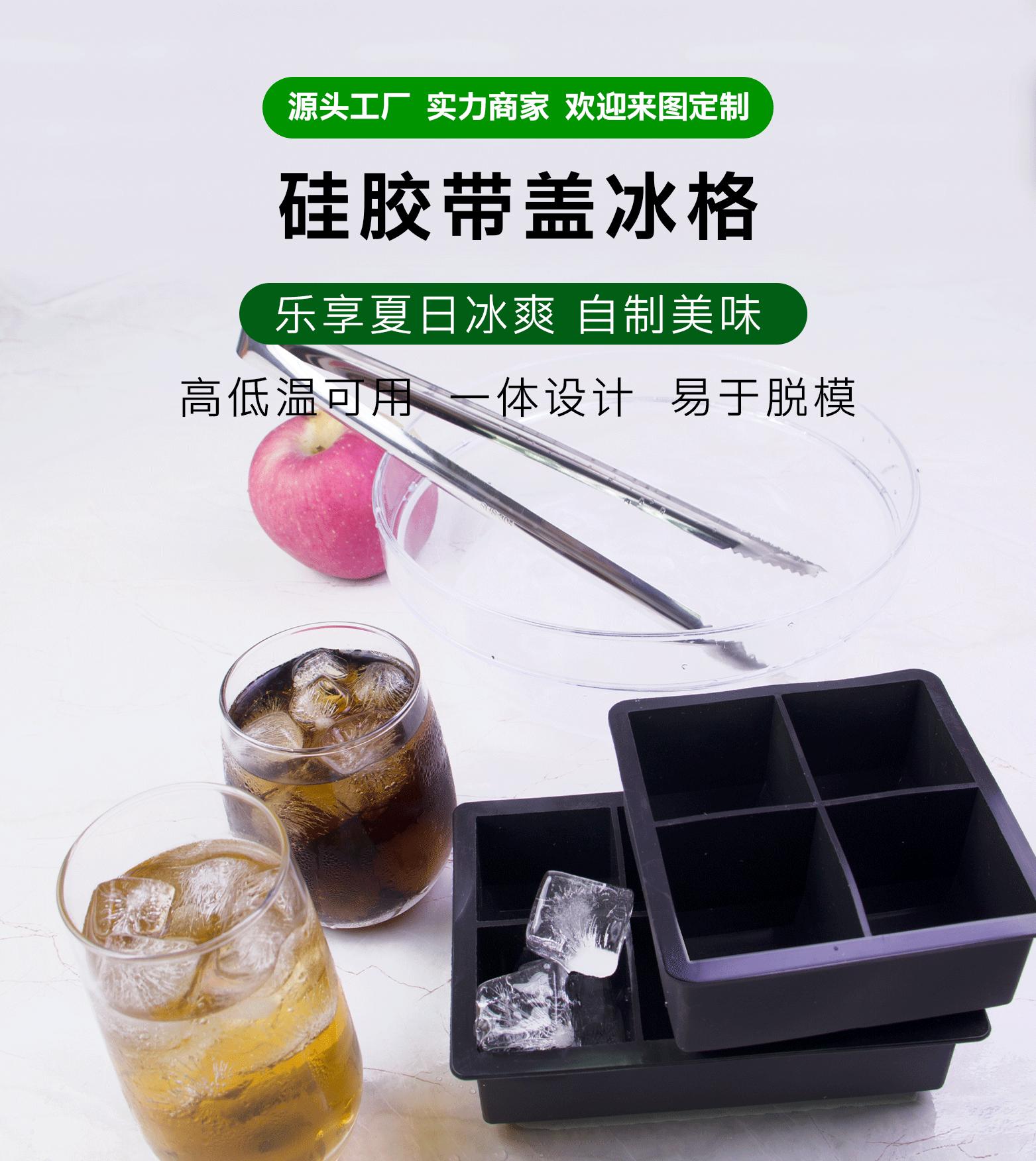 Moldes para Hielo Transfronterizos Creativos de Gran Capacidad Cuadrados con Tapa Caja para Hacer Hielo Grado Alimenticio Bandejas para Hielo Grandes de Silicona