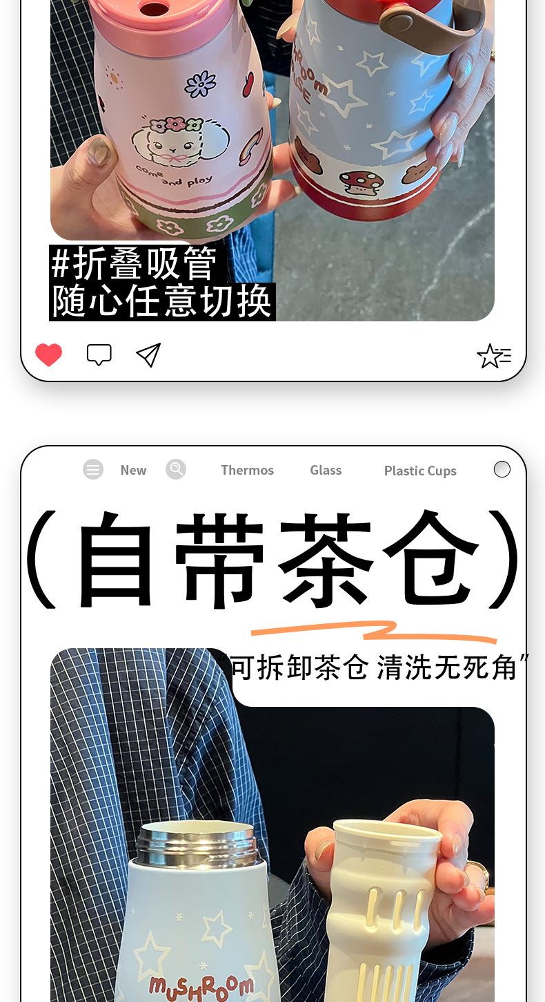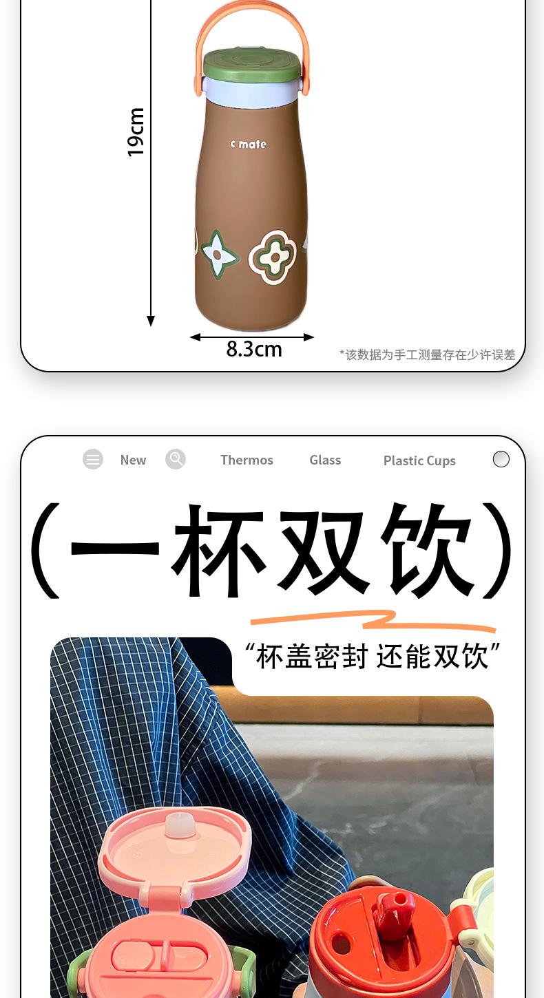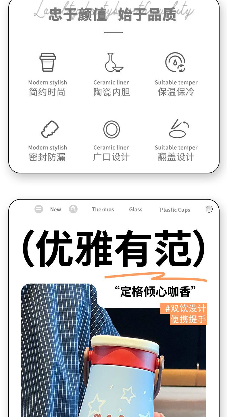 Vaso Termo con Revestimiento de Cerámica de Gran Capacidad 2025 Nuevo Estilo para Niñas Estudiante Portátil Vaso Doble con Pajita para Beber