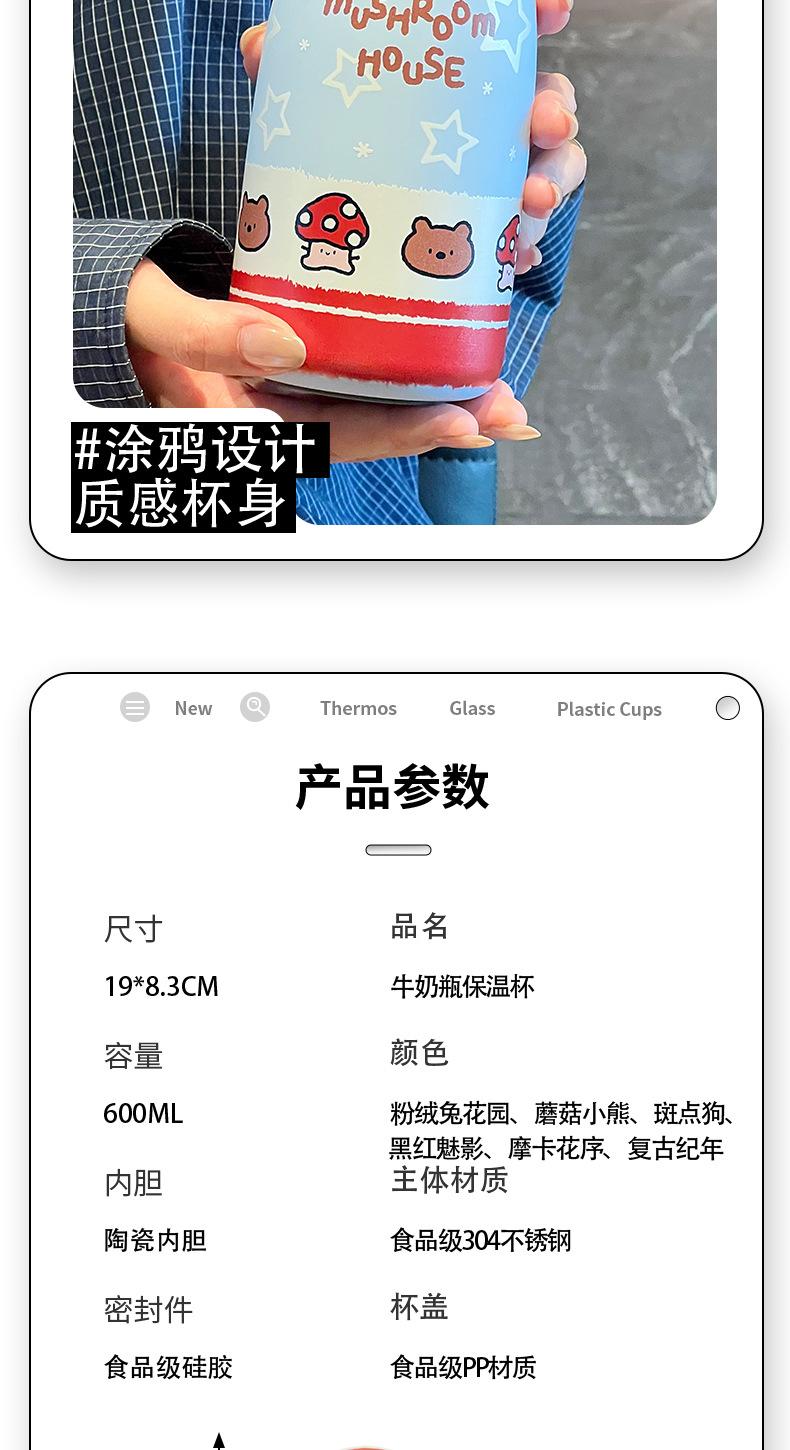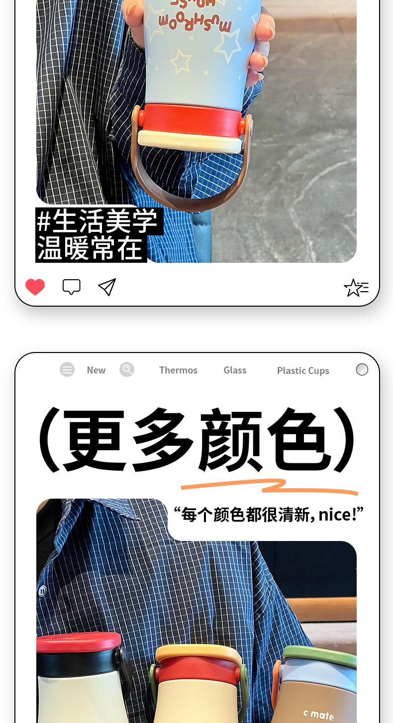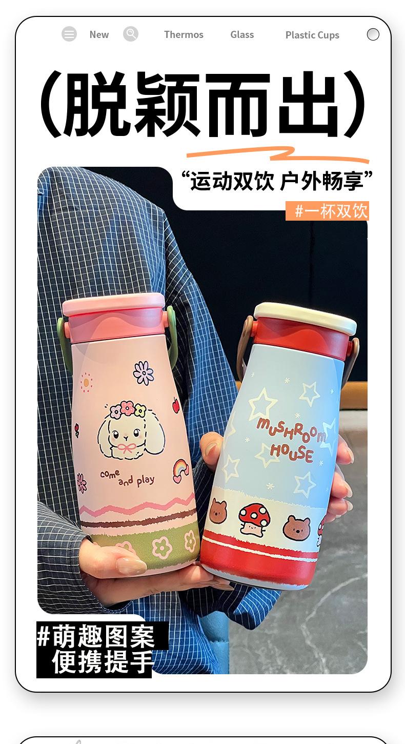 Vaso Termo con Revestimiento de Cerámica de Gran Capacidad 2025 Nuevo Estilo para Niñas Estudiante Portátil Vaso Doble con Pajita para Beber