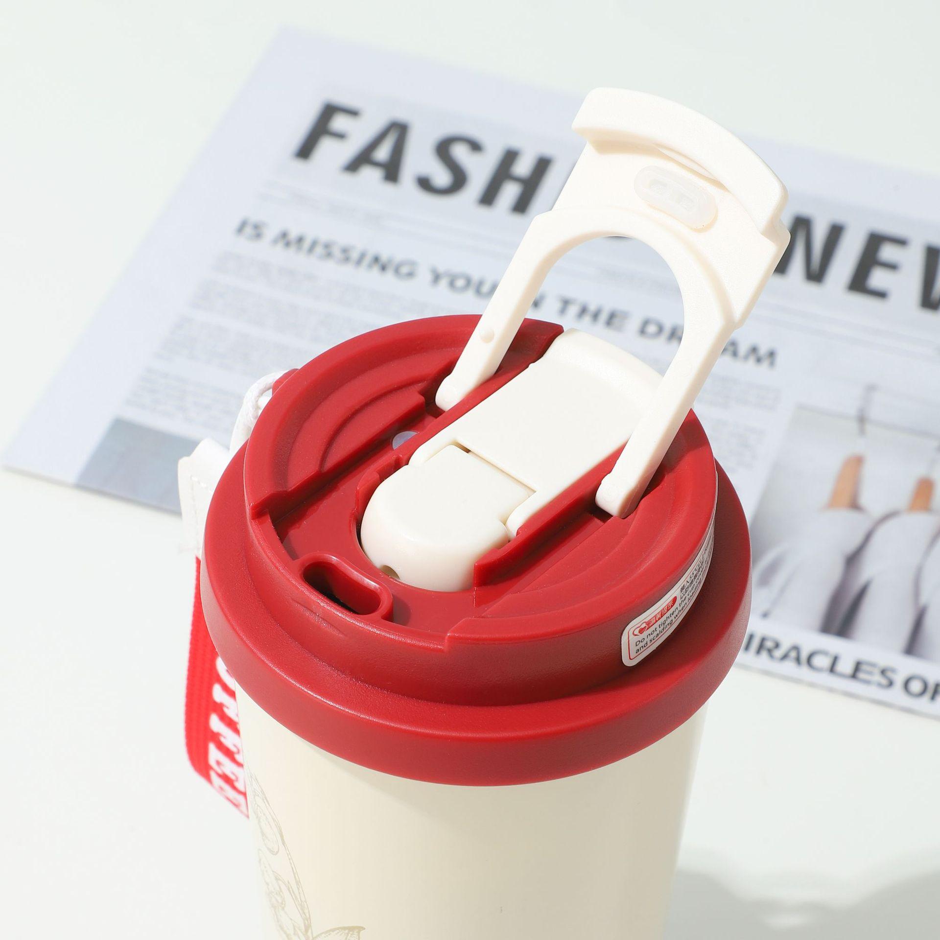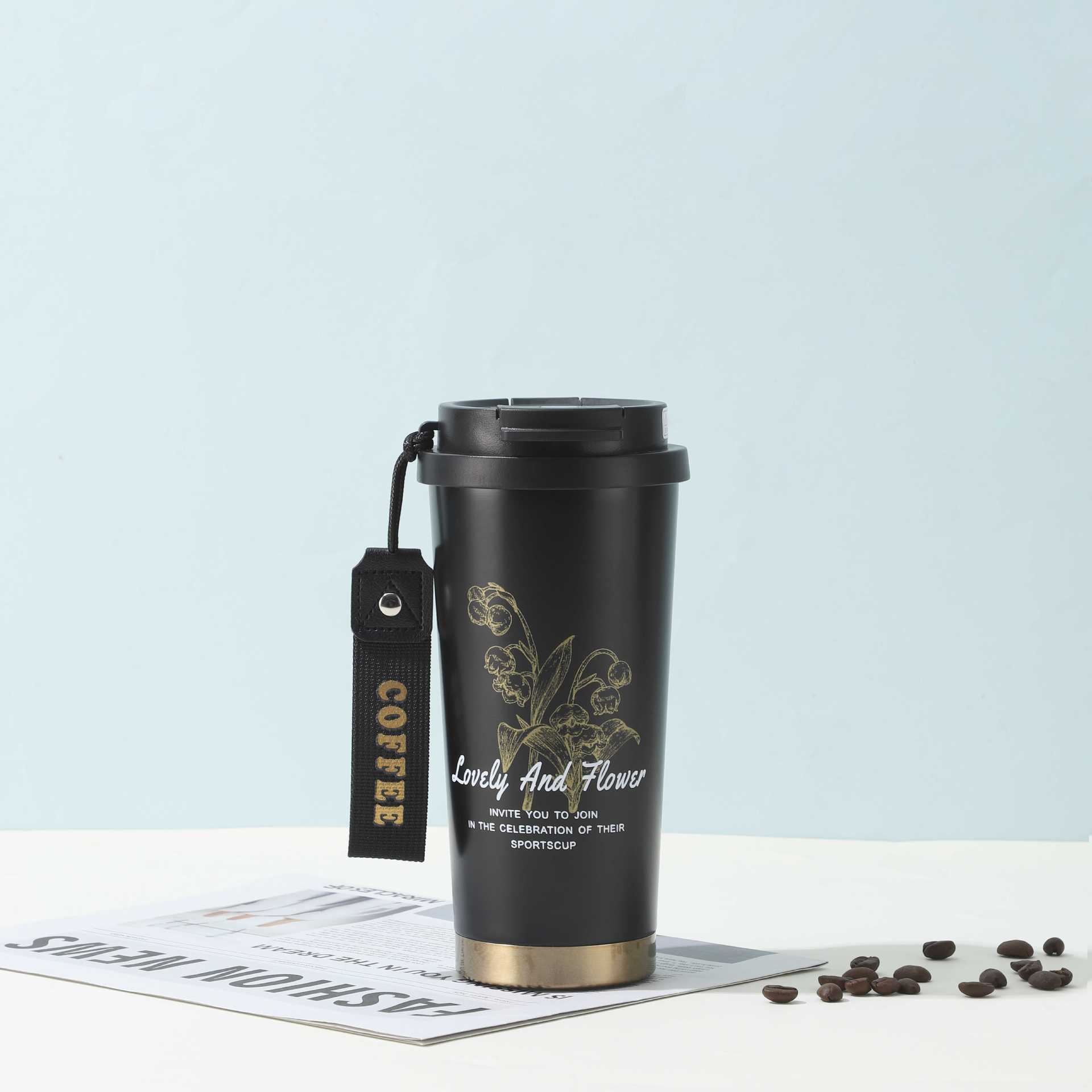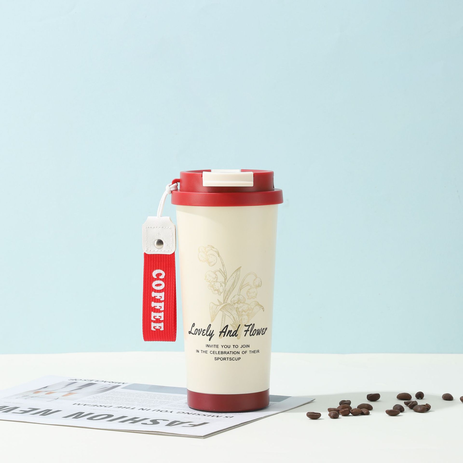 Taza de Café Lirio de los Valles de Aspecto Elegante Taza Termo de Acero Inoxidable 316 con Cuerda Vaso con Doble Pajita para Beber Taza de Regalo para Coche