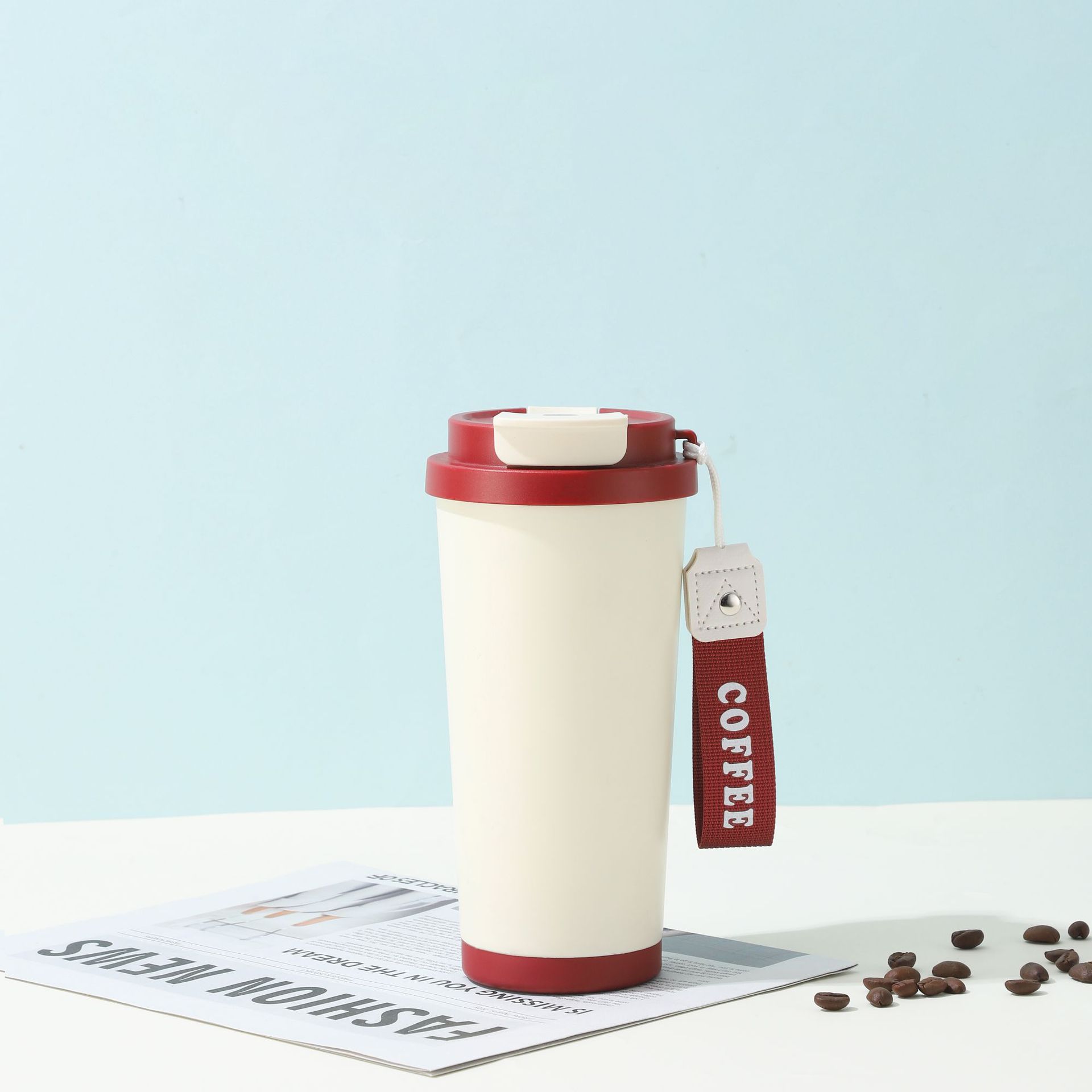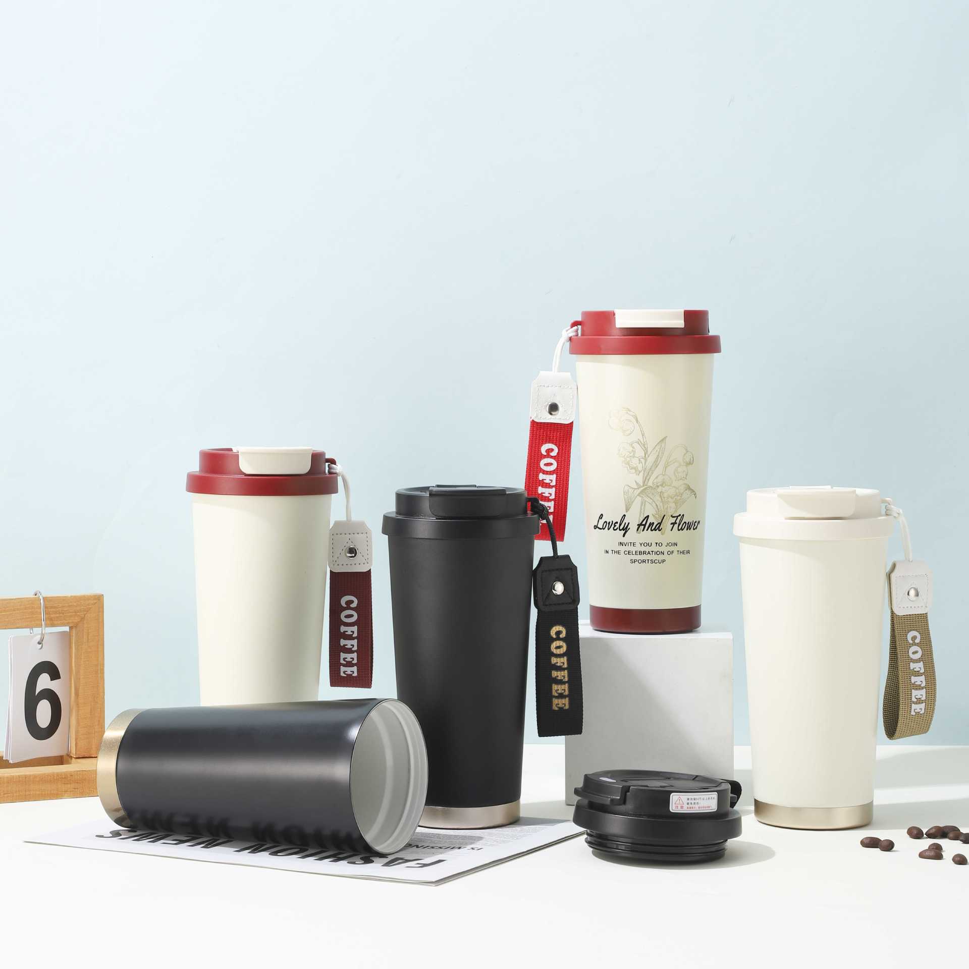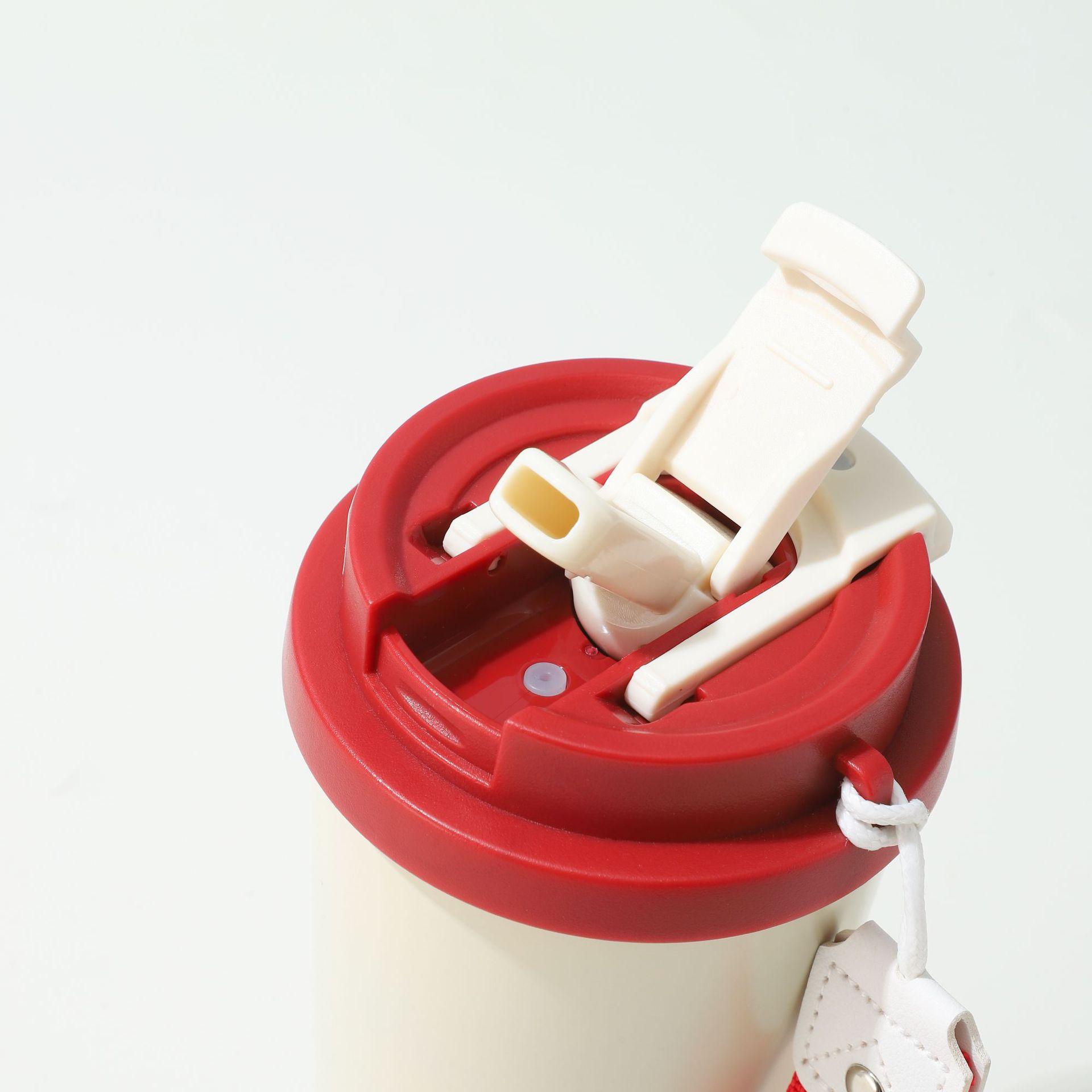 Taza de Café Lirio de los Valles de Aspecto Elegante Taza Termo de Acero Inoxidable 316 con Cuerda Vaso con Doble Pajita para Beber Taza de Regalo para Coche