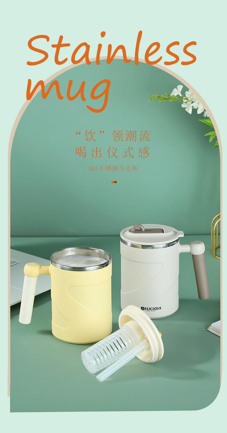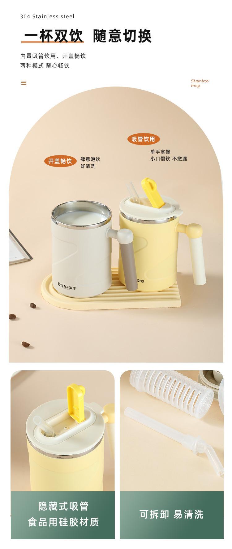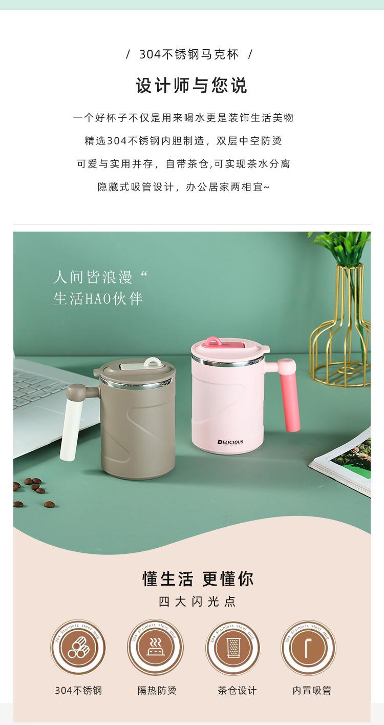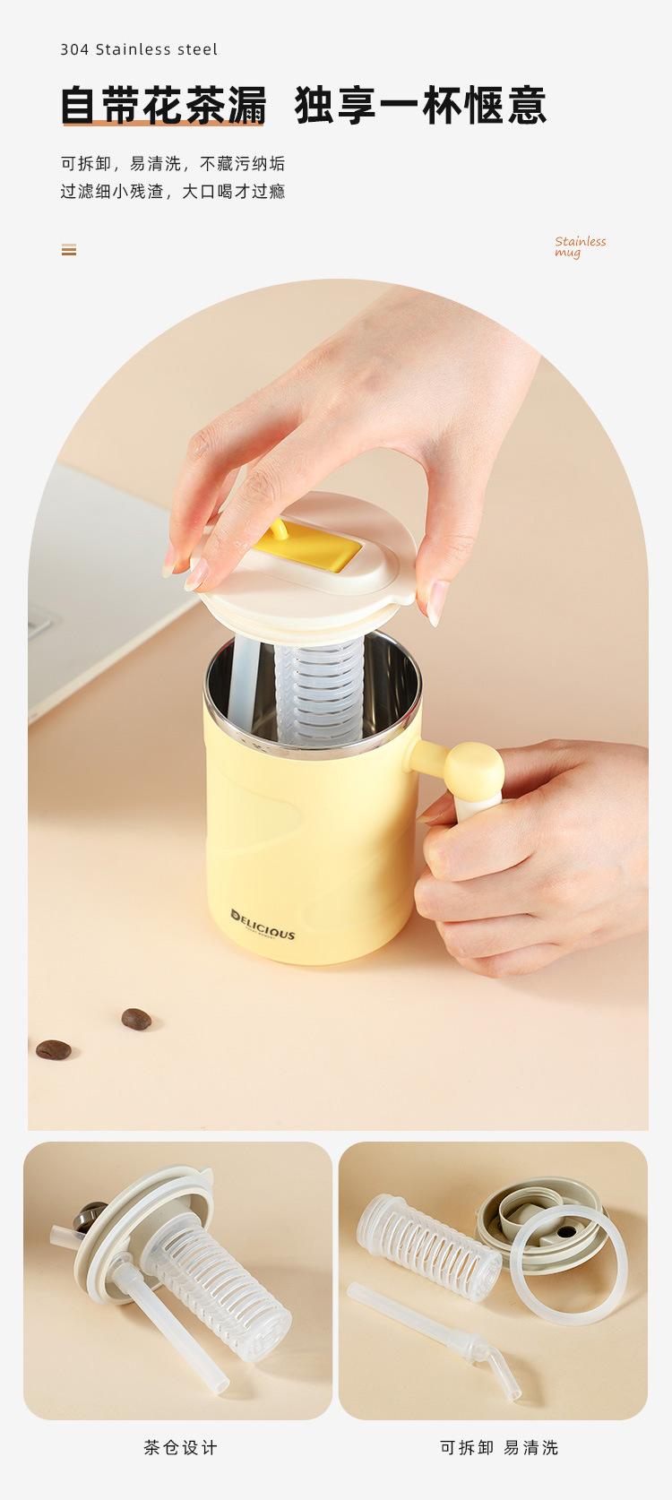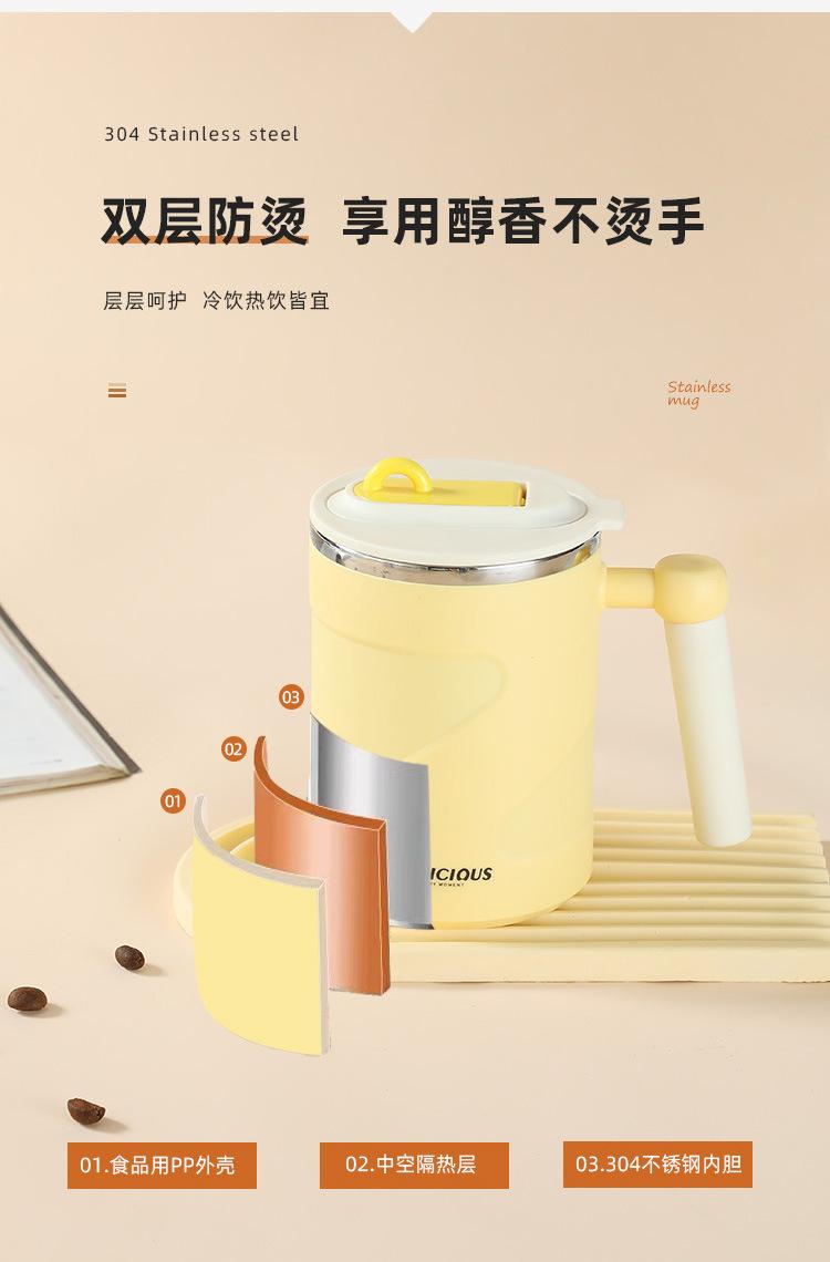 Taza de Acero Inoxidable 304 con Tapa Taza de Té Doble Capa Antiescaldadura y Anticaída Vaso de Agua Hogar Oficina Taza de Café Regalo