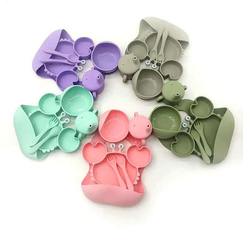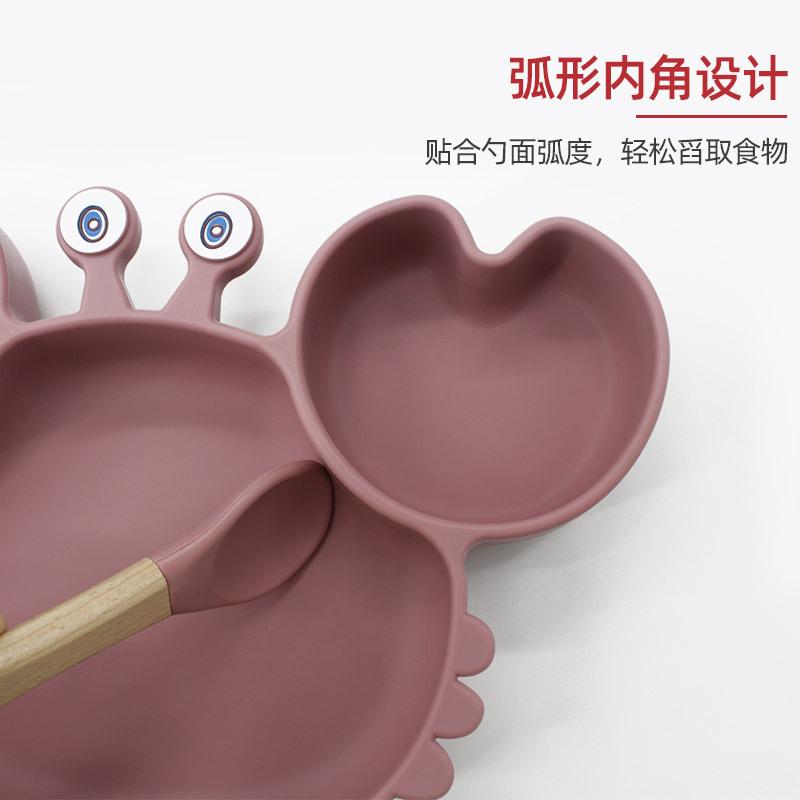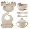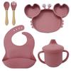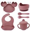 Plato de Cena de Cangrejo para Niños Silicona Alimentación Vajilla de Dibujos Animados Vaso con Pajita para Bebé Set de Vajilla de Seis Piezas