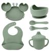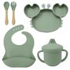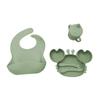 Army green 5 pieces (bib + crab plate + pacifier cup + wooden handle fork and spoon)
