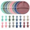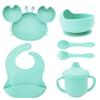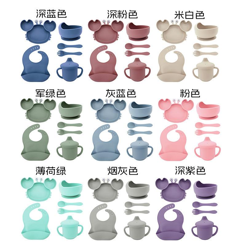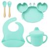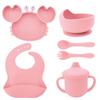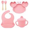 Mint green 5 pieces (bib + crab plate + pacifier cup + wooden handle fork and spoon), Pink 5 pieces (bib + cra...