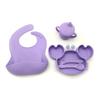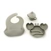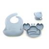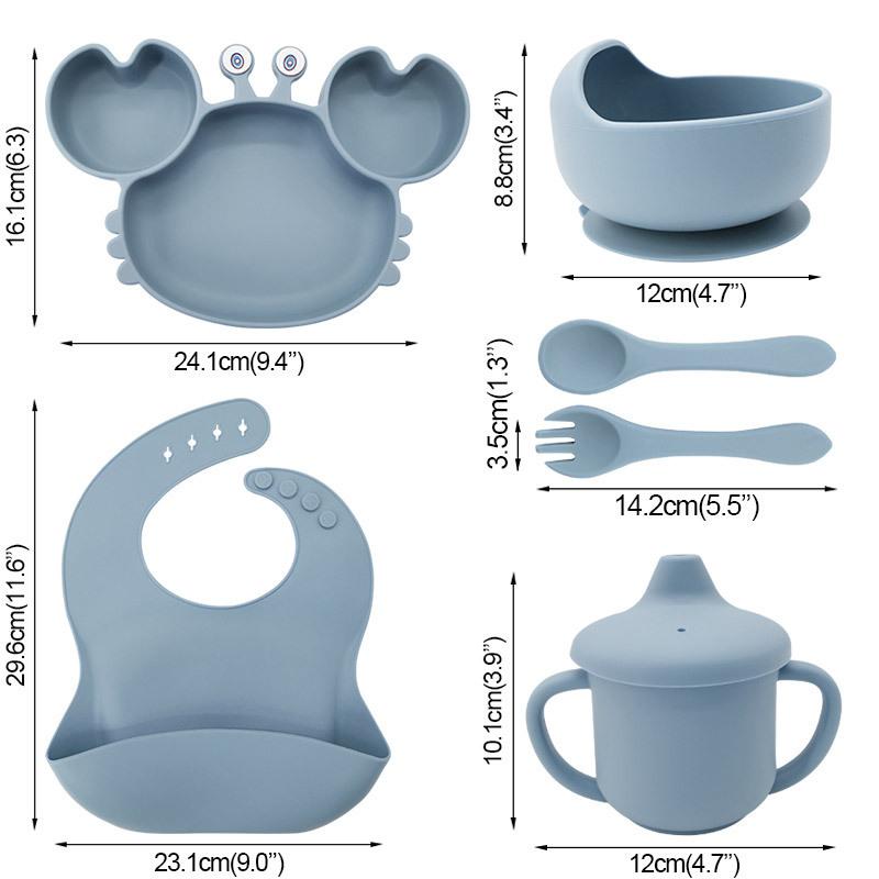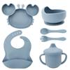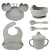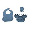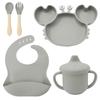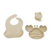 5 pieces in smoky gray (bib + crab plate + pacifier cup + wooden handle fork and spoon)