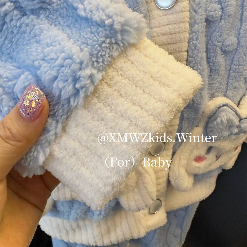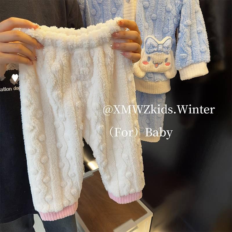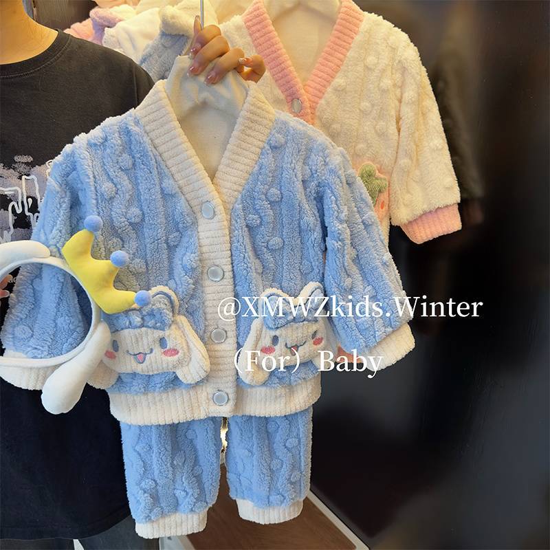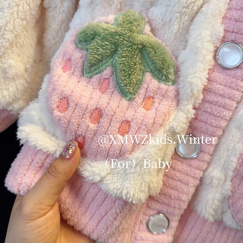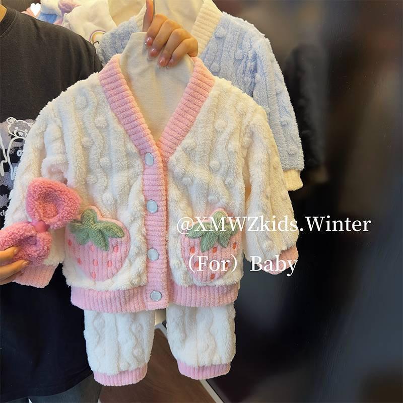 Ropa para Niñas Otoño e Invierno 2024 Nuevo Terciopelo Grueso de Doble Cara Ropa para el Hogar Pijama de Dos Piezas para Bebé Niña Lindo de Fresa