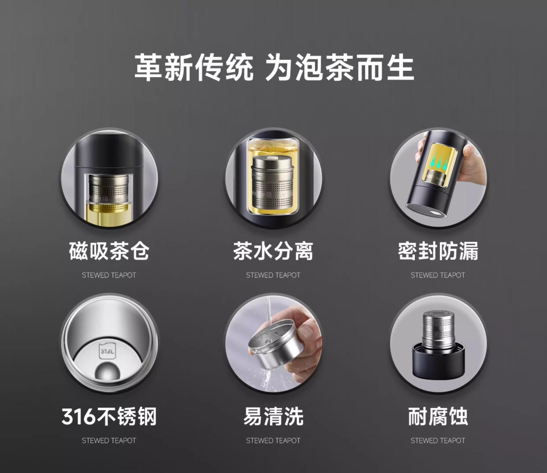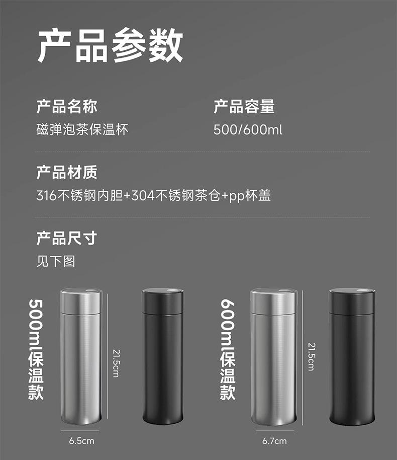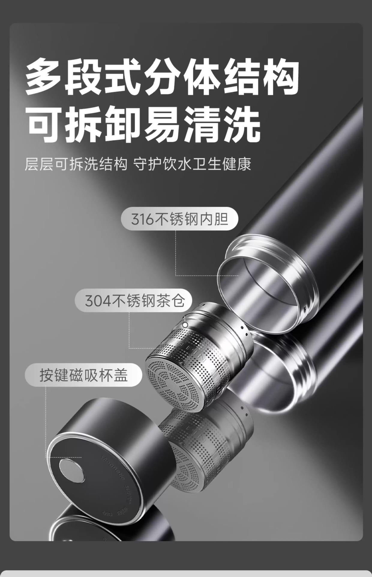 Taza Magnética Aislada Acero Inoxidable 316 Taza para Separación de Té y Agua Taza para Preparar Té Taza para Agua para Coche Taza para Oficina Taza de Apertura Rápida