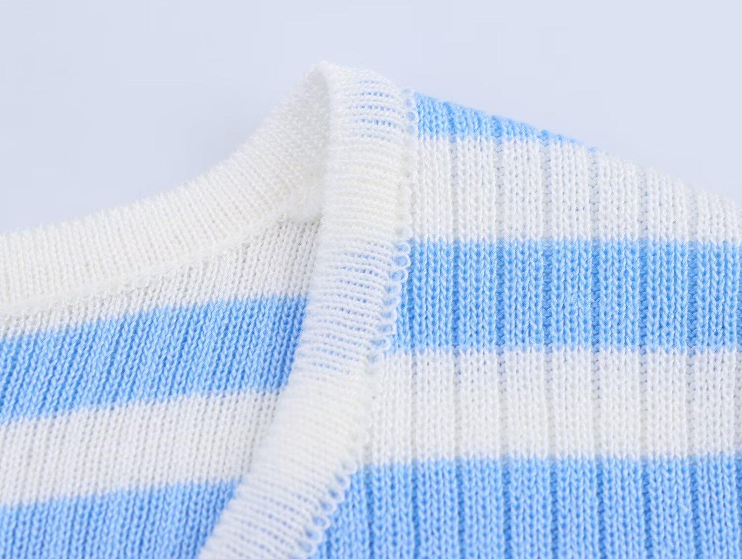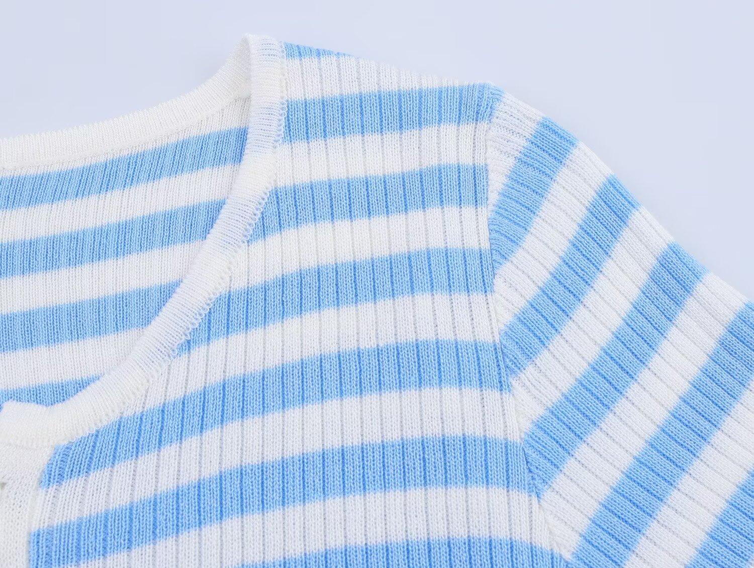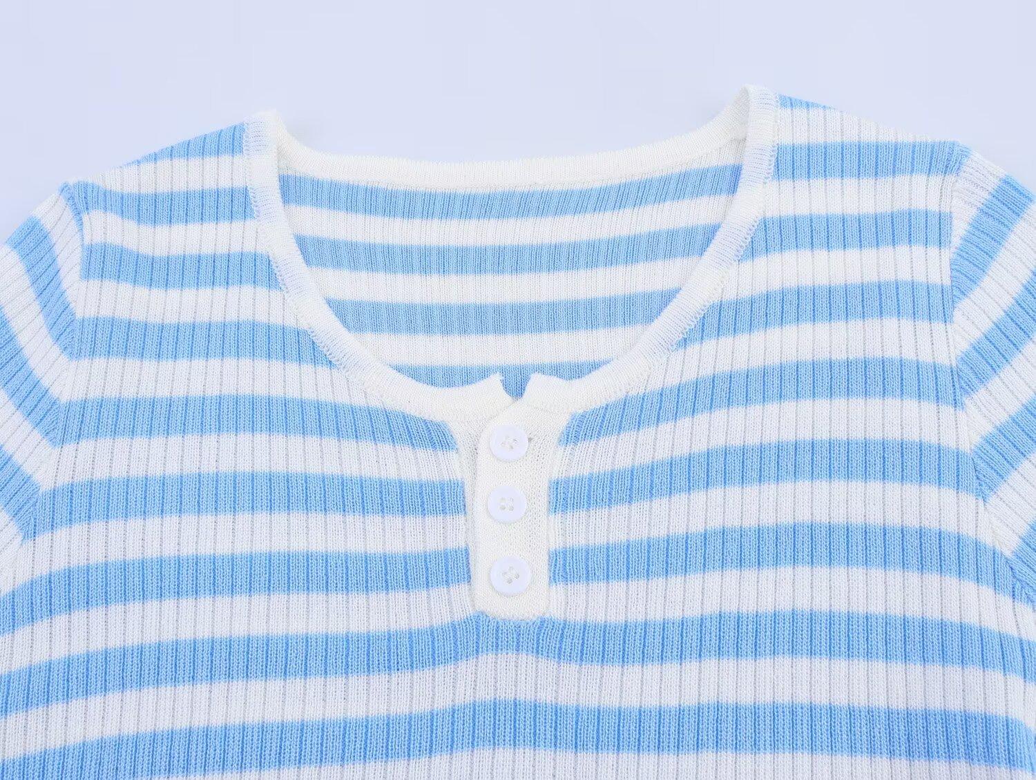 2025 Verano Nuevo Europeo y Americano Transfronterizo Moda Callejera para Mujer Suéter Tejido de Rayas de Tres Botones W07 4886