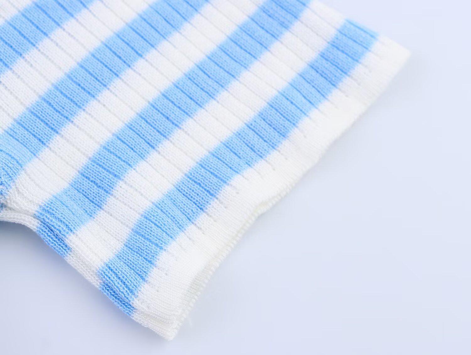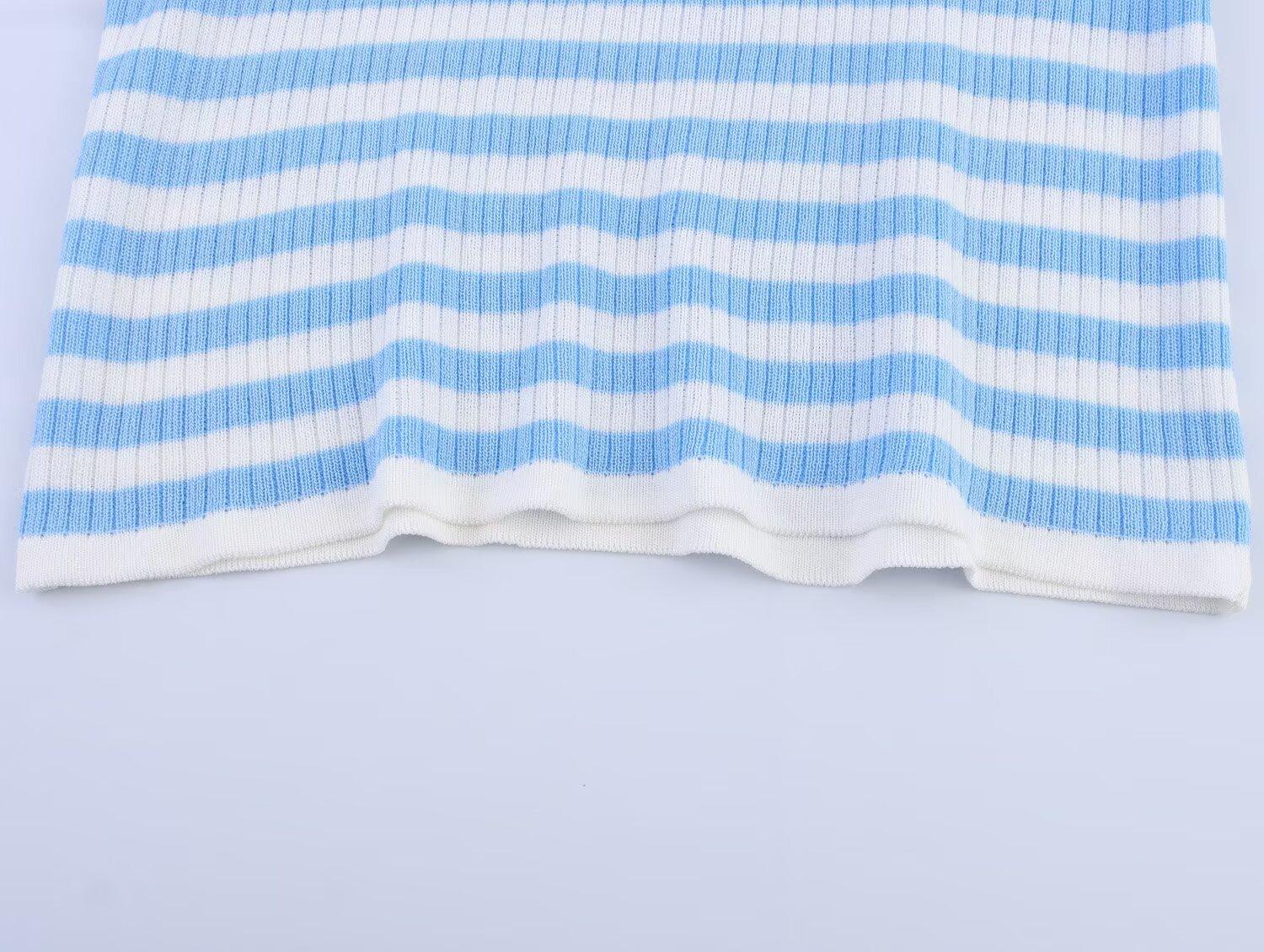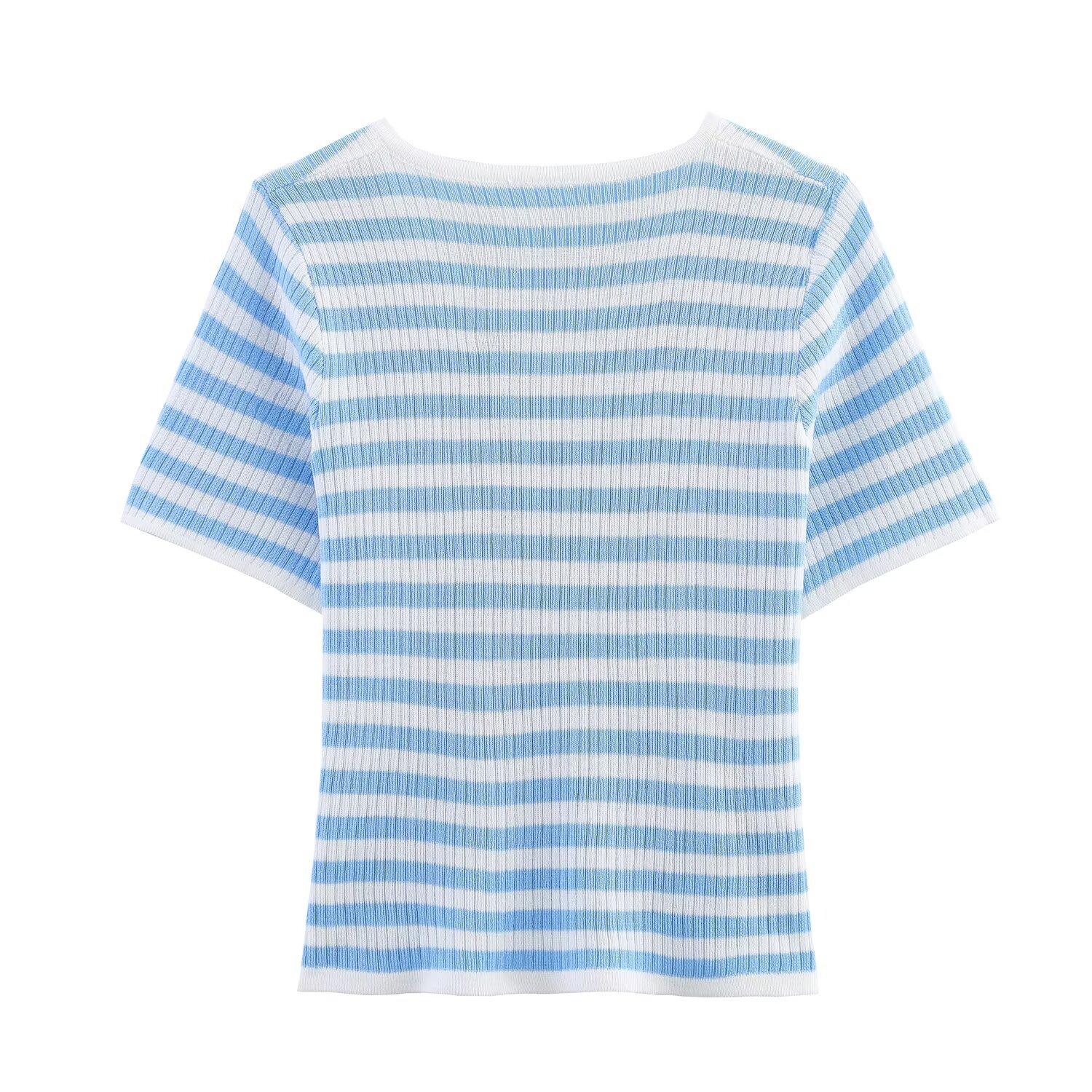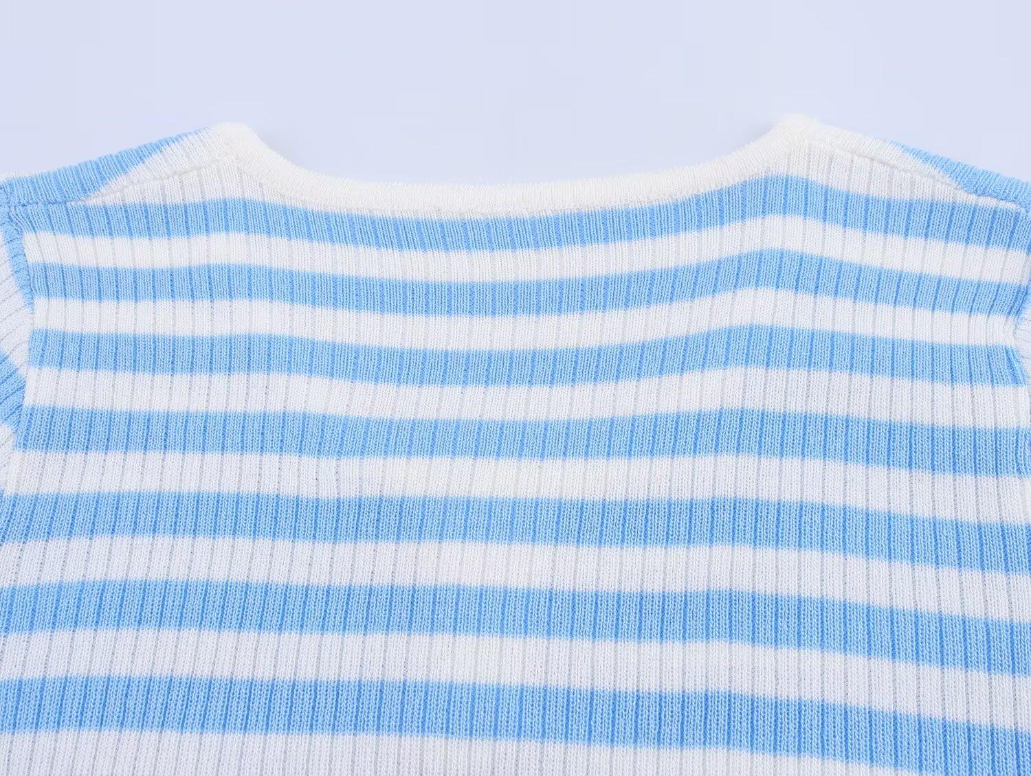 2025 Verano Nuevo Europeo y Americano Transfronterizo Moda Callejera para Mujer Suéter Tejido de Rayas de Tres Botones W07 4886
