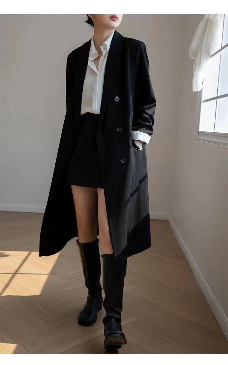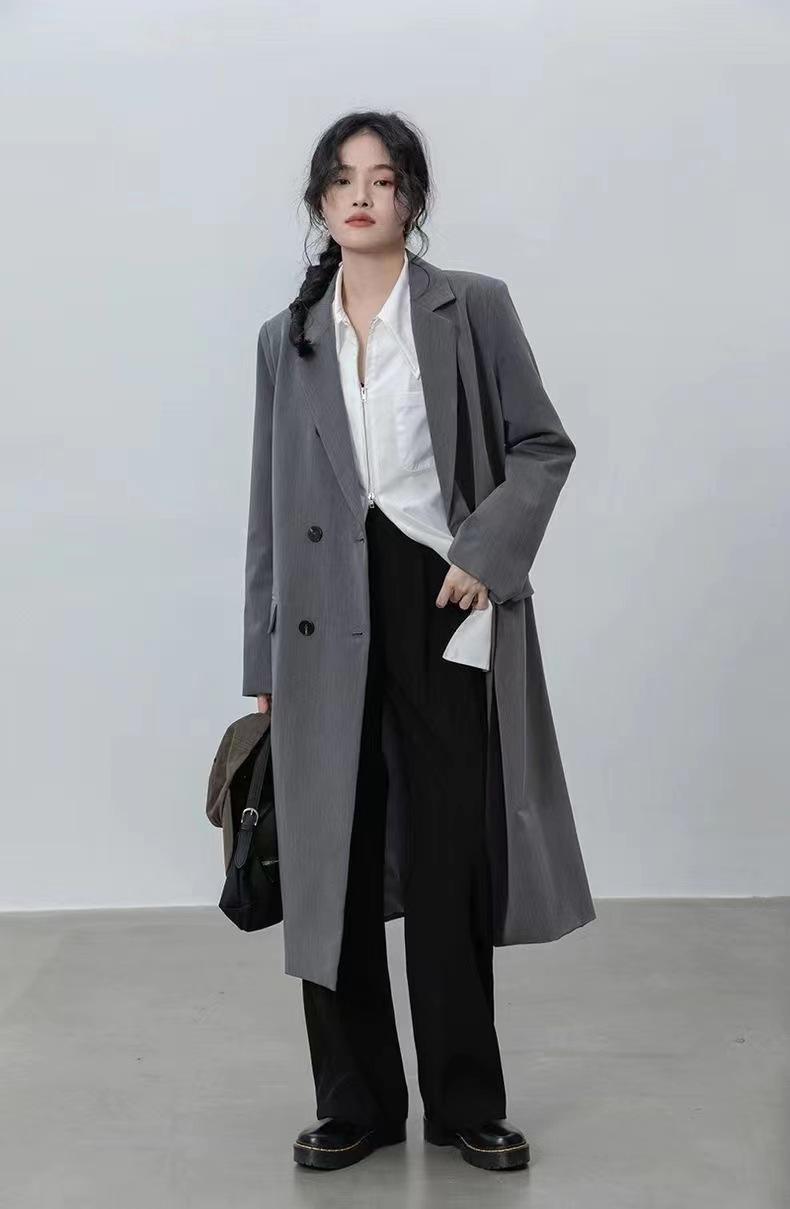 Abrigo Largo Tipo Gabardina para Mujer Súper Largo Chaqueta de Traje Abrigo Nuevo Primavera y Otoño Conjunto Ropa Exterior Top Cárdigan Ropa de Otoño Traje Mujer