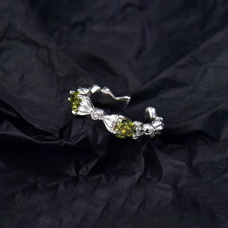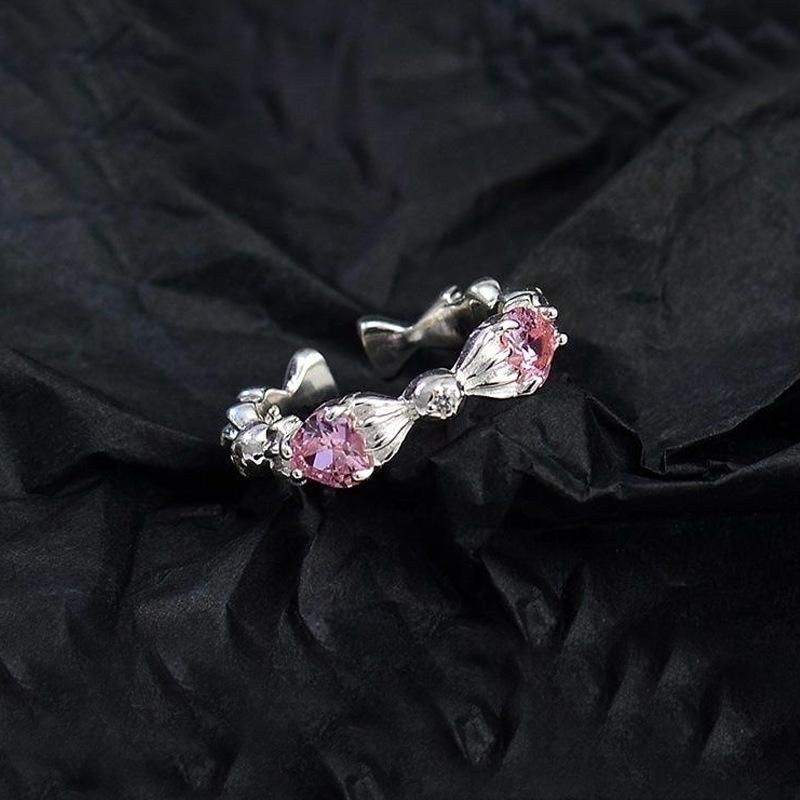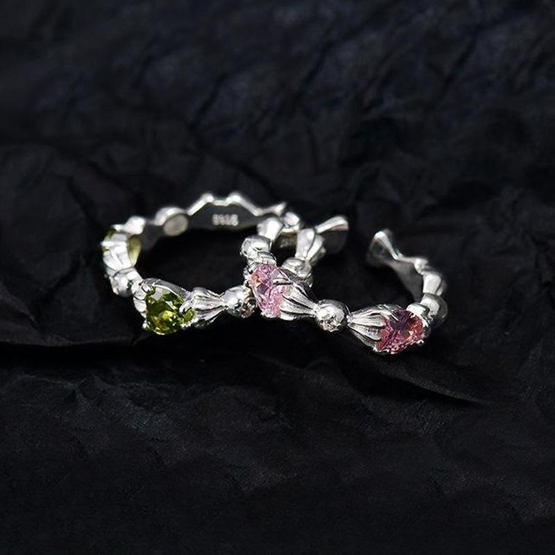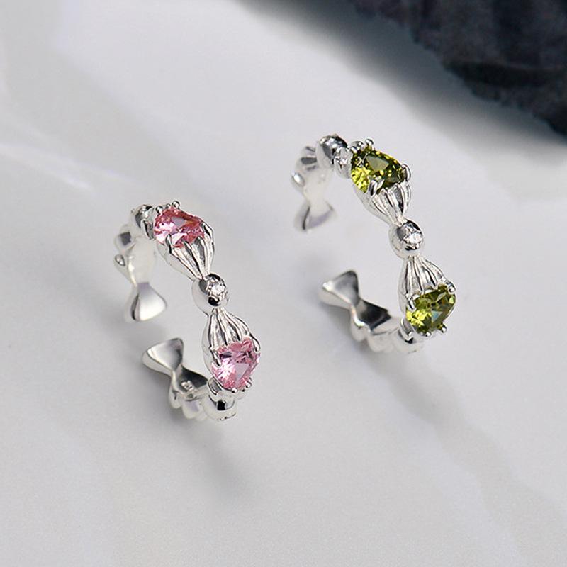 Anillo de lazo de estilo dulce y fresco, diseño de nicho, temperamento creativo, micro incrustado, circón de color, anillo abierto al por mayor