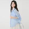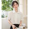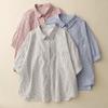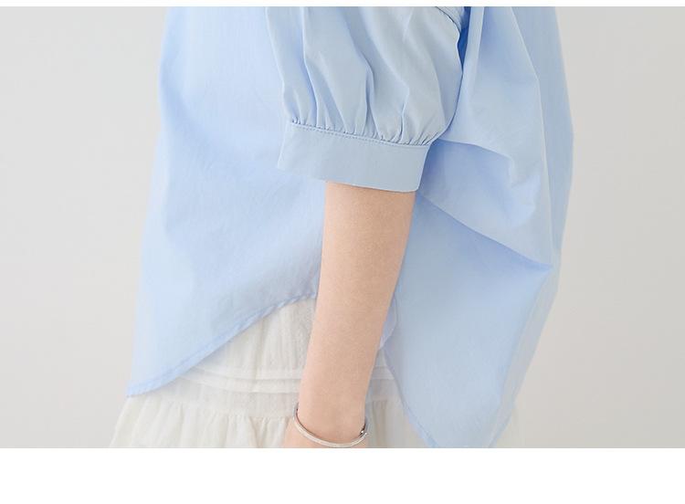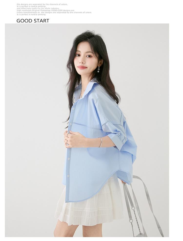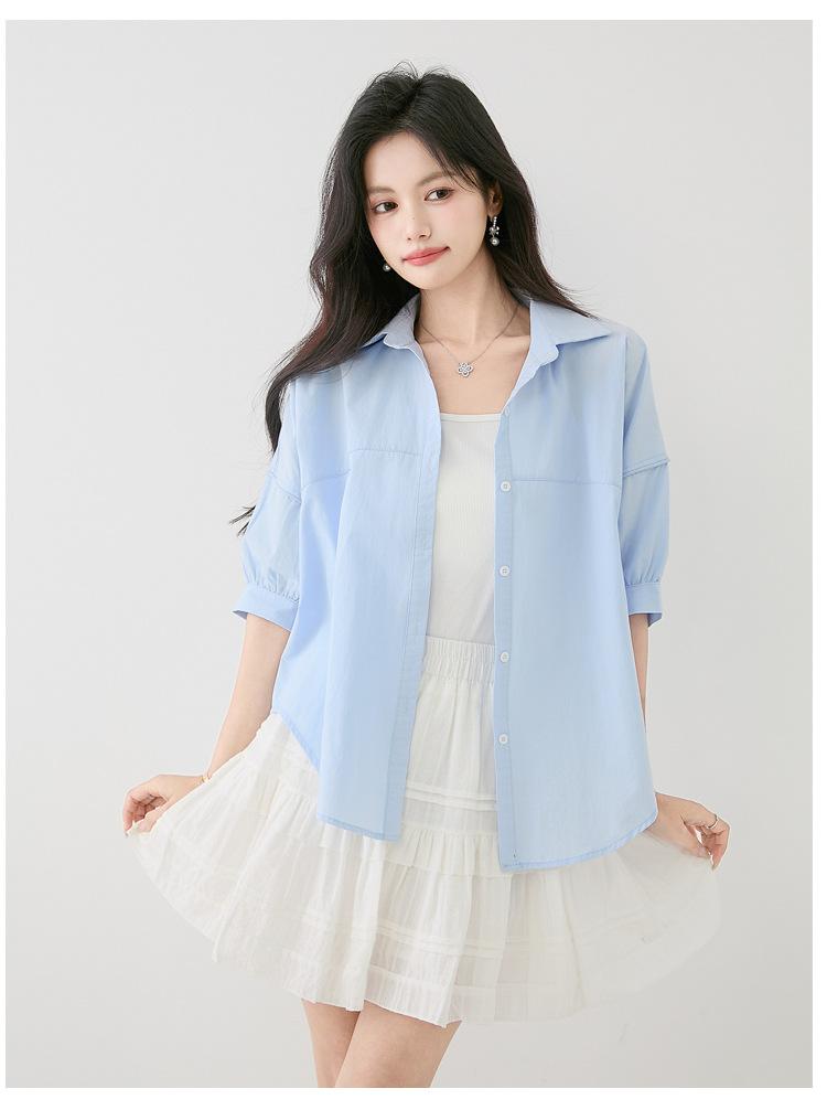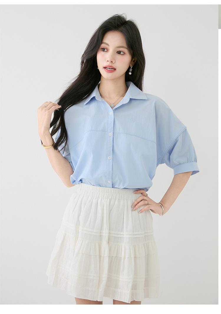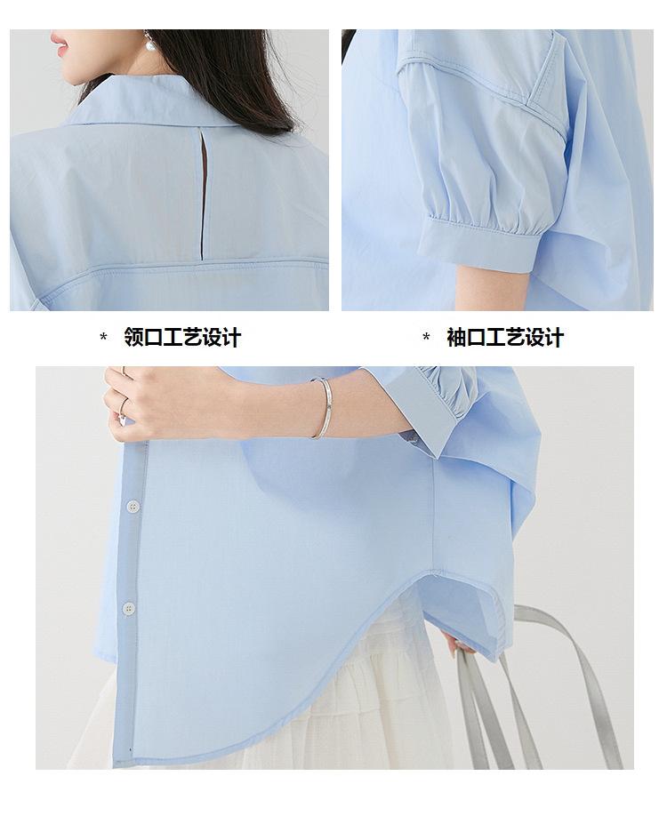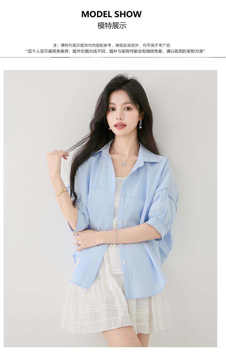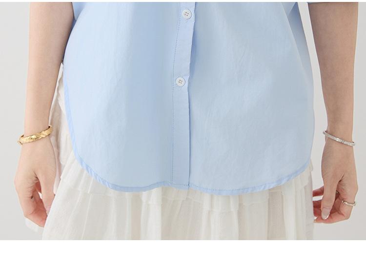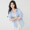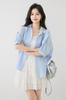 2025 Nuevo Verano Estilo Coreano Casual Versátil Holgado Diseño Azul de Manga Corta Camisa de Algodón Puro para Mujer