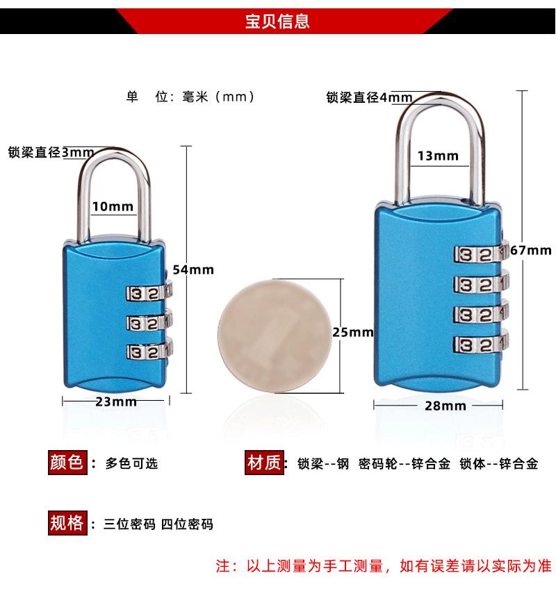 Cerradura de Combinación Metálica de 4 Dígitos para Maleta Mochila Casillero Casillero Multicolor Procesamiento Personalización OEM