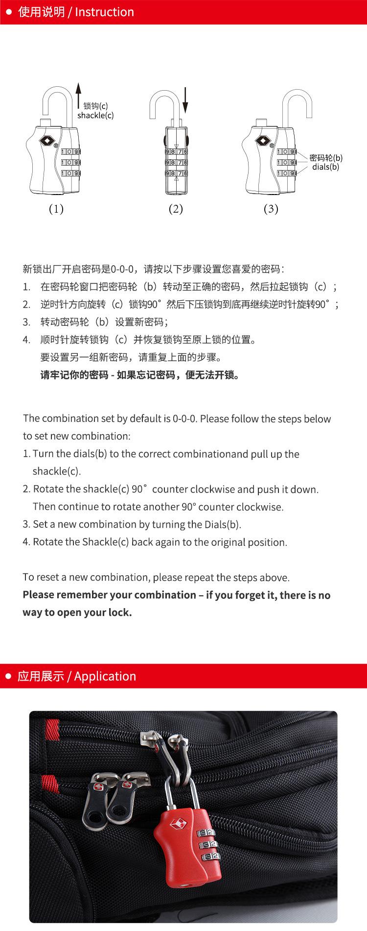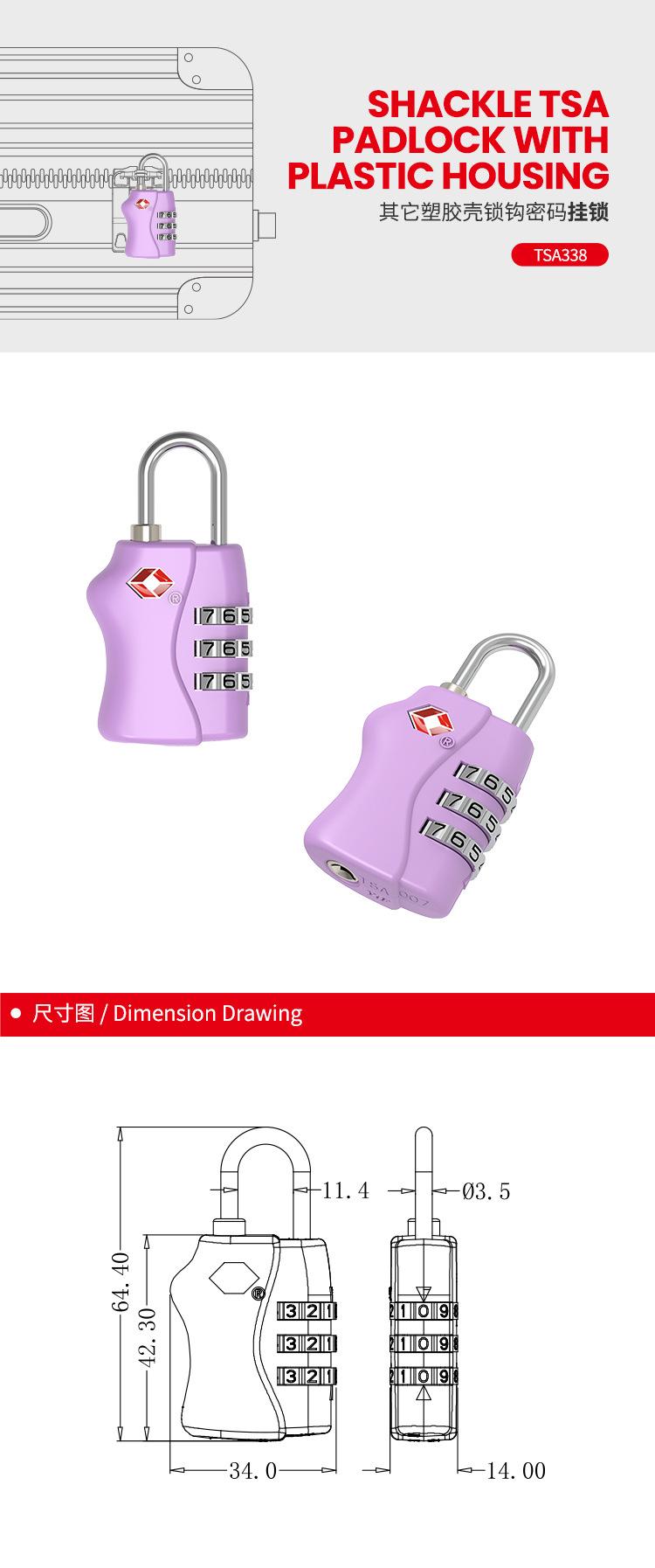 Suministro transfronterizo de gran venta de candados de aduana TSA para viajes al extranjero, viajes de negocios, equipaje, candado de combinación de tres dígitos para PC