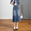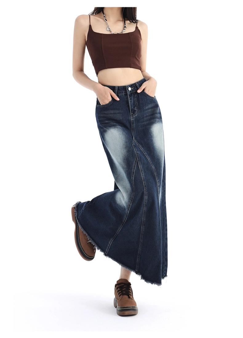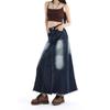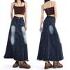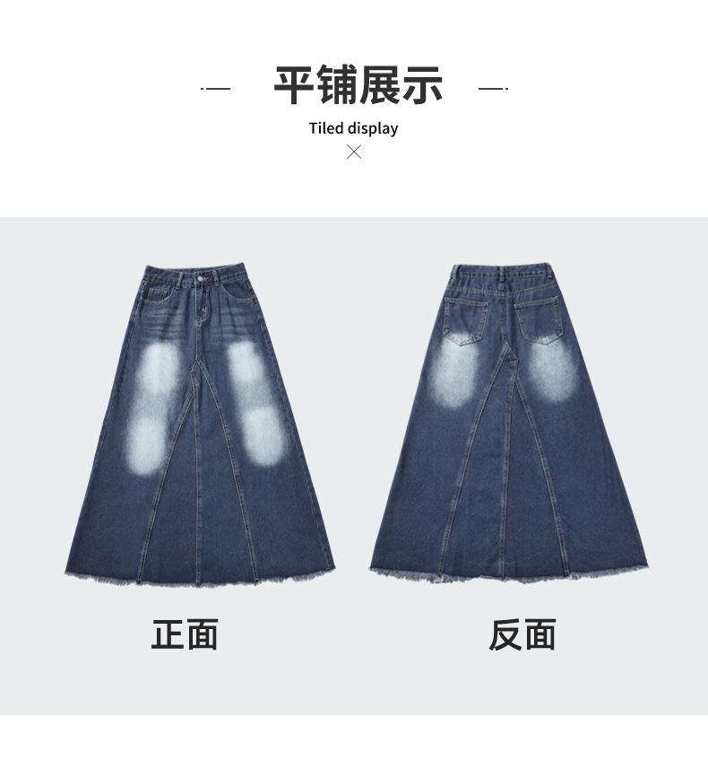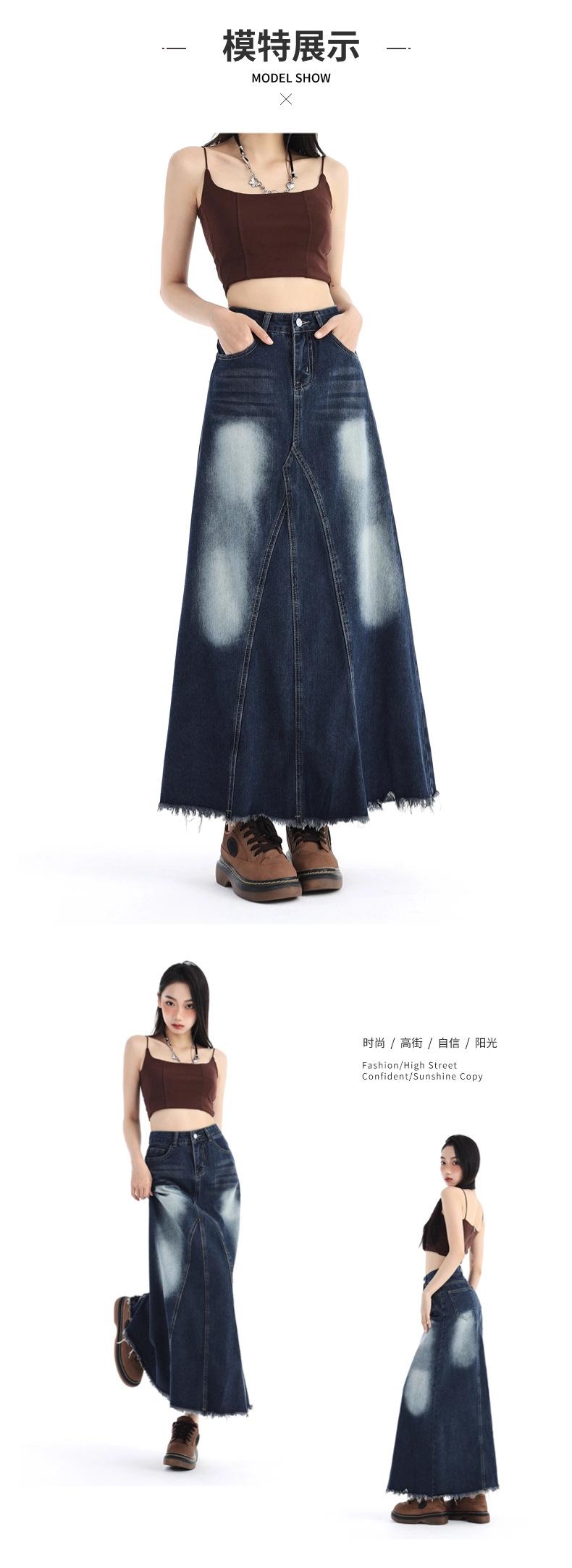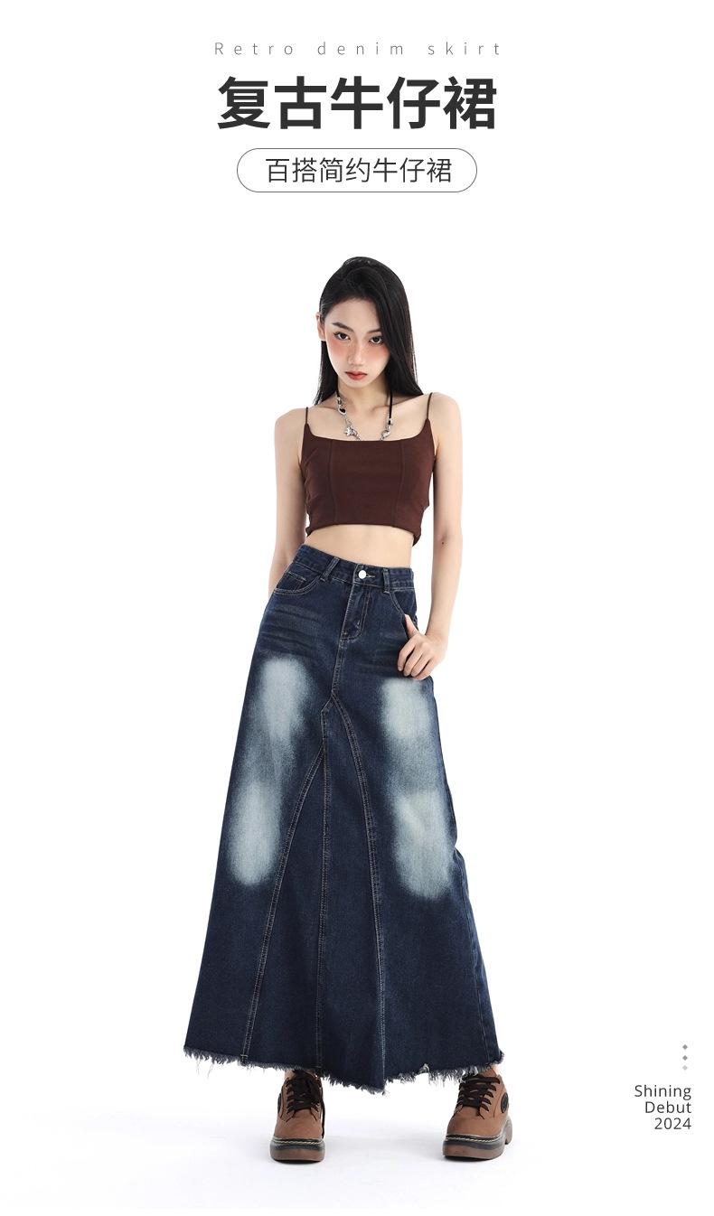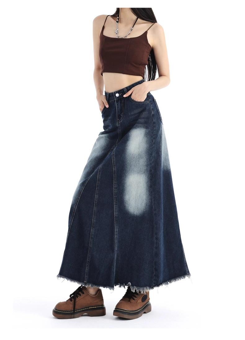 Falda de Mezclilla Blanca Lavada Vintage para Mujer Primavera y Verano 2024 Nuevo Estilo Relajado Irregular Largo Medio Falda Línea A