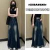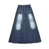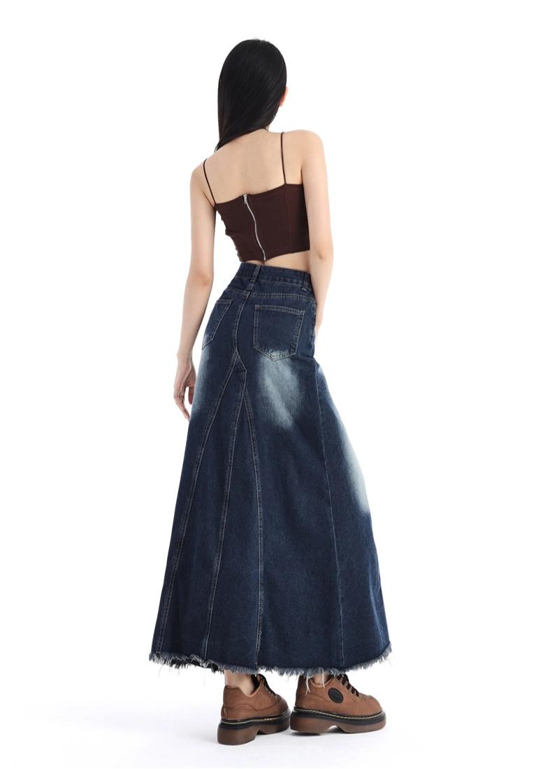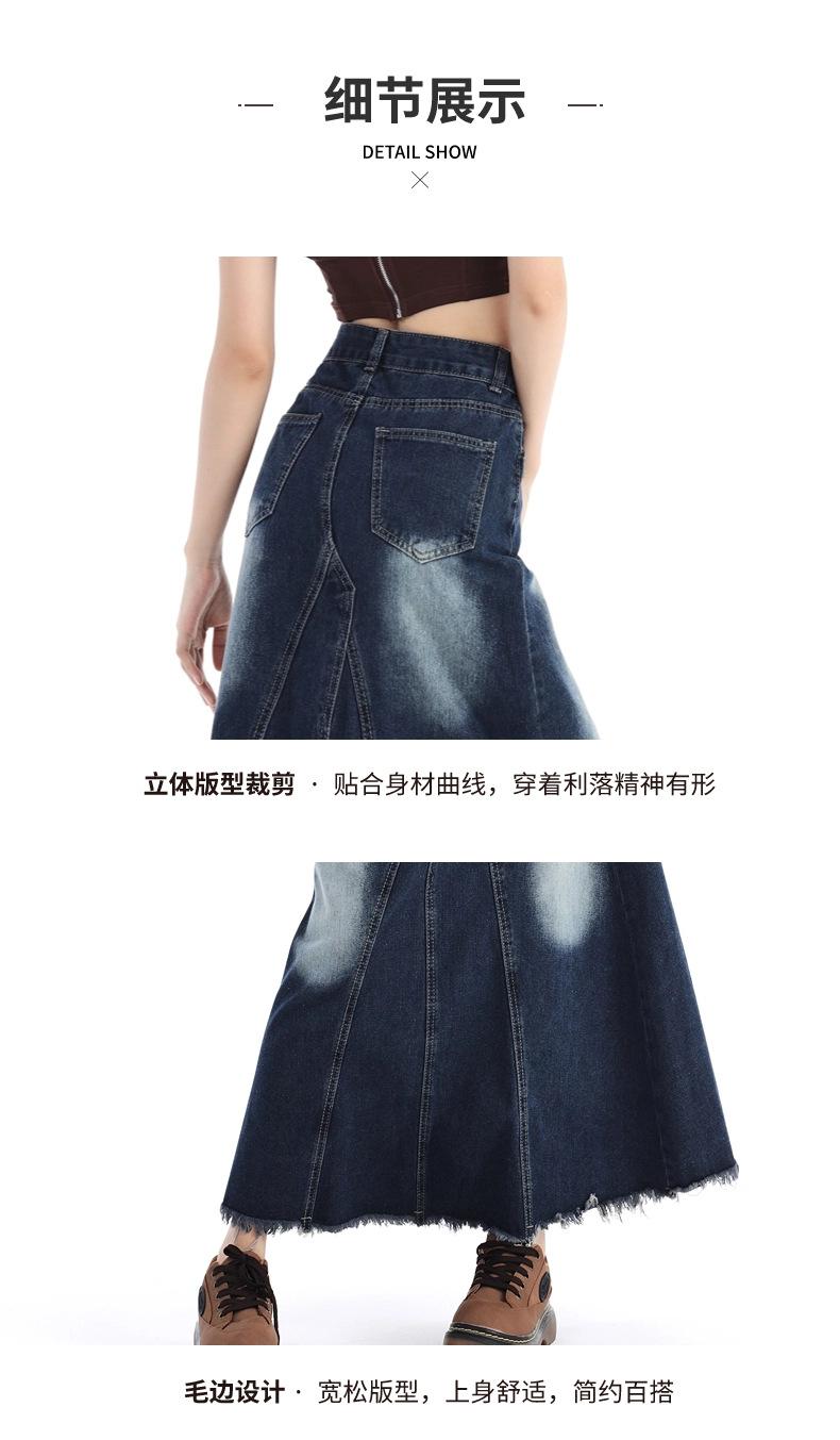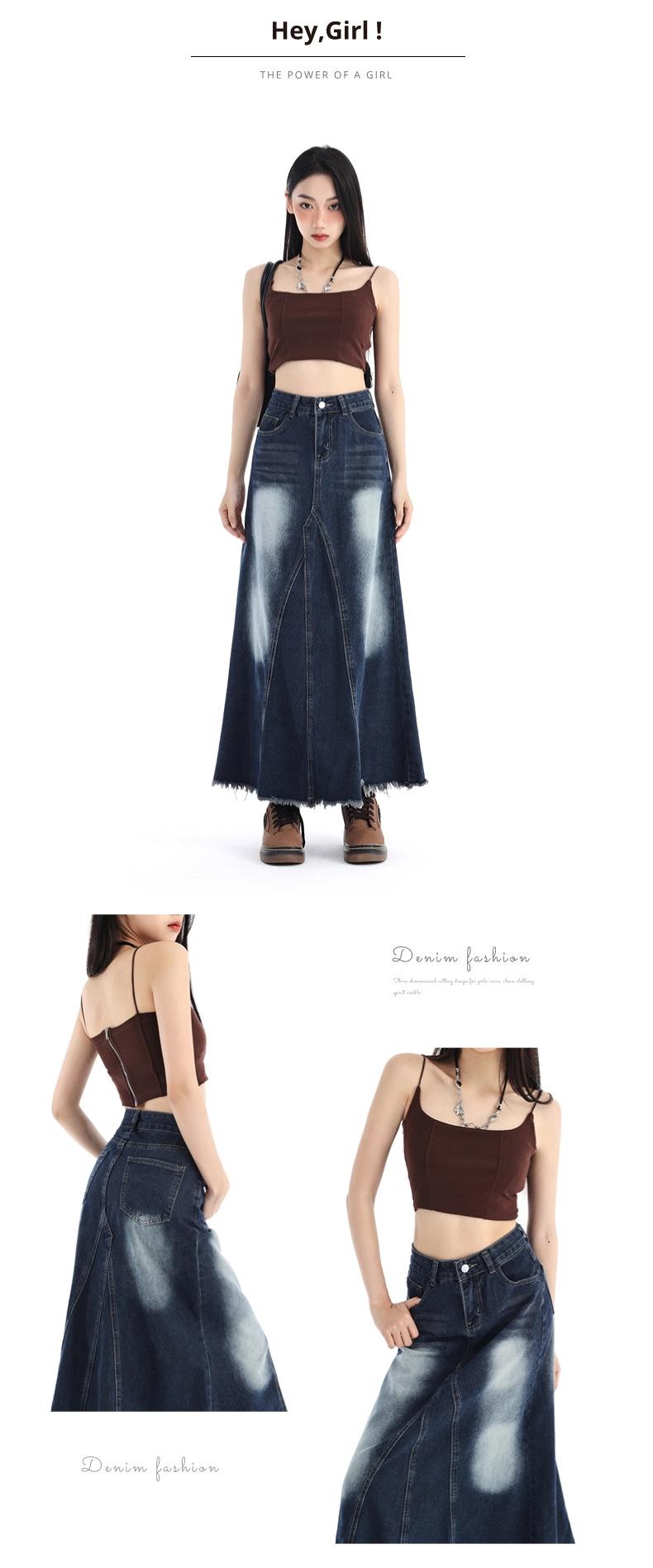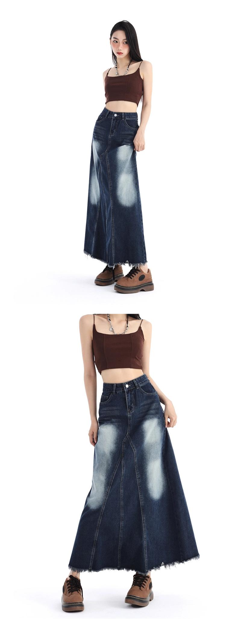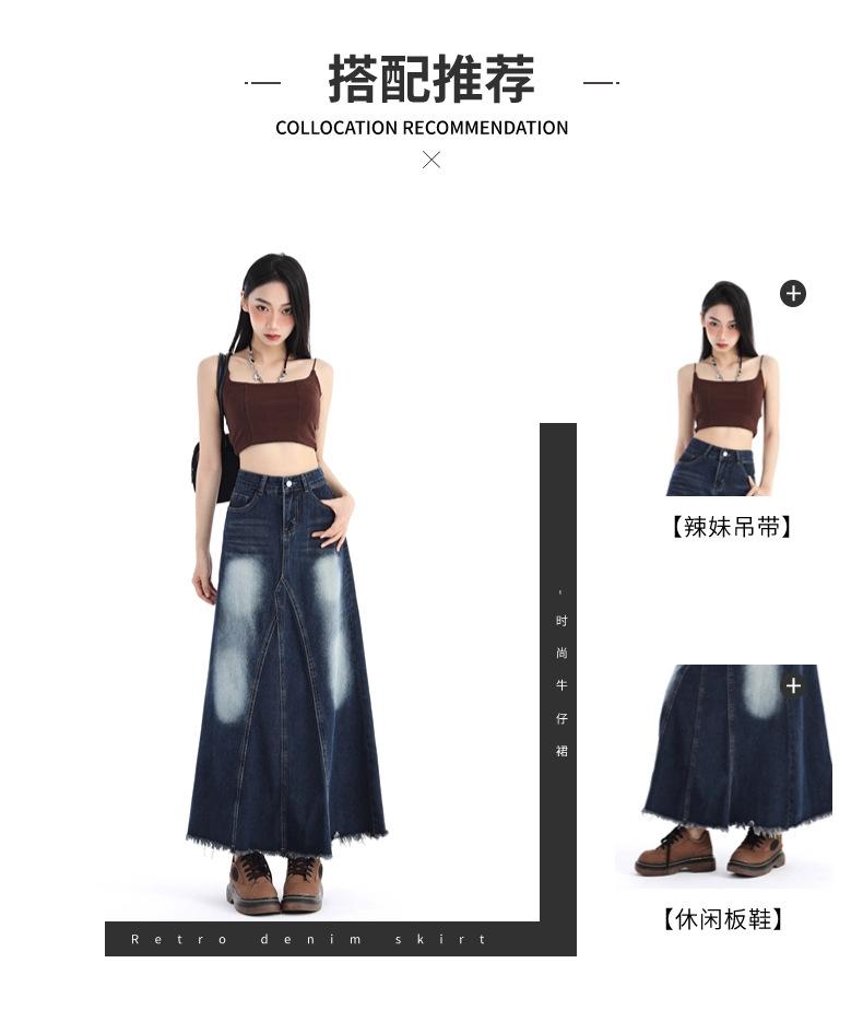 Falda de Mezclilla Blanca Lavada Vintage para Mujer Primavera y Verano 2024 Nuevo Estilo Relajado Irregular Largo Medio Falda Línea A